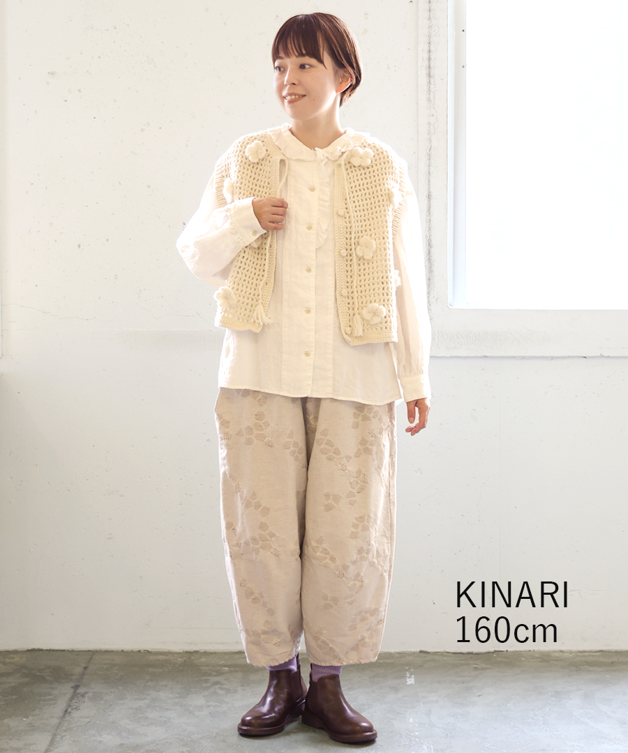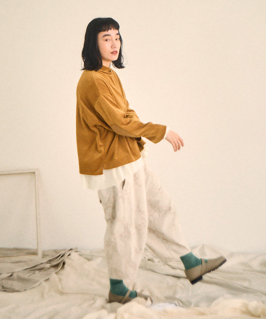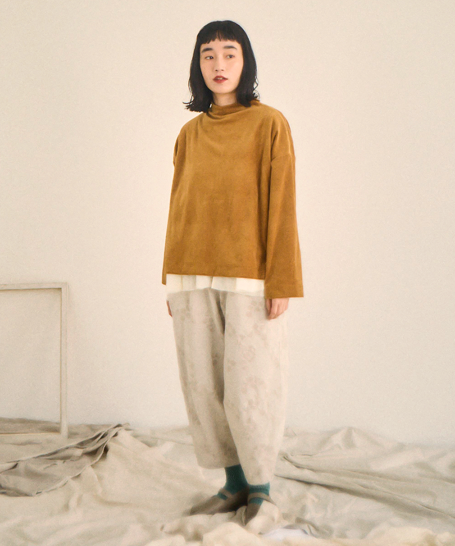 ゆったりとしたシルエットながらも、裾にかけてややテーパードしたラインがきれいなバランスですっきりと見せてくれます。