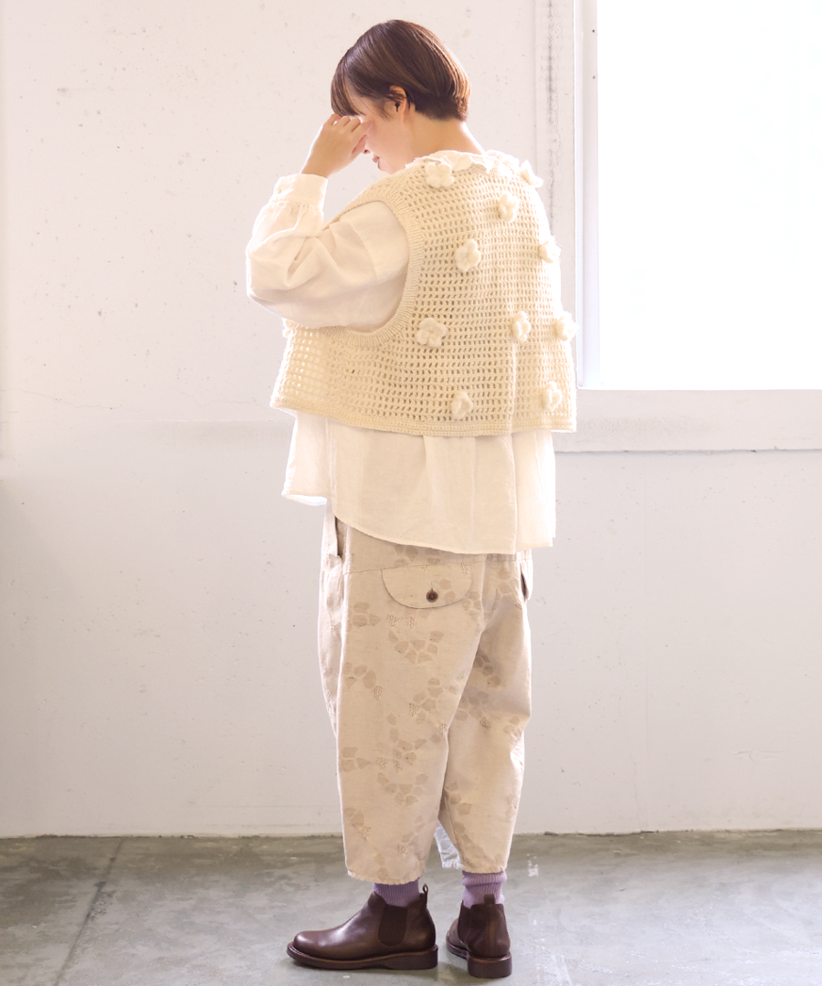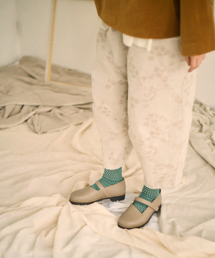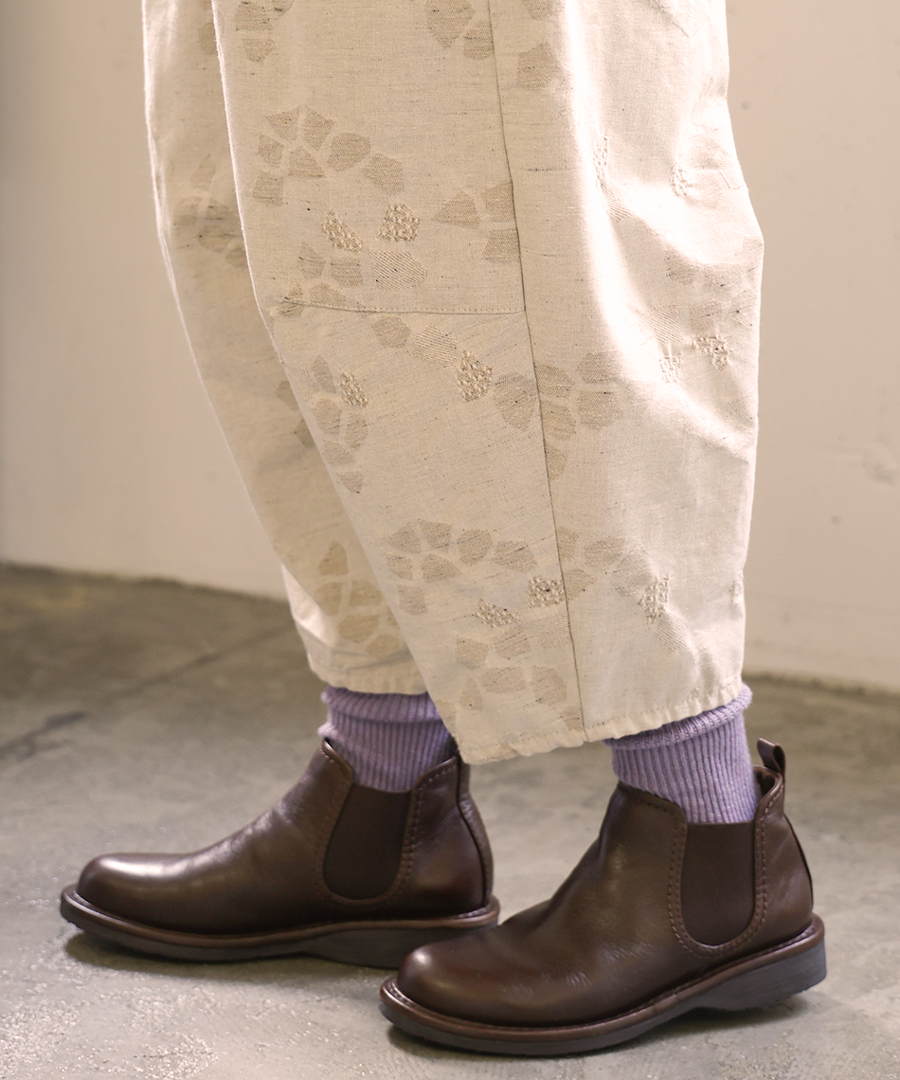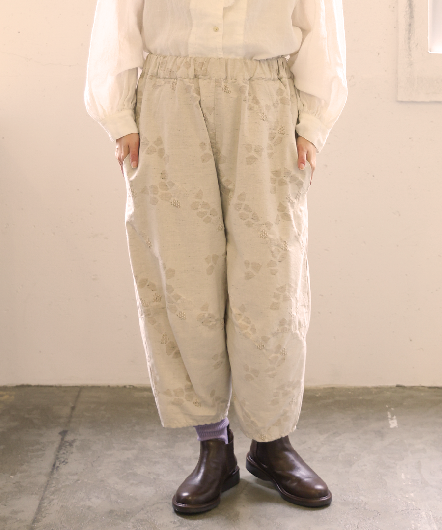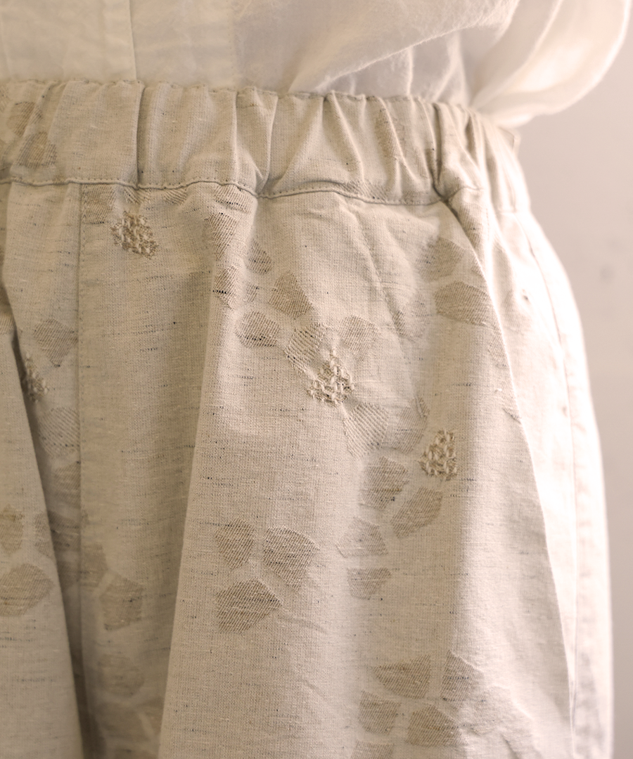 3種の織り柄を組み合わせ、ジャガード織りで幾何学柄を表現したティンカーパンツ。