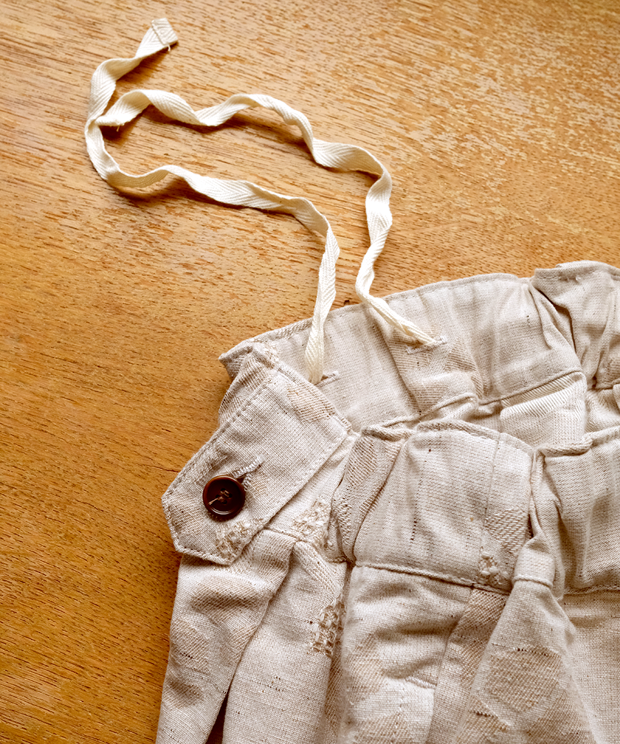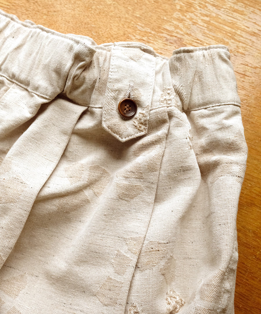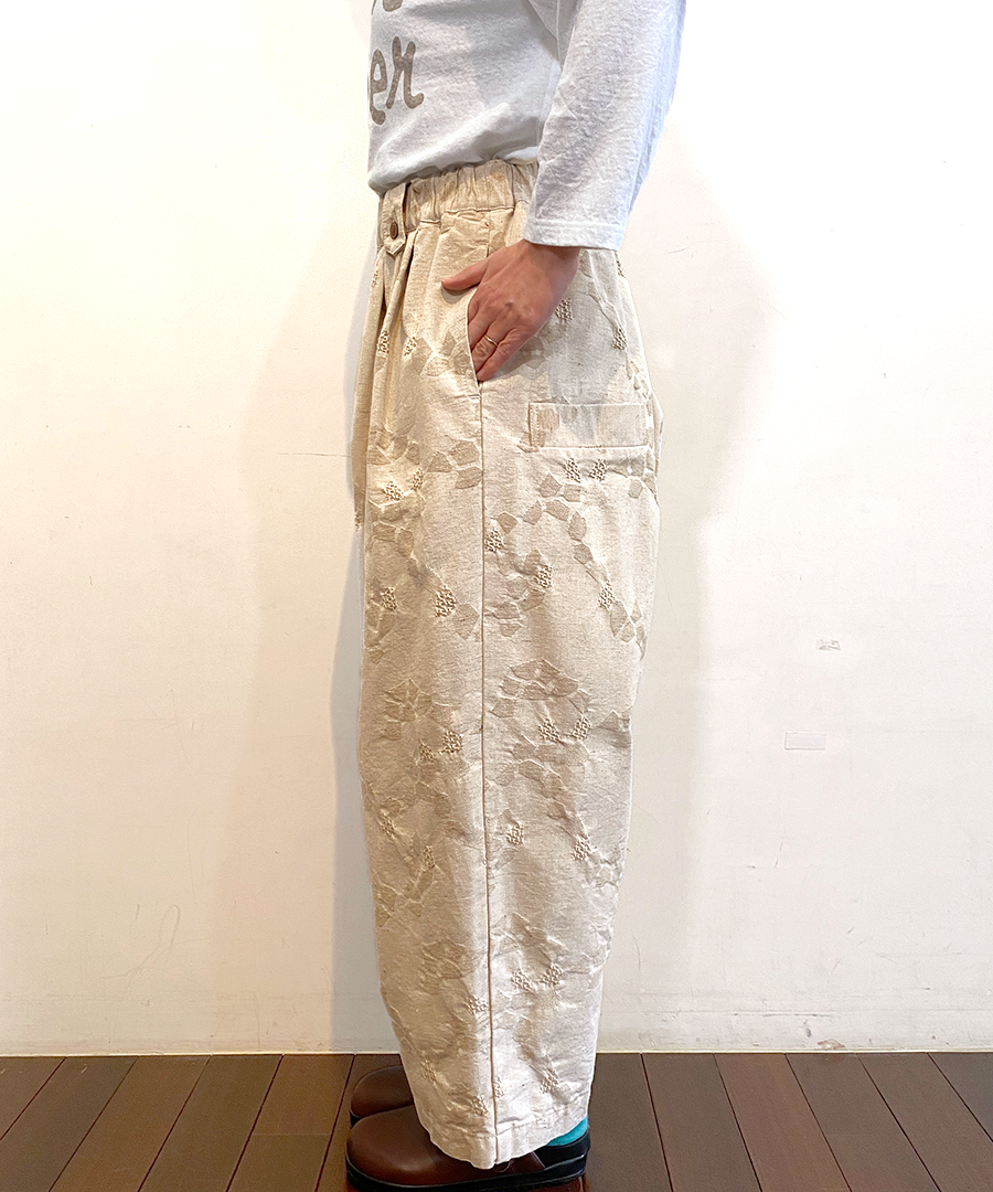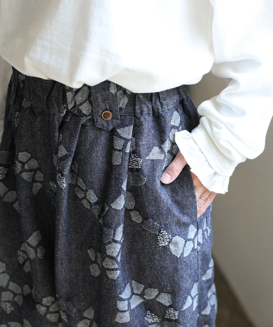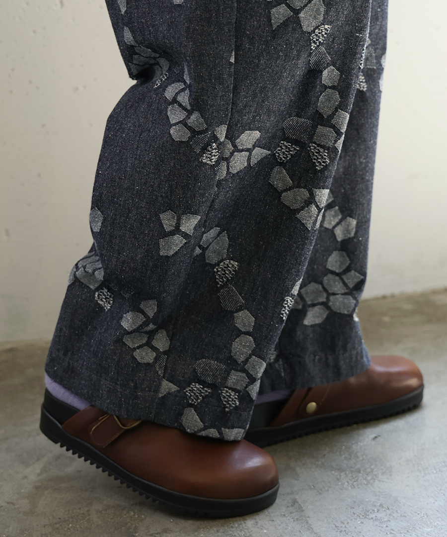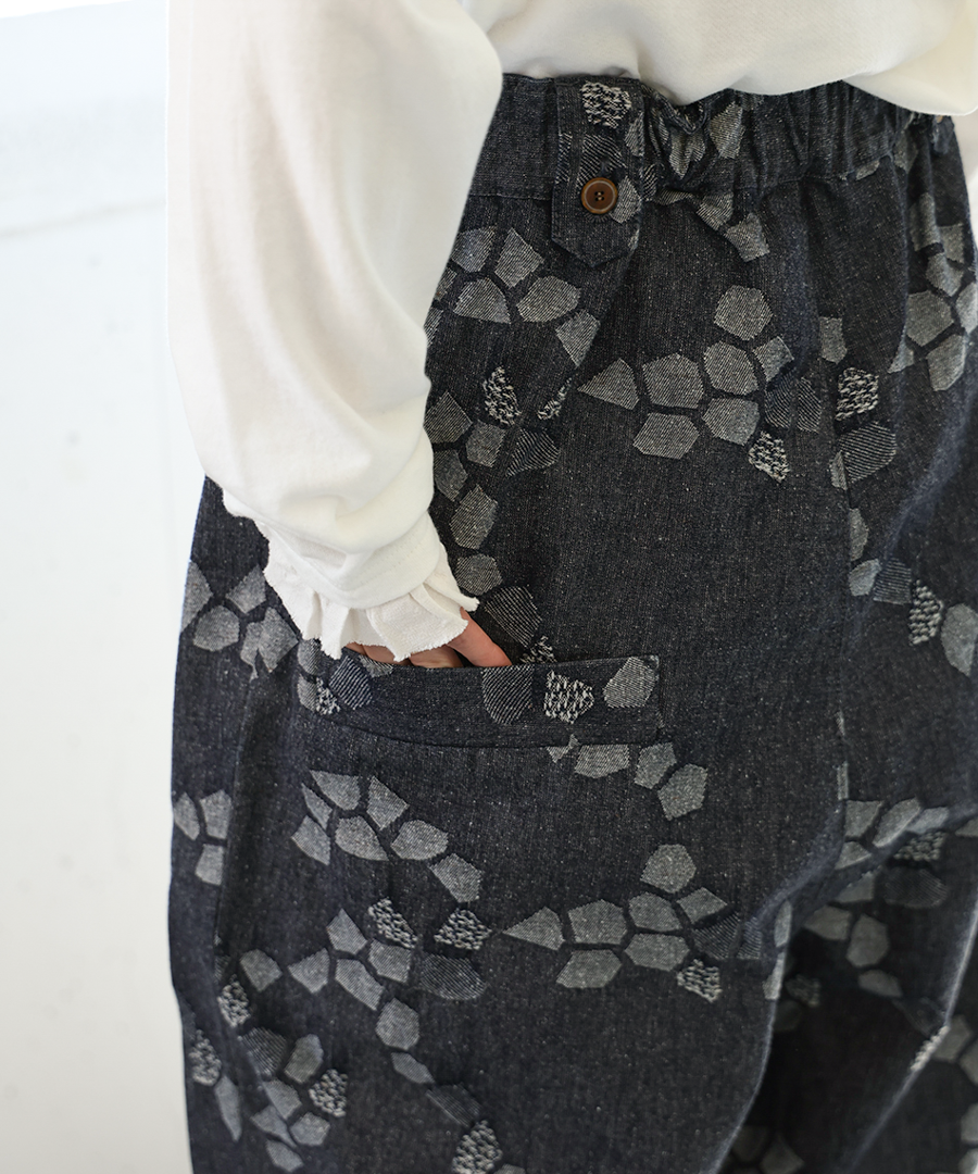 3種の織り柄を組み合わせ、ジャガード織りで幾何学柄を表現したデザインパンツ。