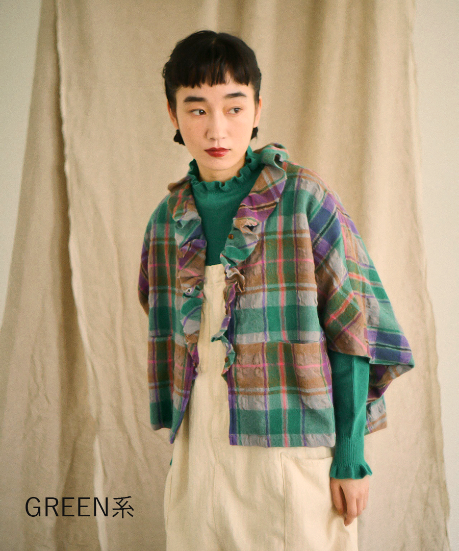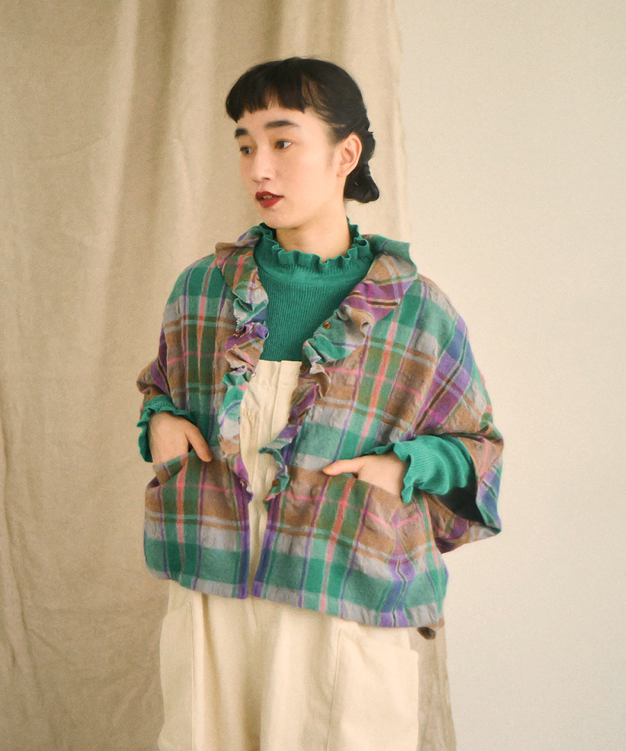 ウールコットンチェック ボレロ