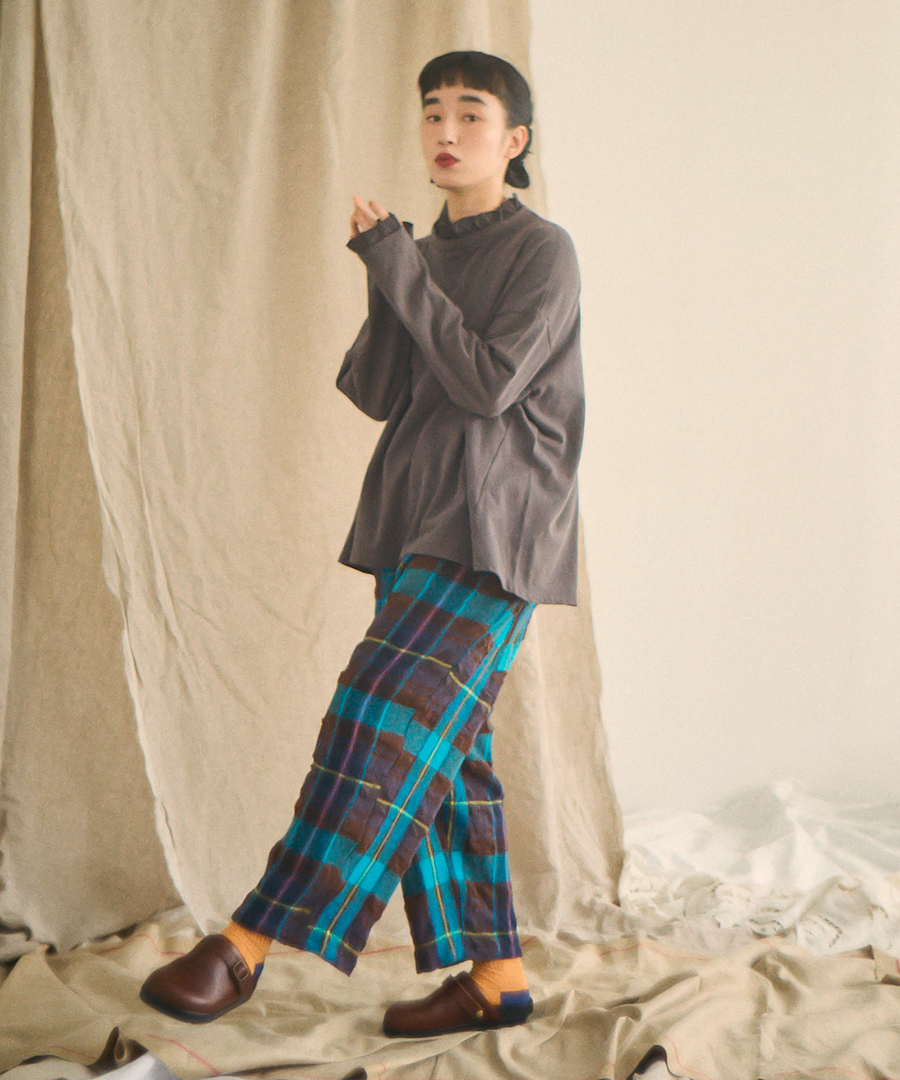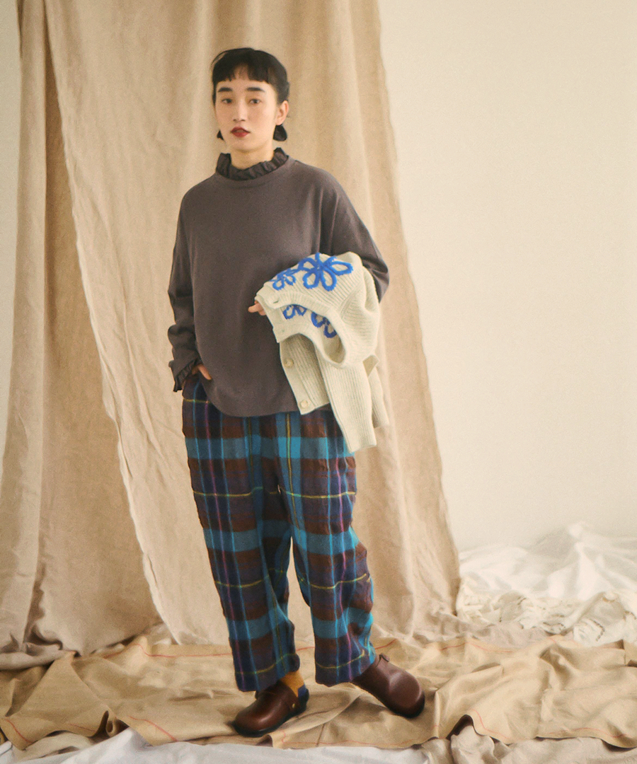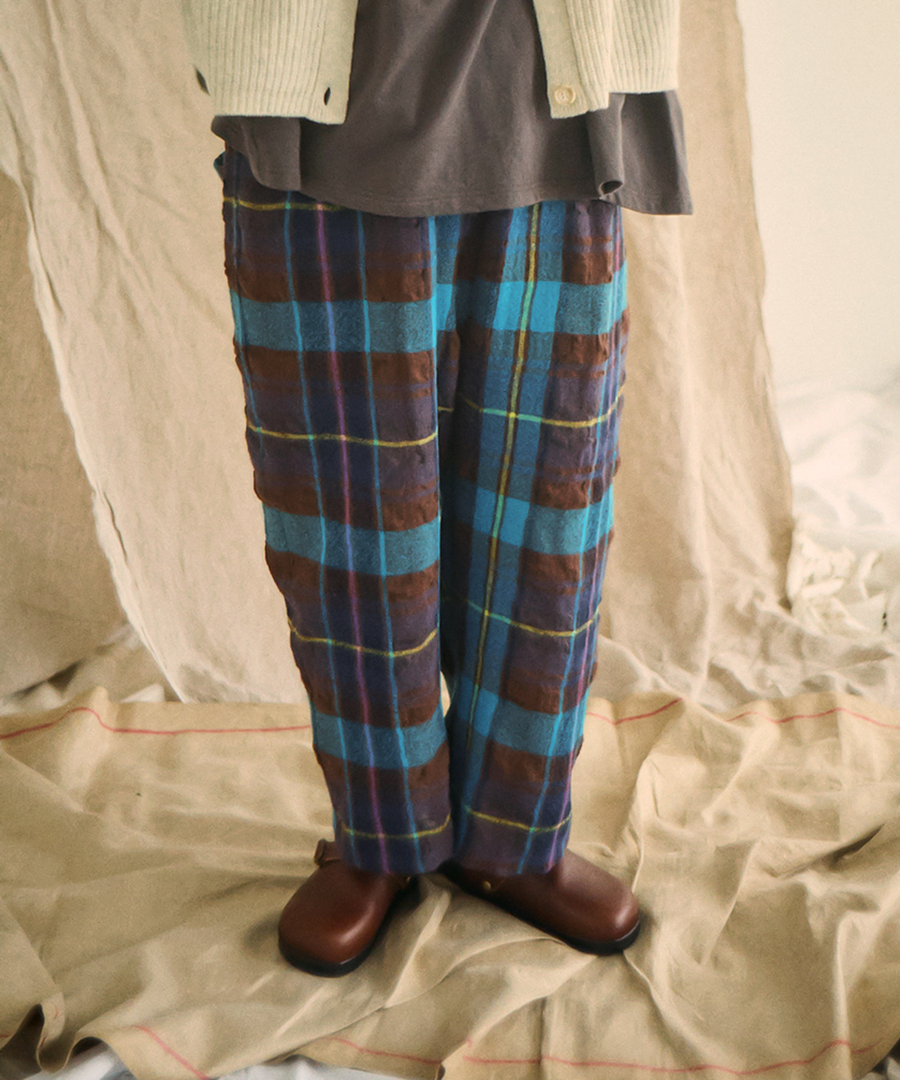 優しく包み込む、冬の彩り。 着こなしの主役になる、リラックスチェックパンツ。
