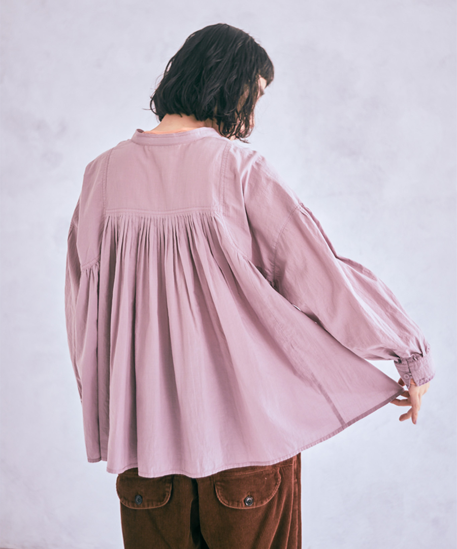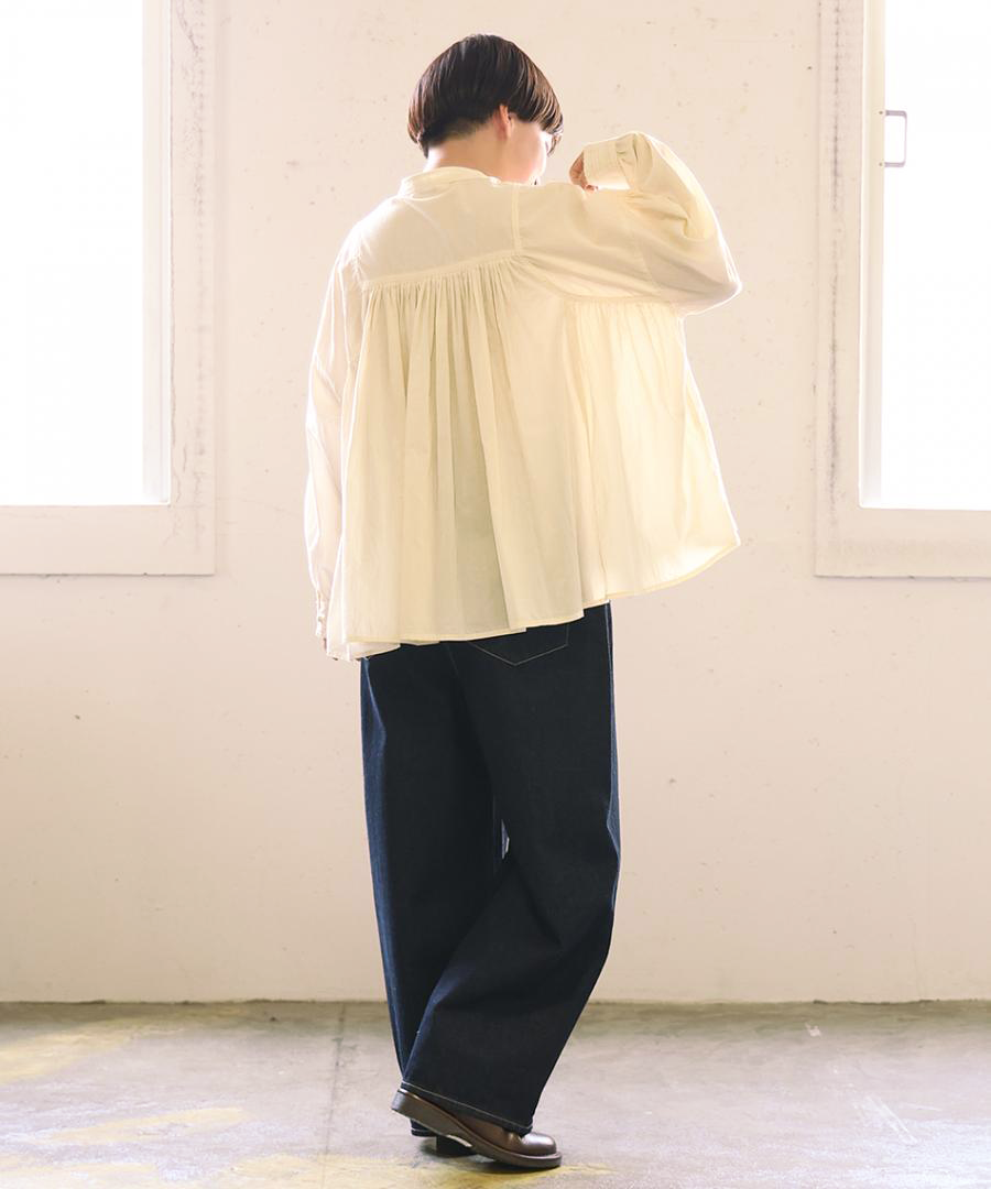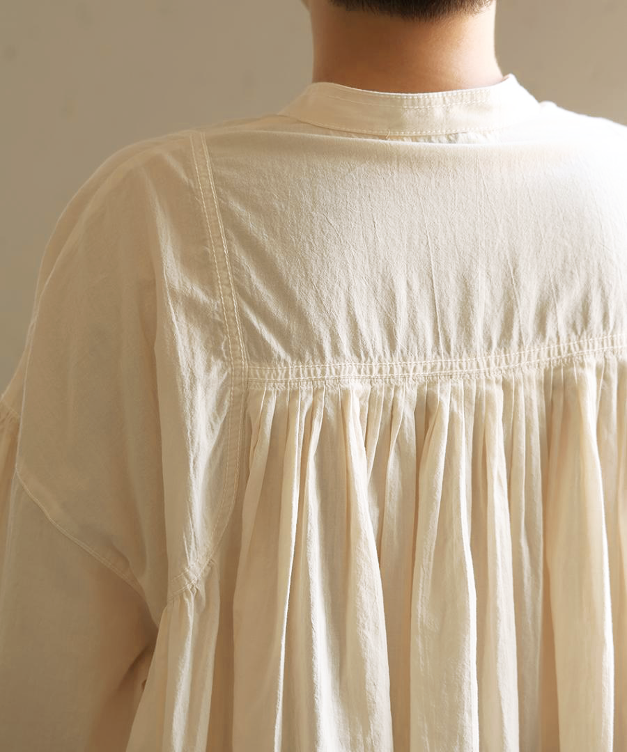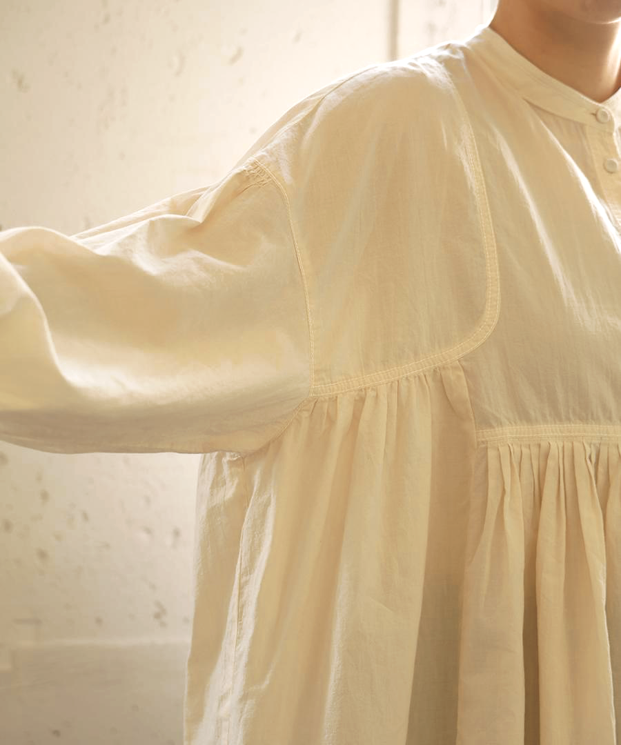前後のヨーク部分に、たっぷりと細かくギャザーを施しました。