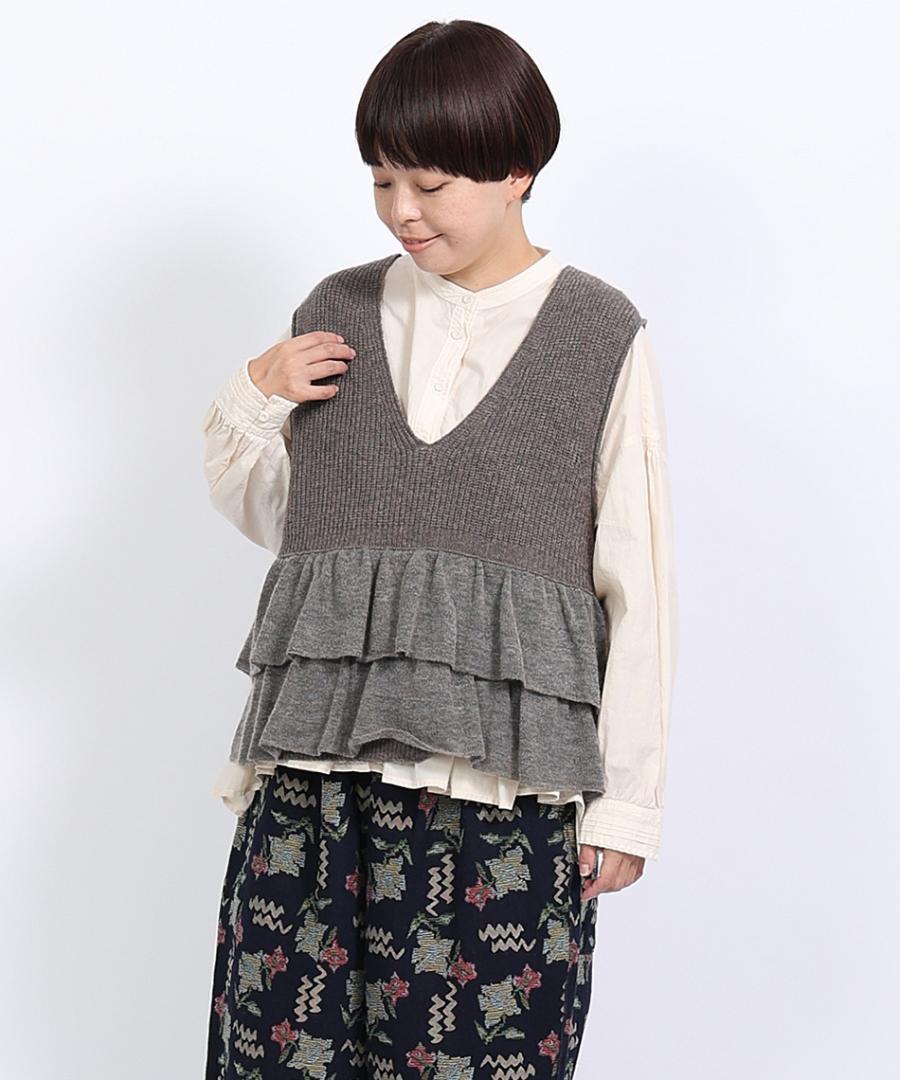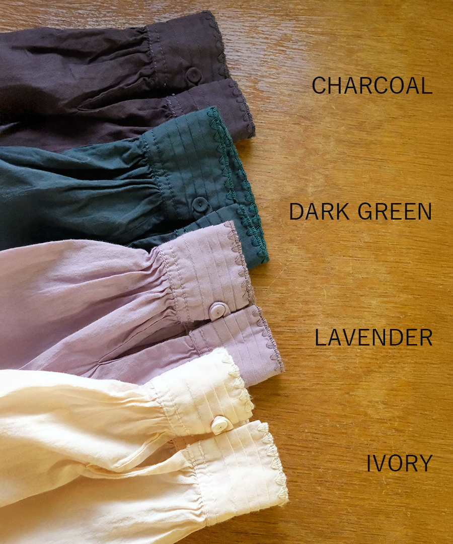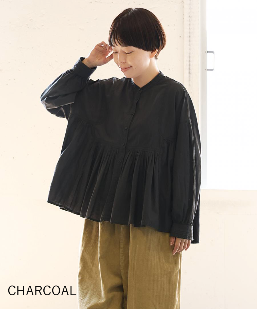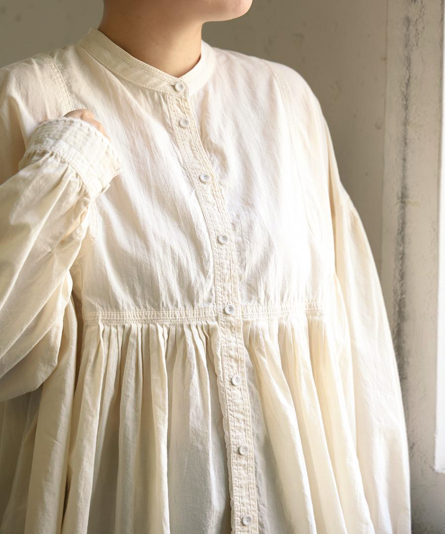 前後のヨーク部分に、たっぷりと細かくギャザーを施しました。