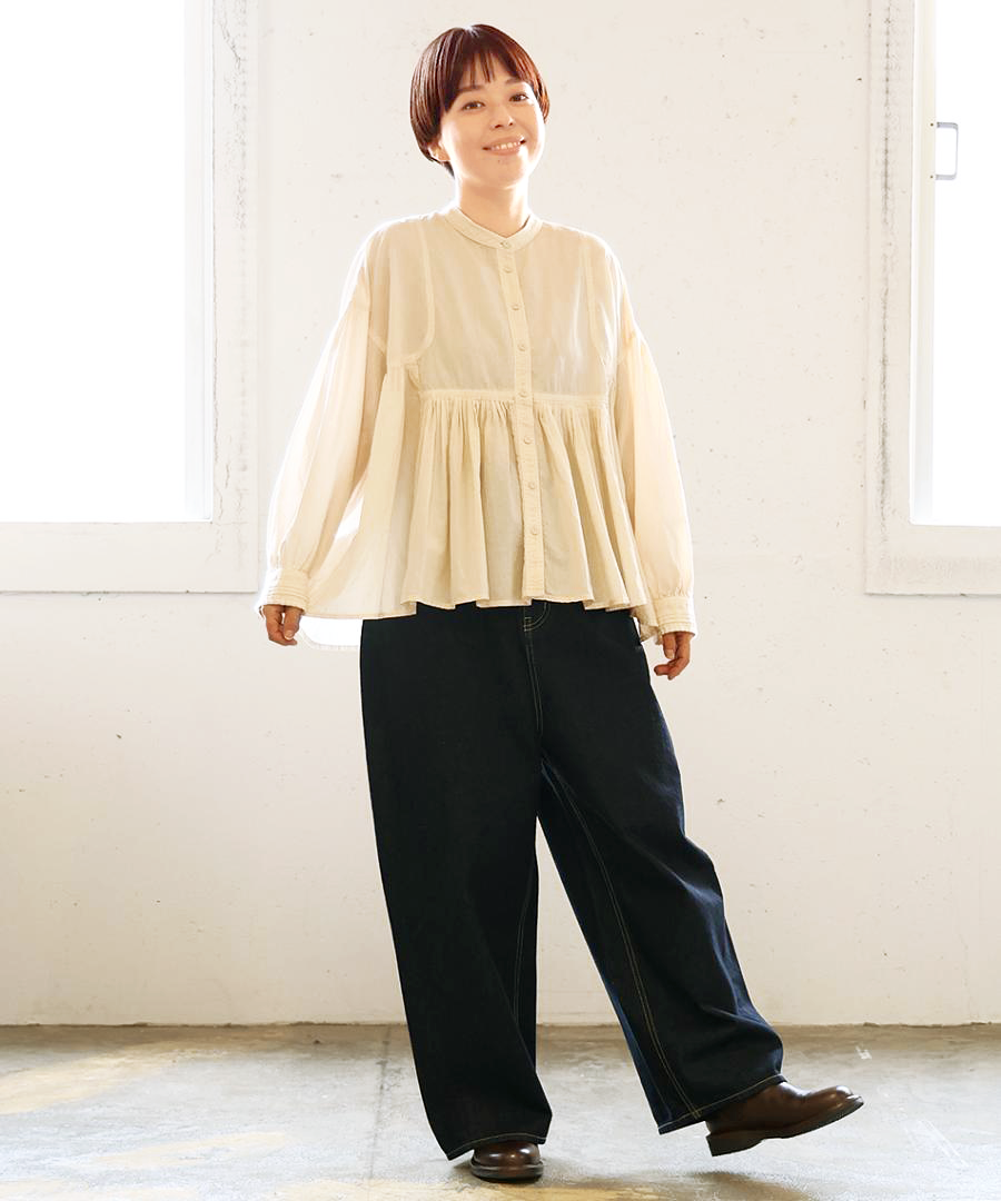 薄手ながらも空気をはらみ、ふわっと膨らみのあるシルエットが魅力。