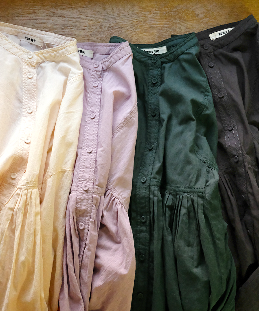 製品染めによる柔らかな風合いは、軽くて優しい着心地で、季節の変わり目に手放せなくなる一枚です。
