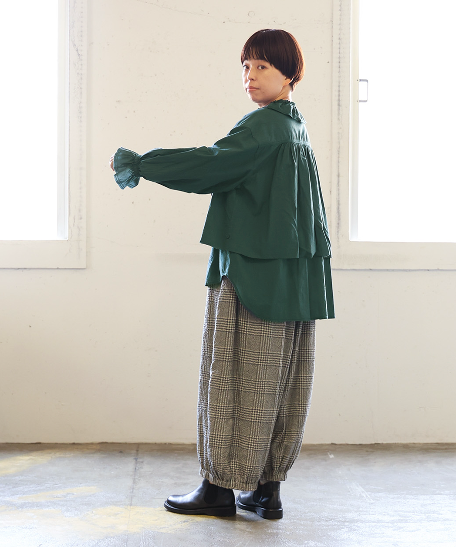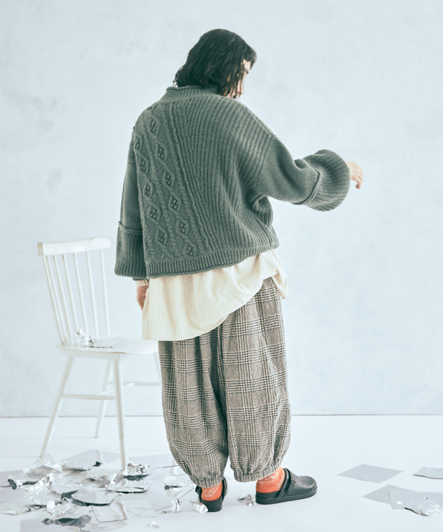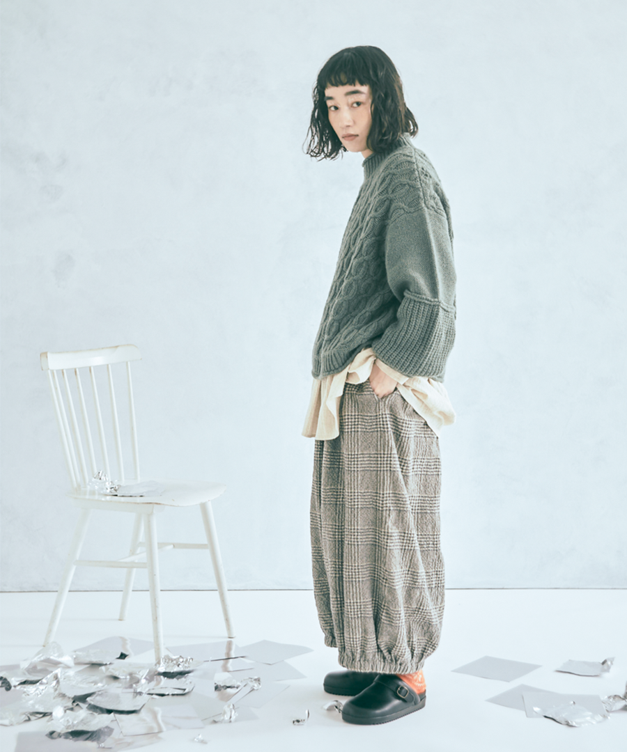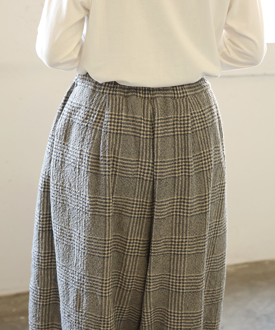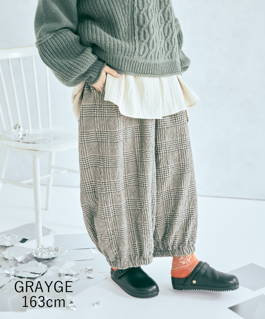 落ち着いたカラーのグレンチェック柄と立体感のある表情が魅力のバルーンパンツ。