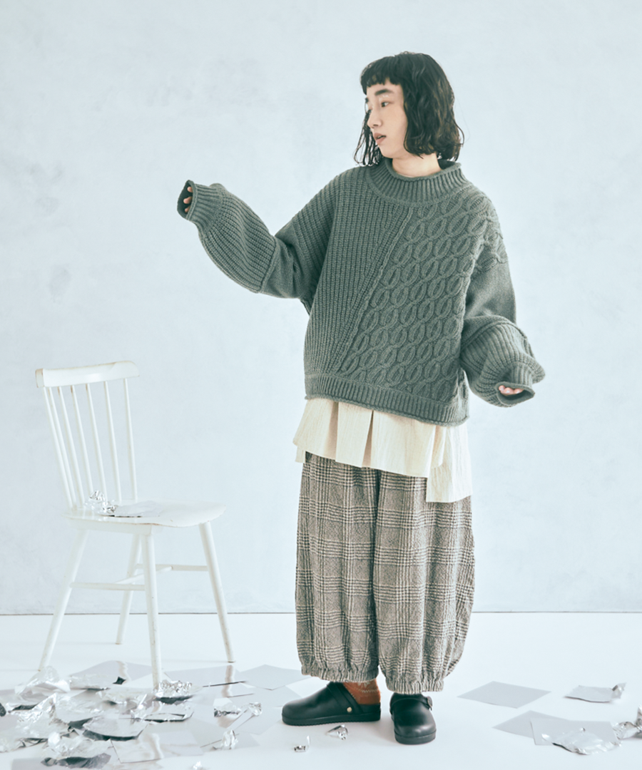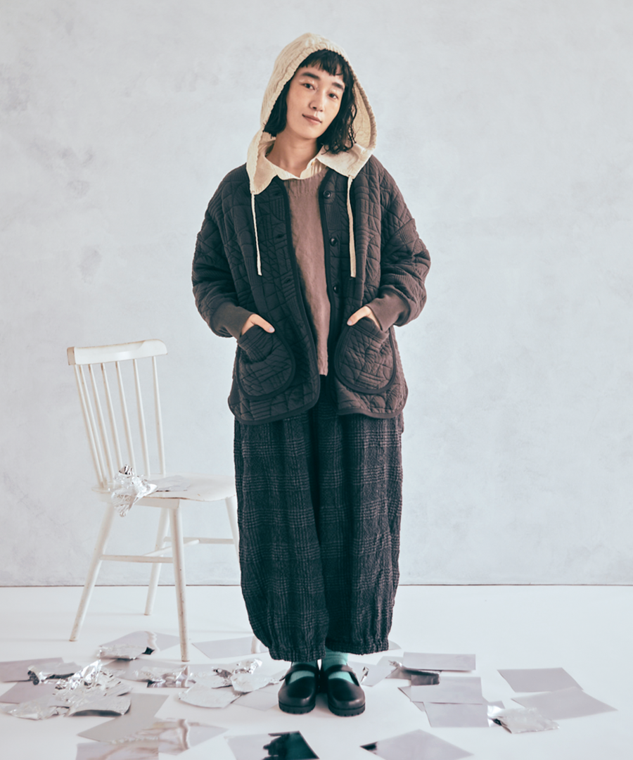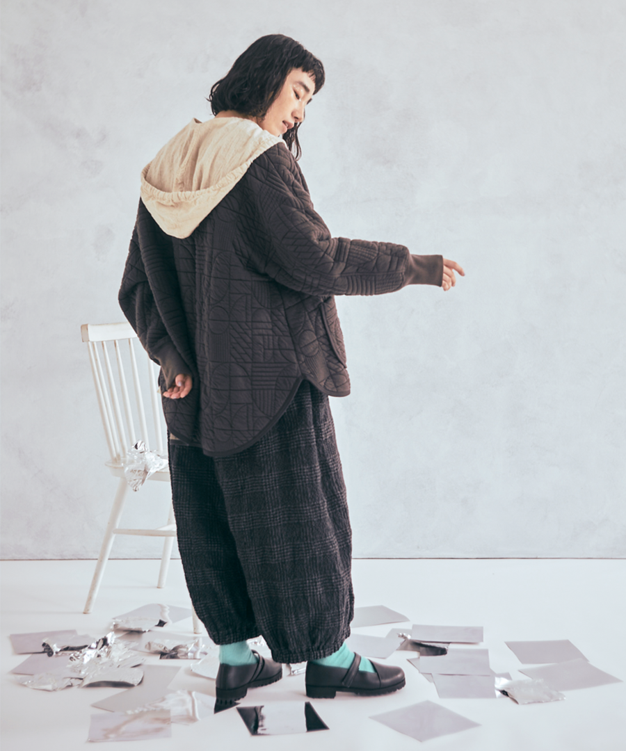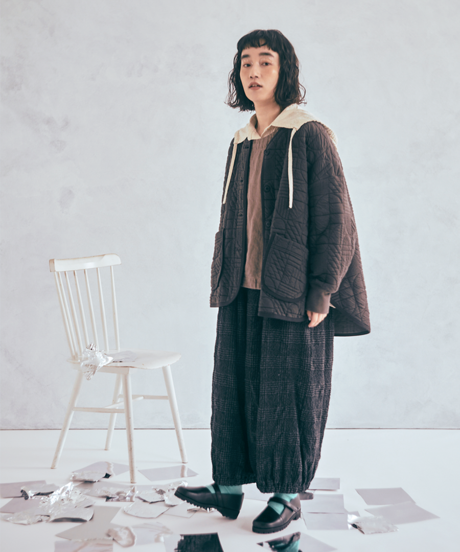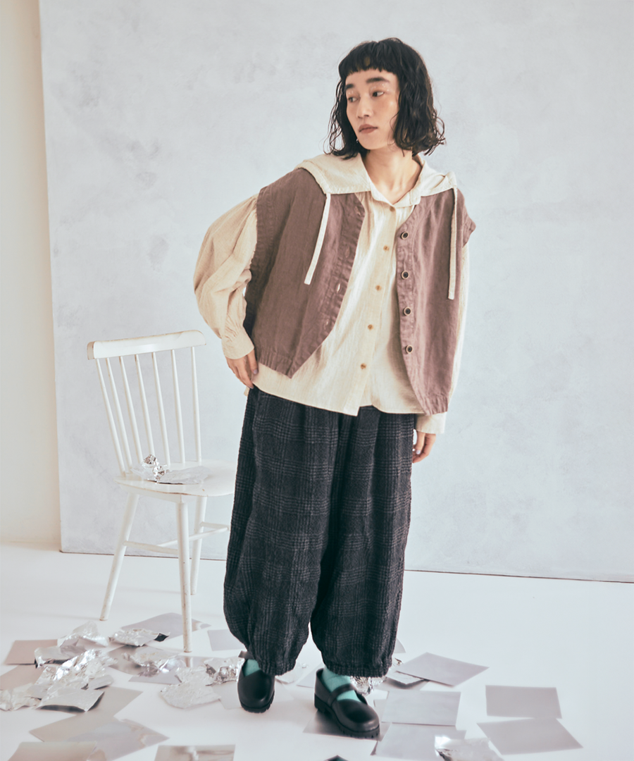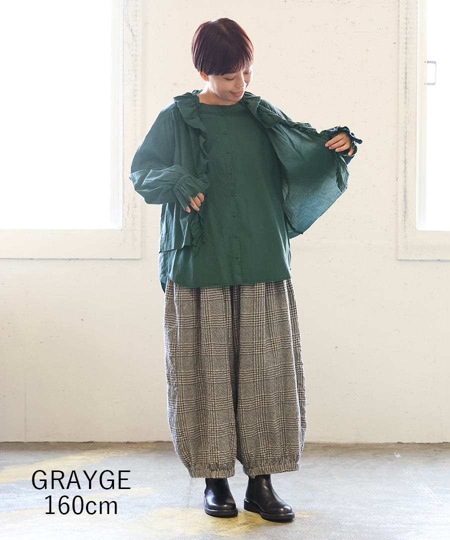 落ち着いたカラーのグレンチェック柄と立体感のある表情が魅力のバルーンパンツ。