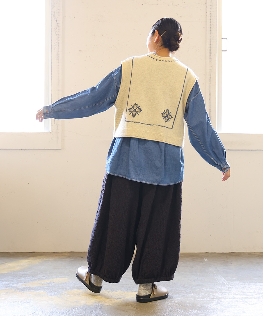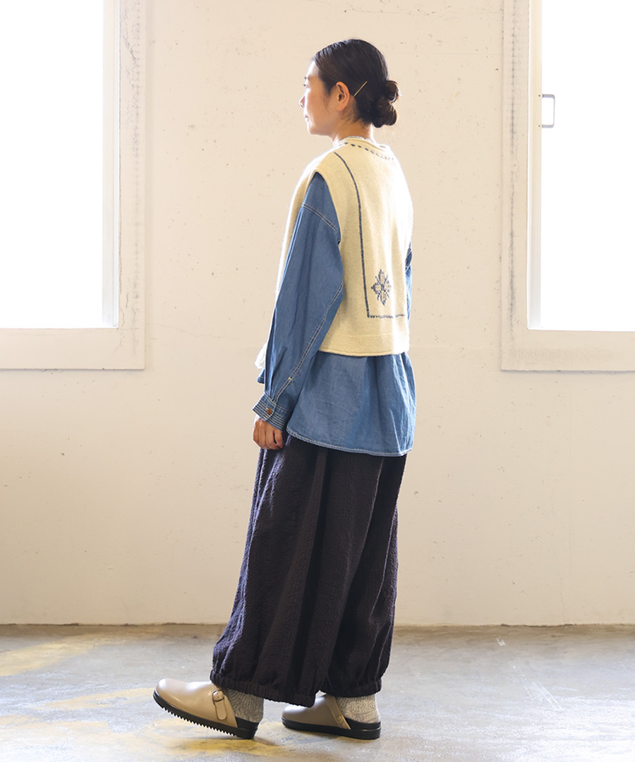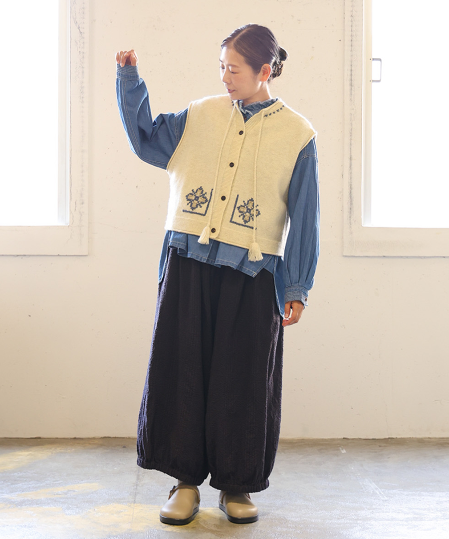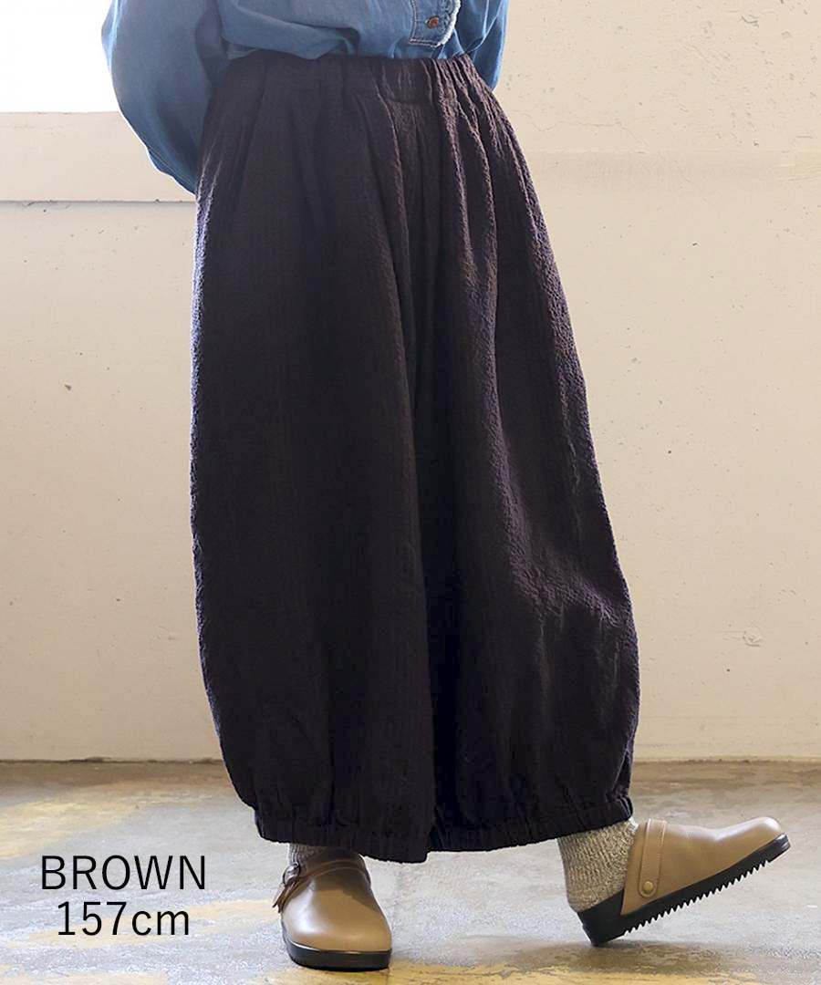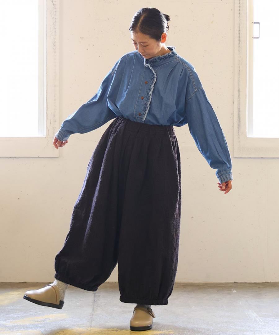 裾にゴムを入れることでふんわりとした丸みを帯びたバルーンシルエットに。