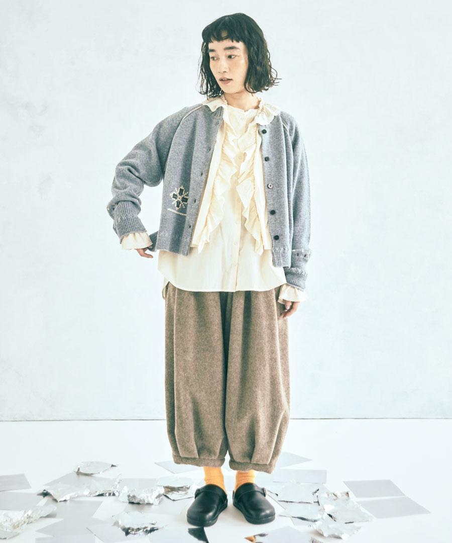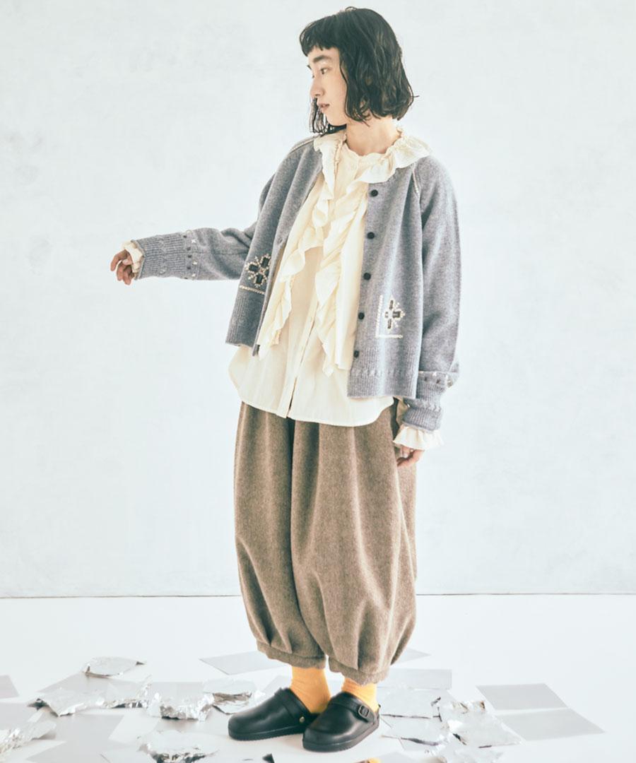 シェットランドウール×ロービング刺繍 カーディガン
