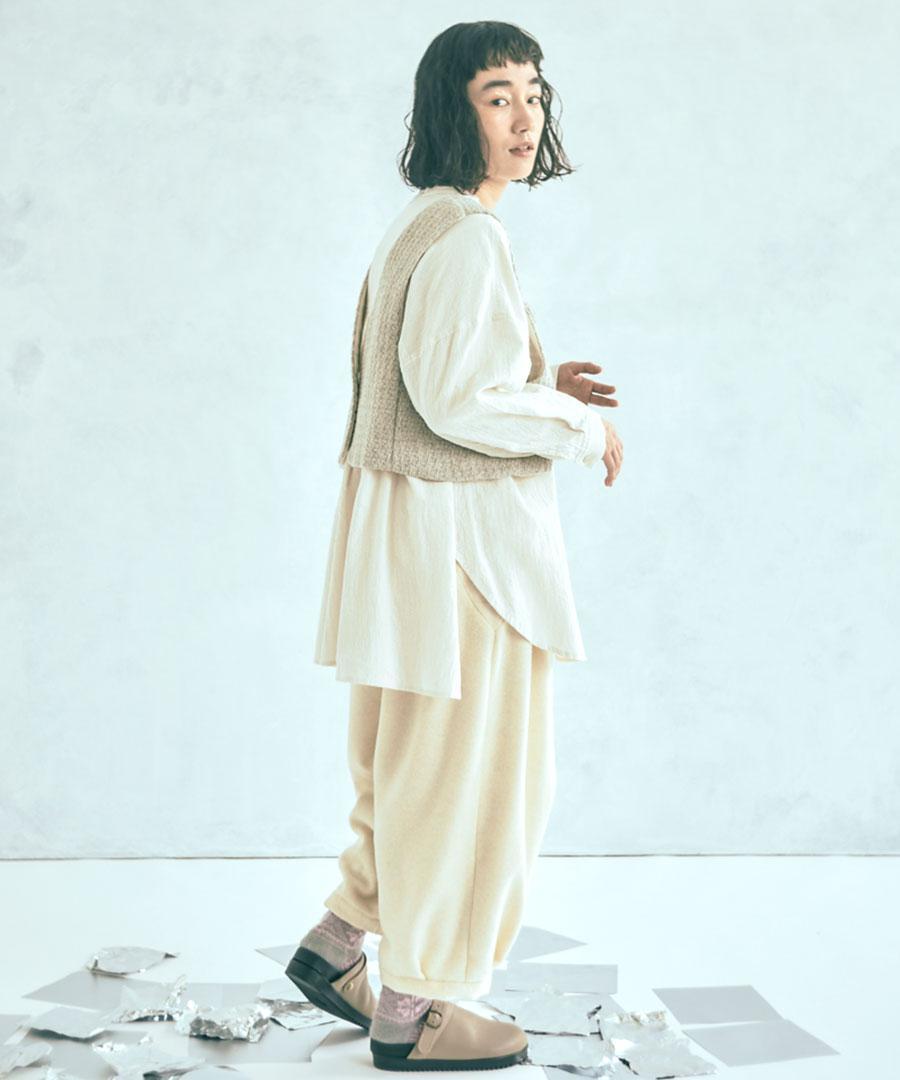 起毛加工を施すことで、やわらかく肌当たりのよい風合いに仕上げました。