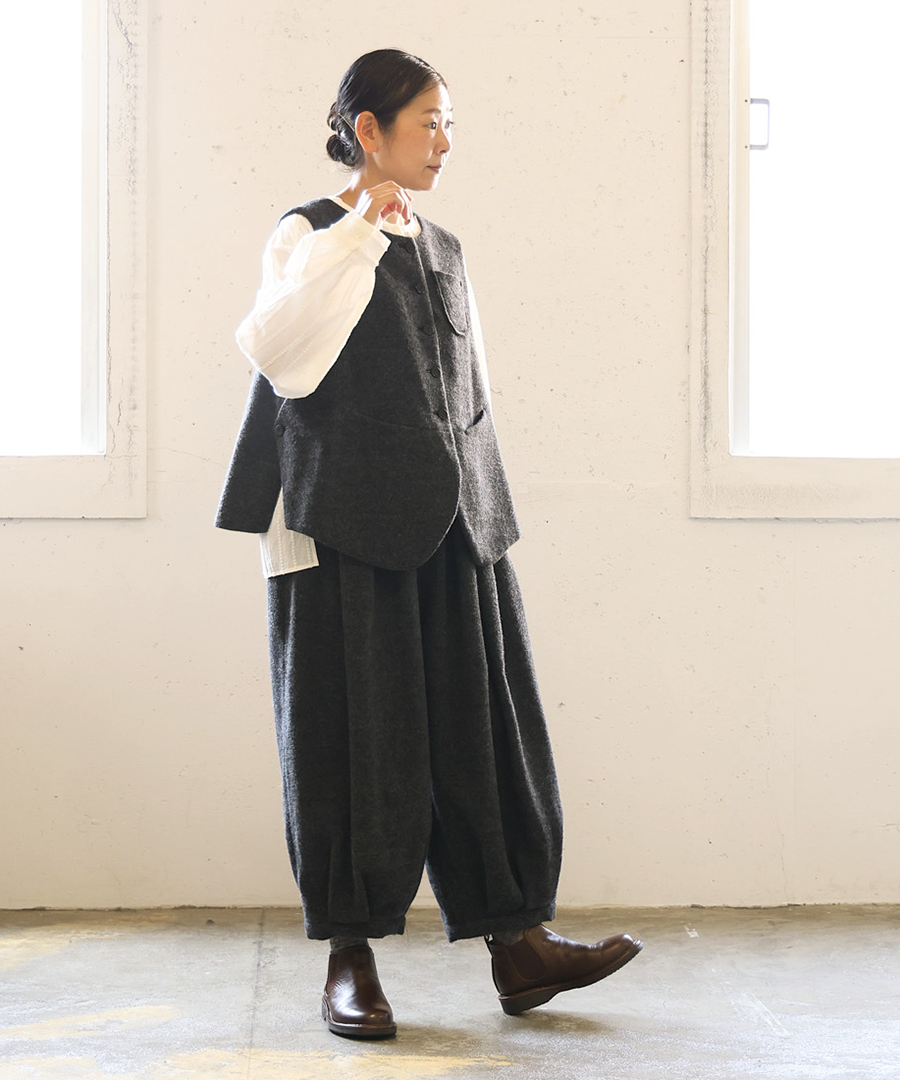 サスティナブルなリサイクルウールを使用したエコ素材を使用したベストです。