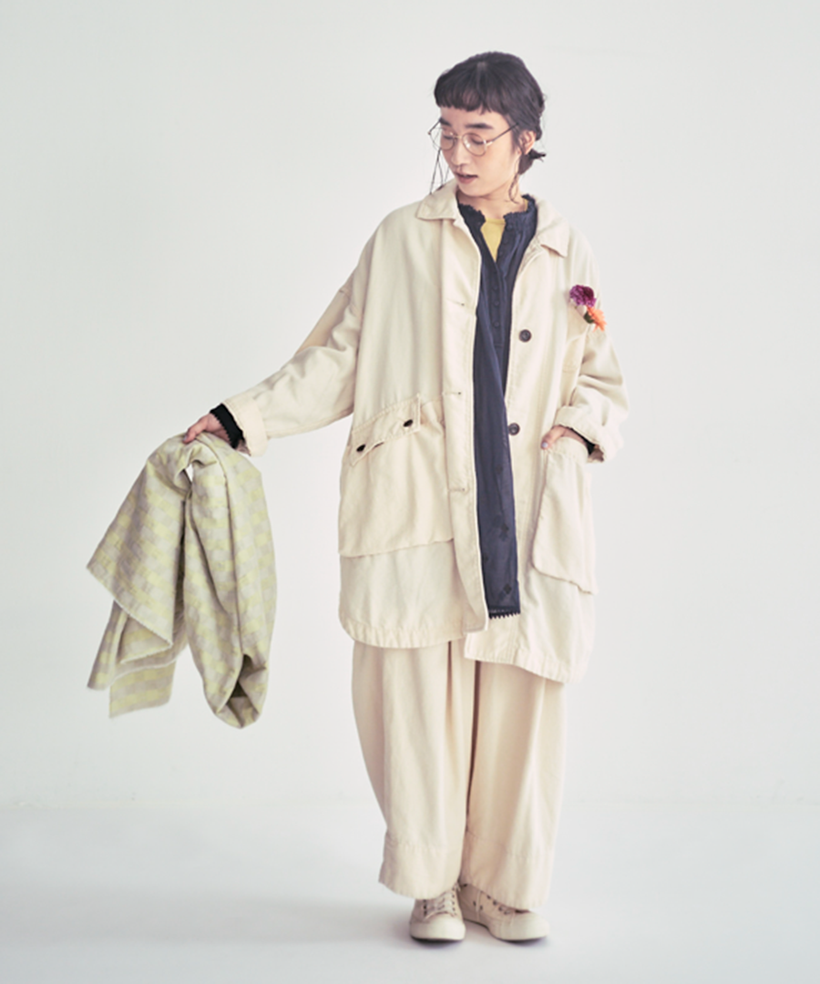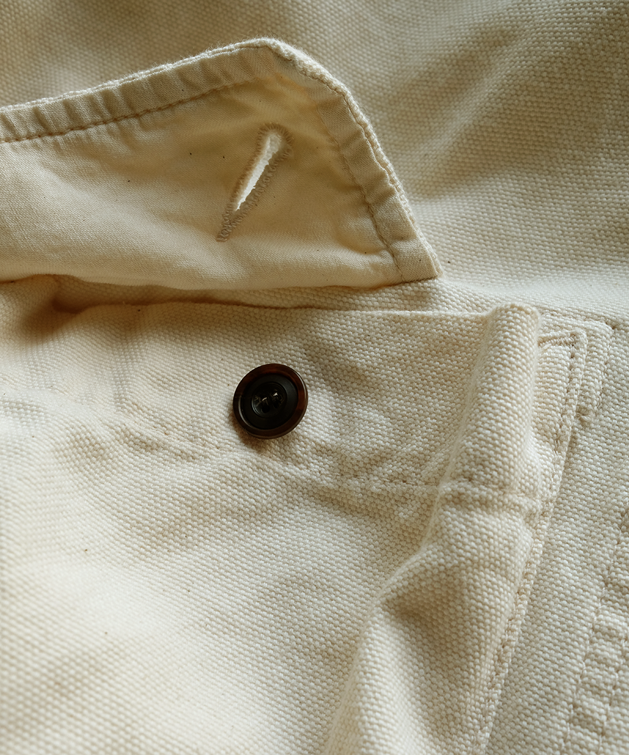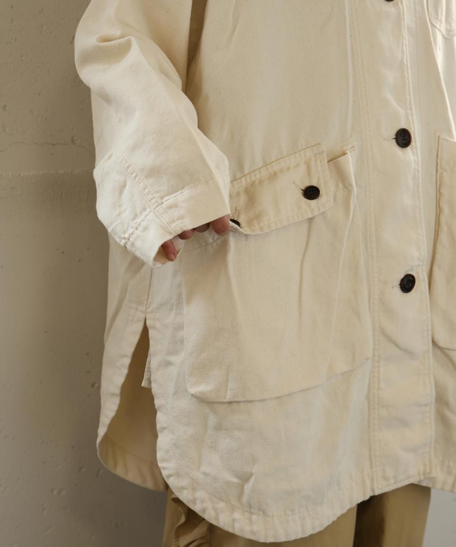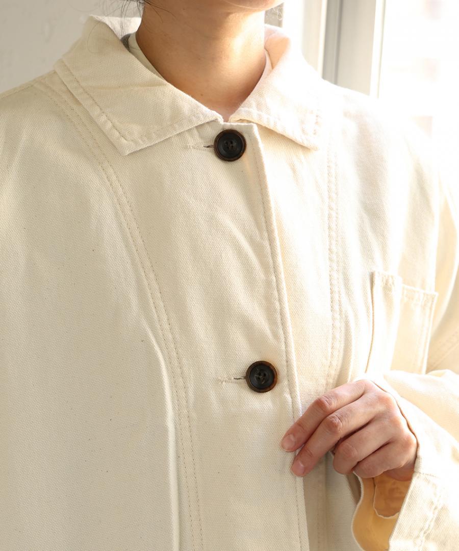 帆布でありながらくったりと柔らかい「ソフトライト帆布」で仕立てた、ナチュラルさと無骨さが組み合わさったワークコートです。