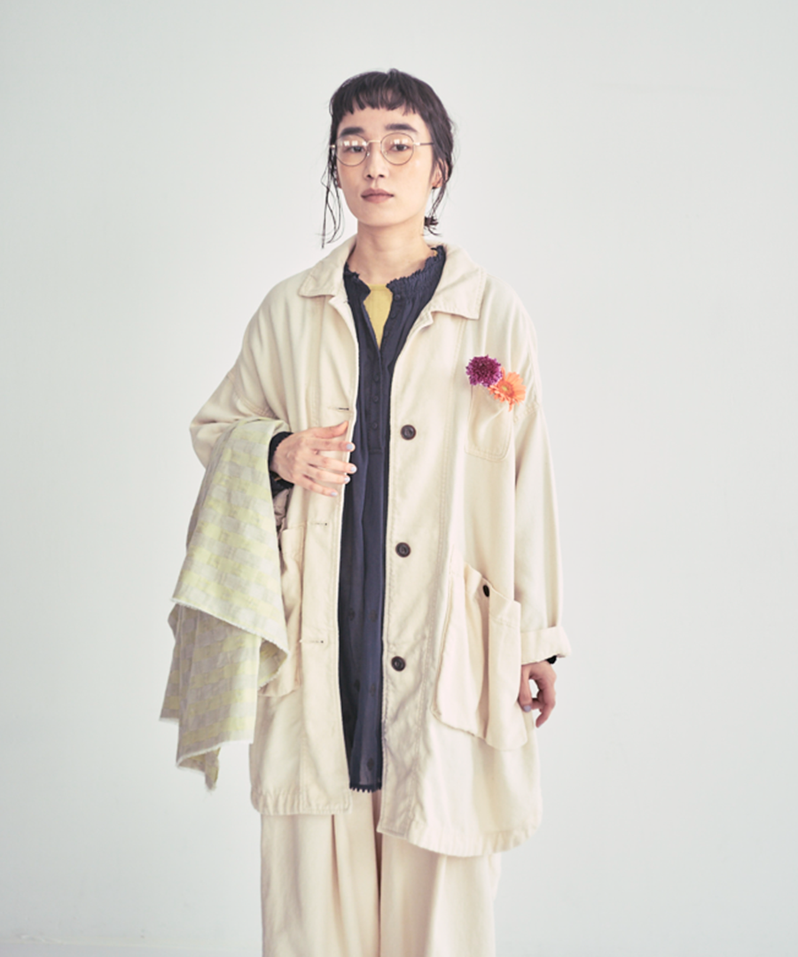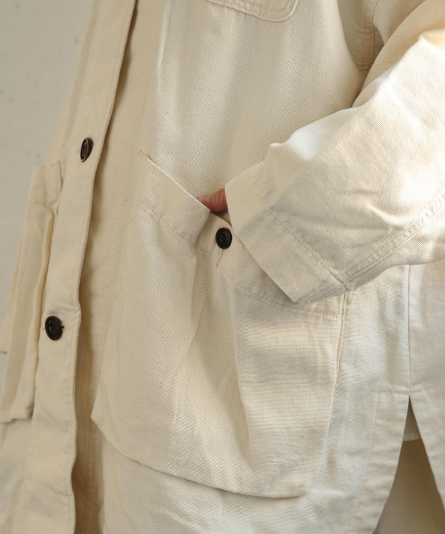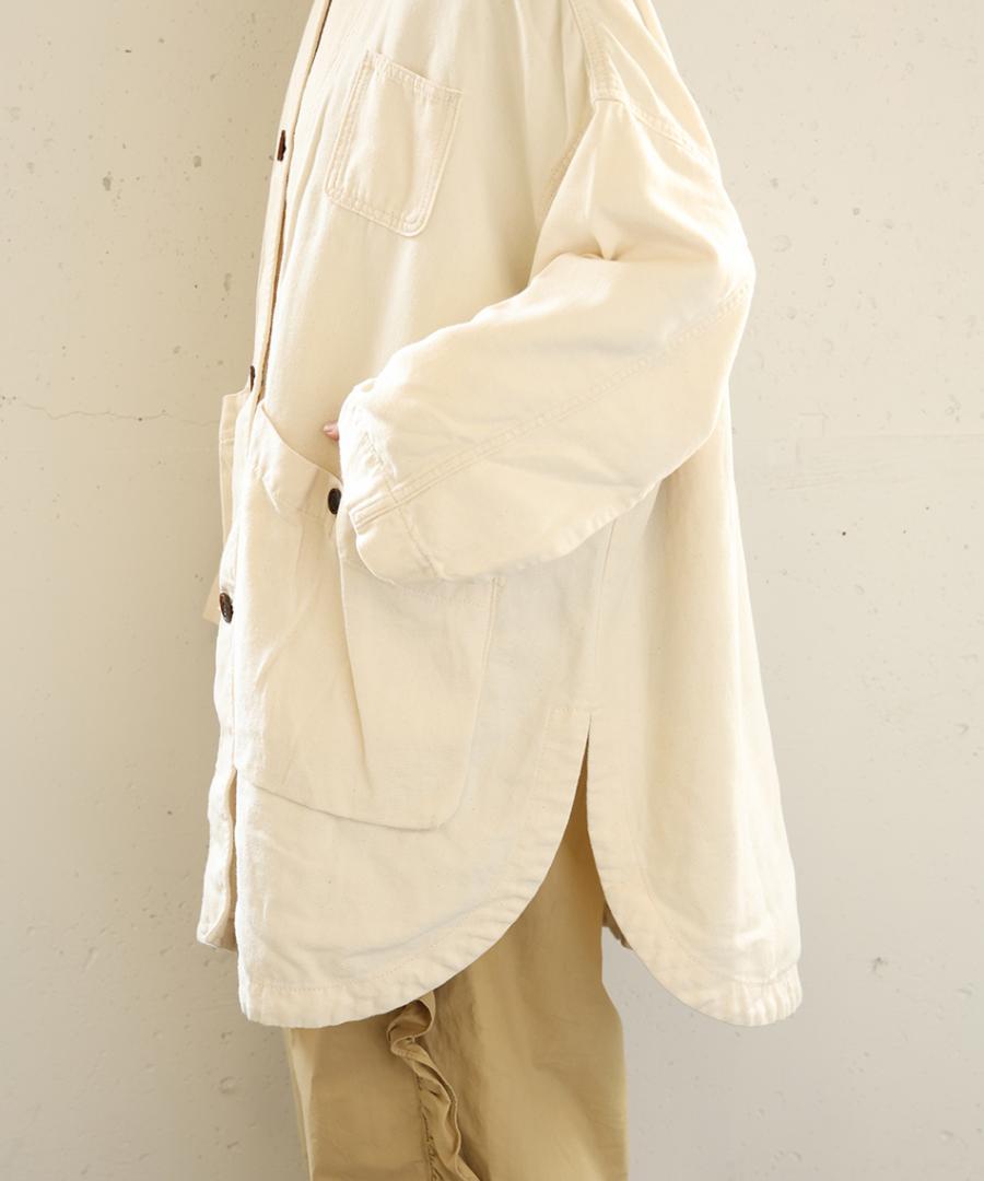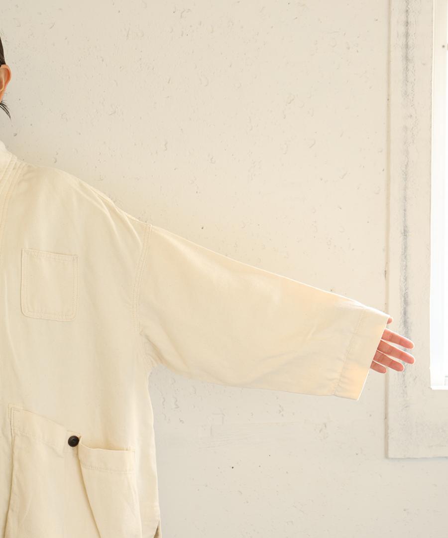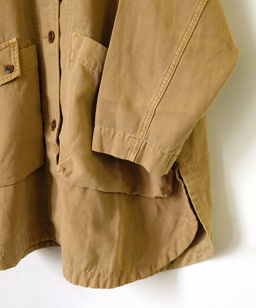 帆布でありながらくったりと柔らかい「ソフトライト帆布」で仕立てた、ナチュラルさと無骨さが組み合わさったワークコートです。