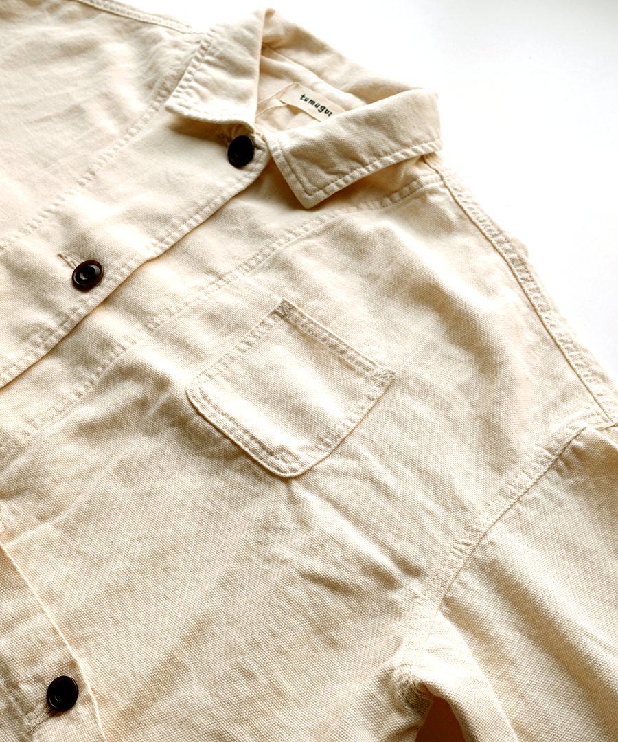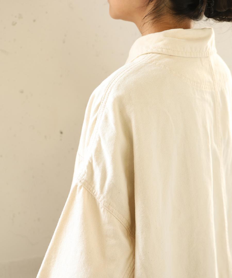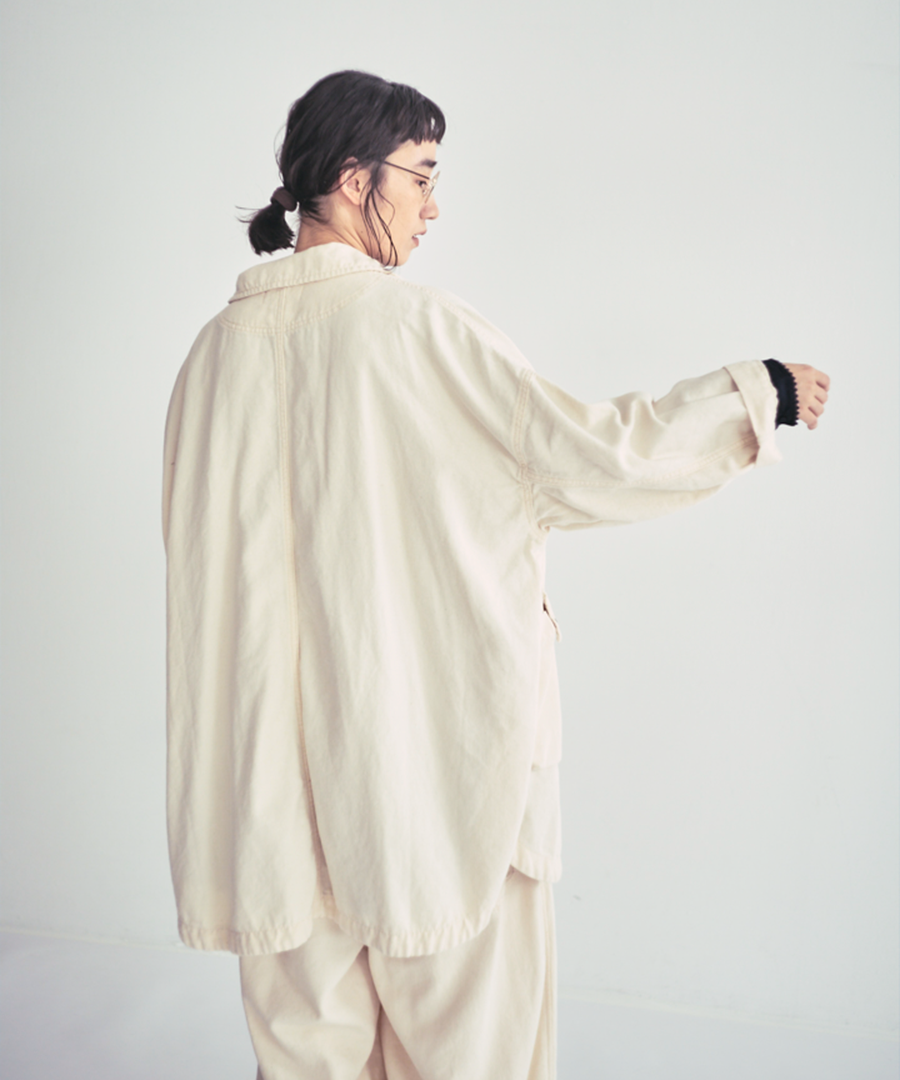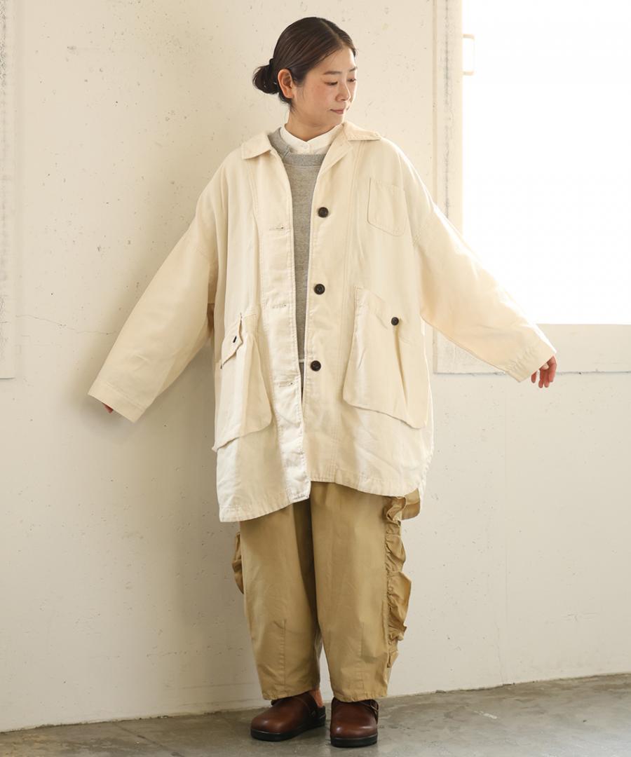 帆布でありながらくったりと柔らかい「ソフトライト帆布」で仕立てた、ナチュラルさと無骨さが組み合わさったワークコートです。