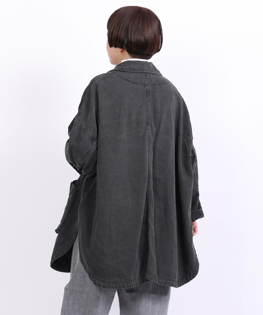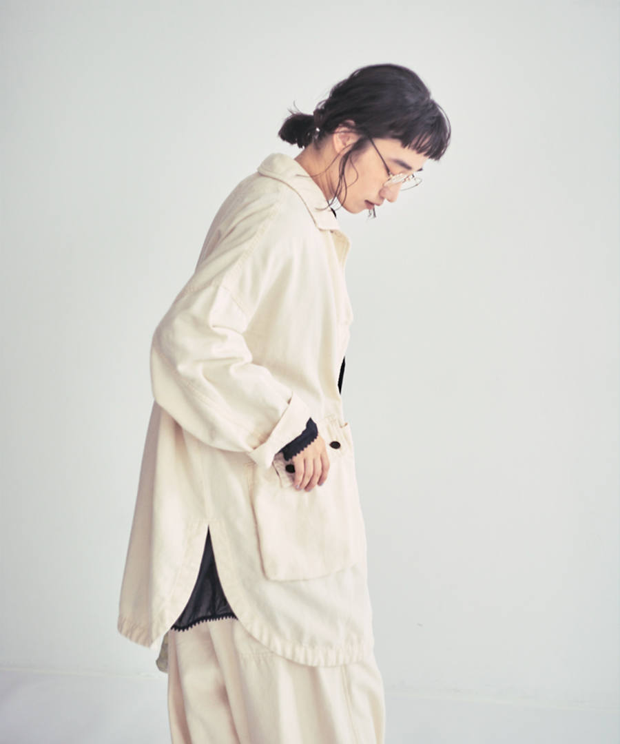 裾のラウンドスリットが軽やかさを演出し、フロントのアシンメトリーなポケットがアクセントに。