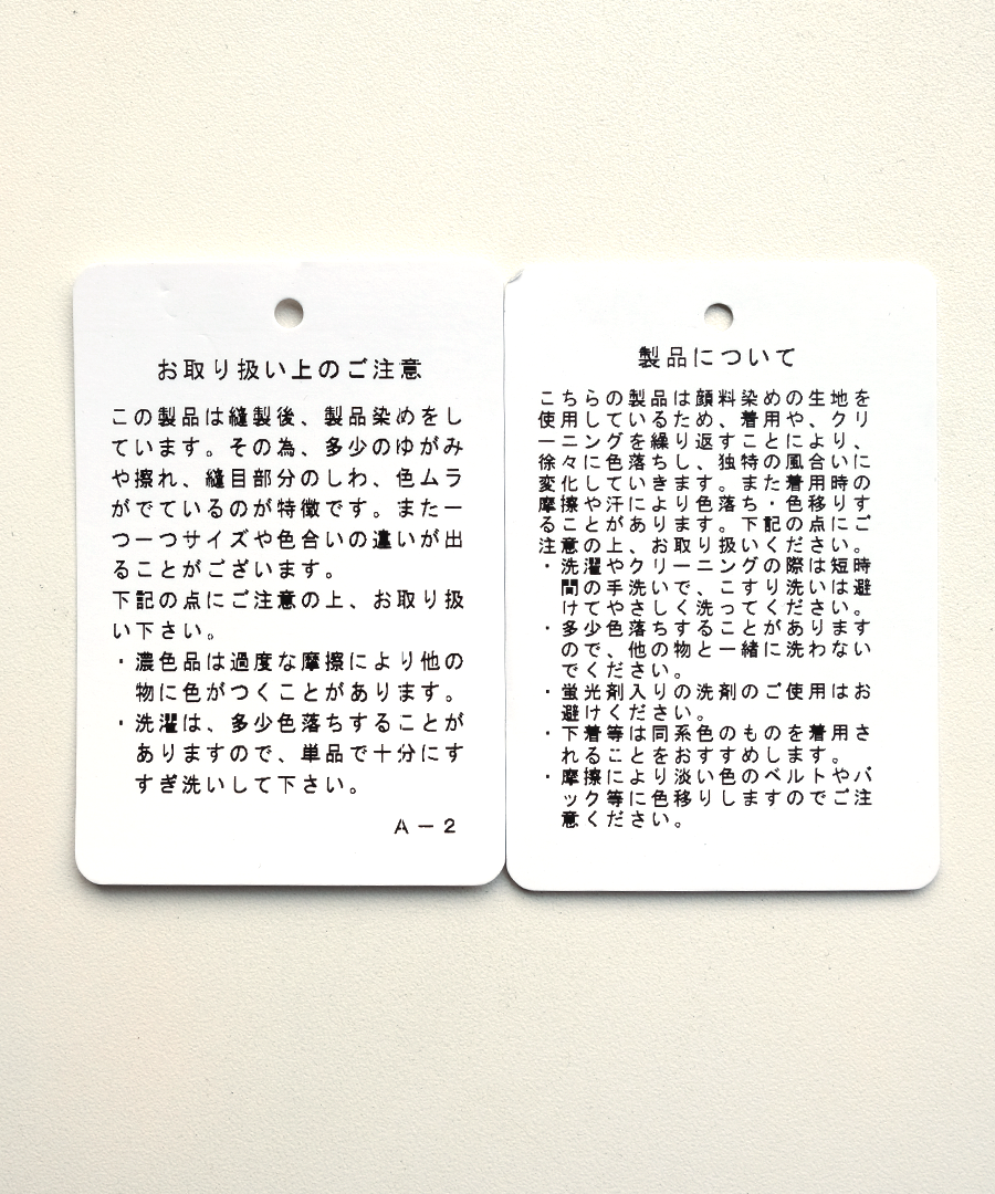 洗うたびに増していく、味わい深い色落ちや風合いの変化も楽しみのひとつです。