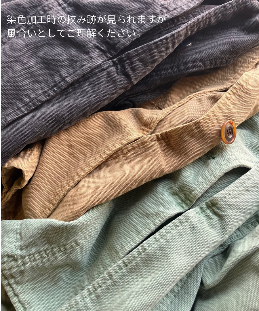 顔料染め加工を施すことで、使い込まれたようなヴィンテージライクな表情に。