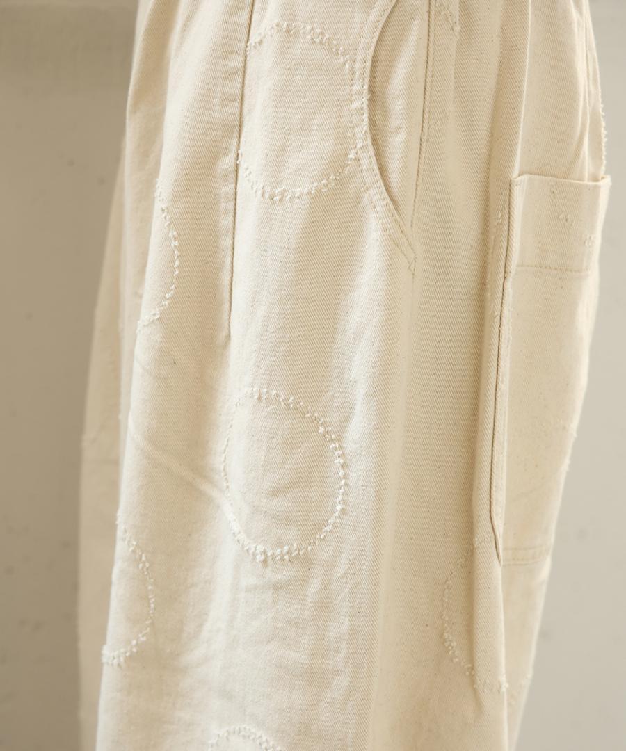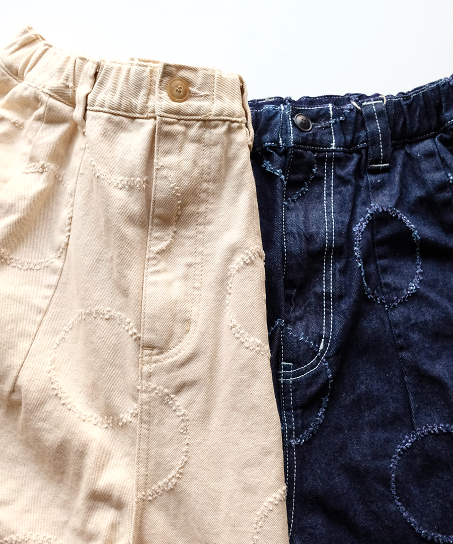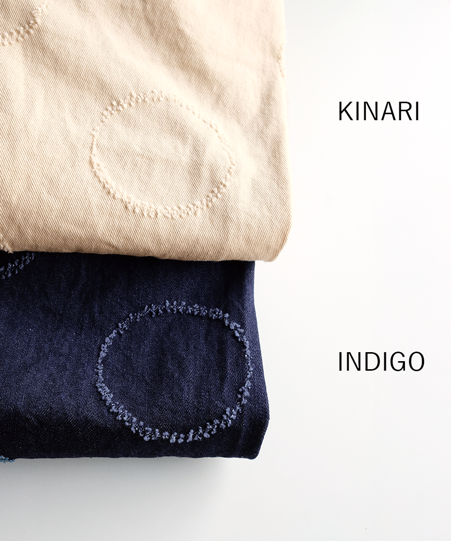 一見、立体的な刺繍のように見えるドット柄はオリジナルファブリック。