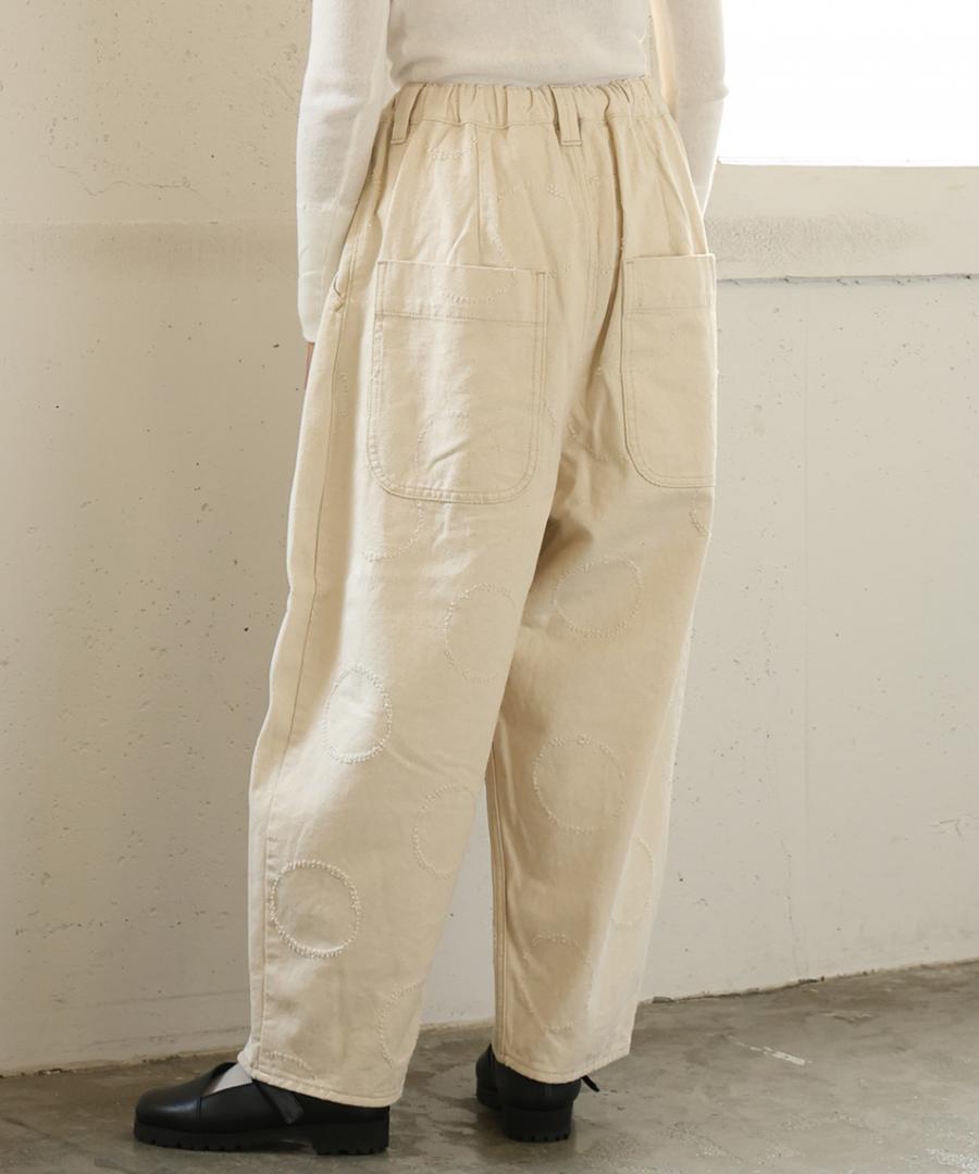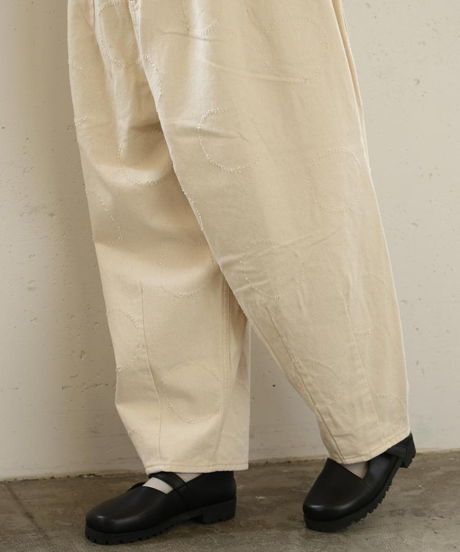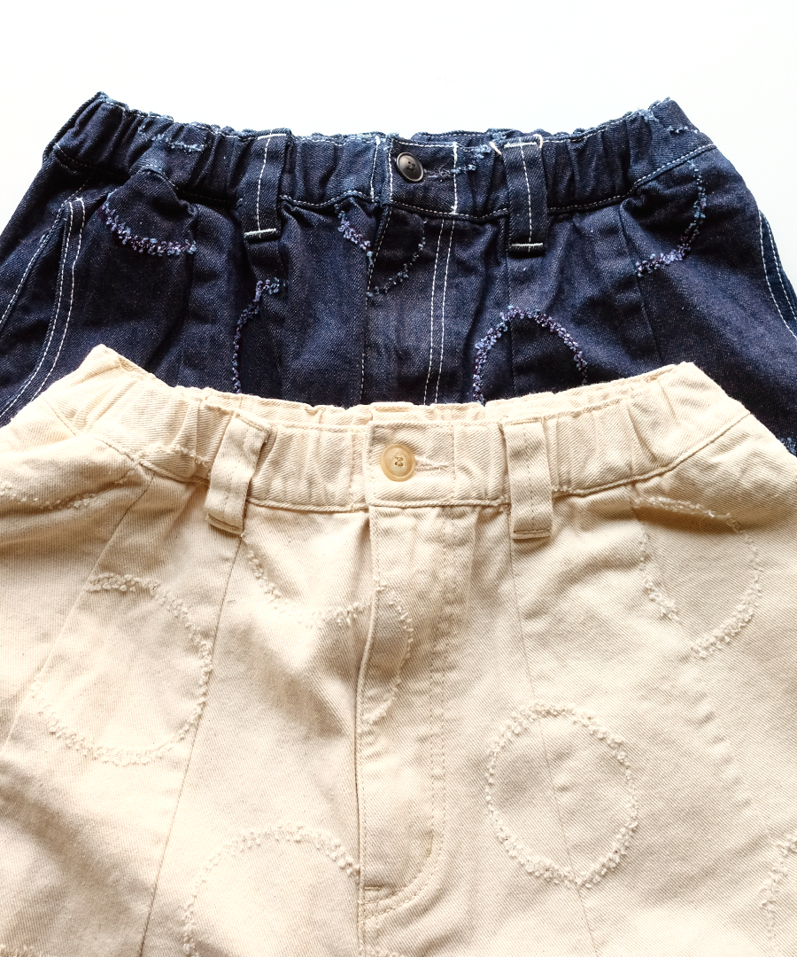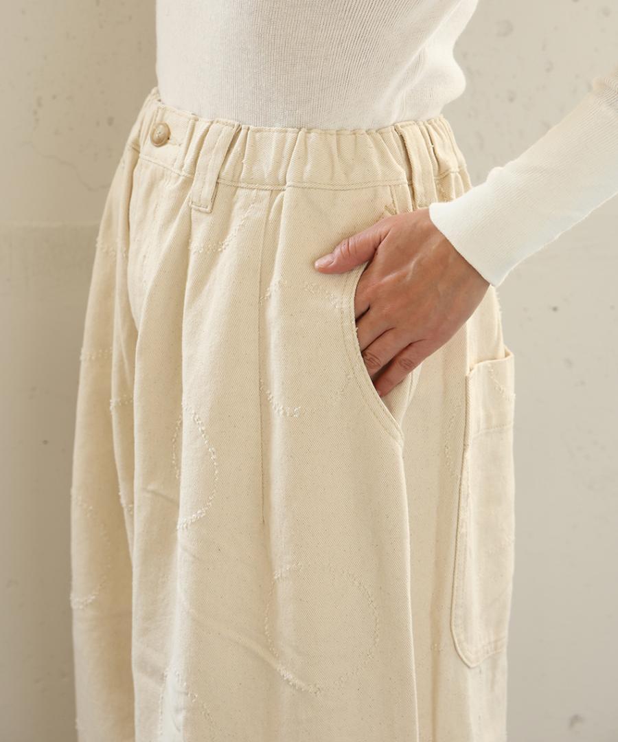一見、立体的な刺繍のように見えるドット柄はオリジナルファブリック。