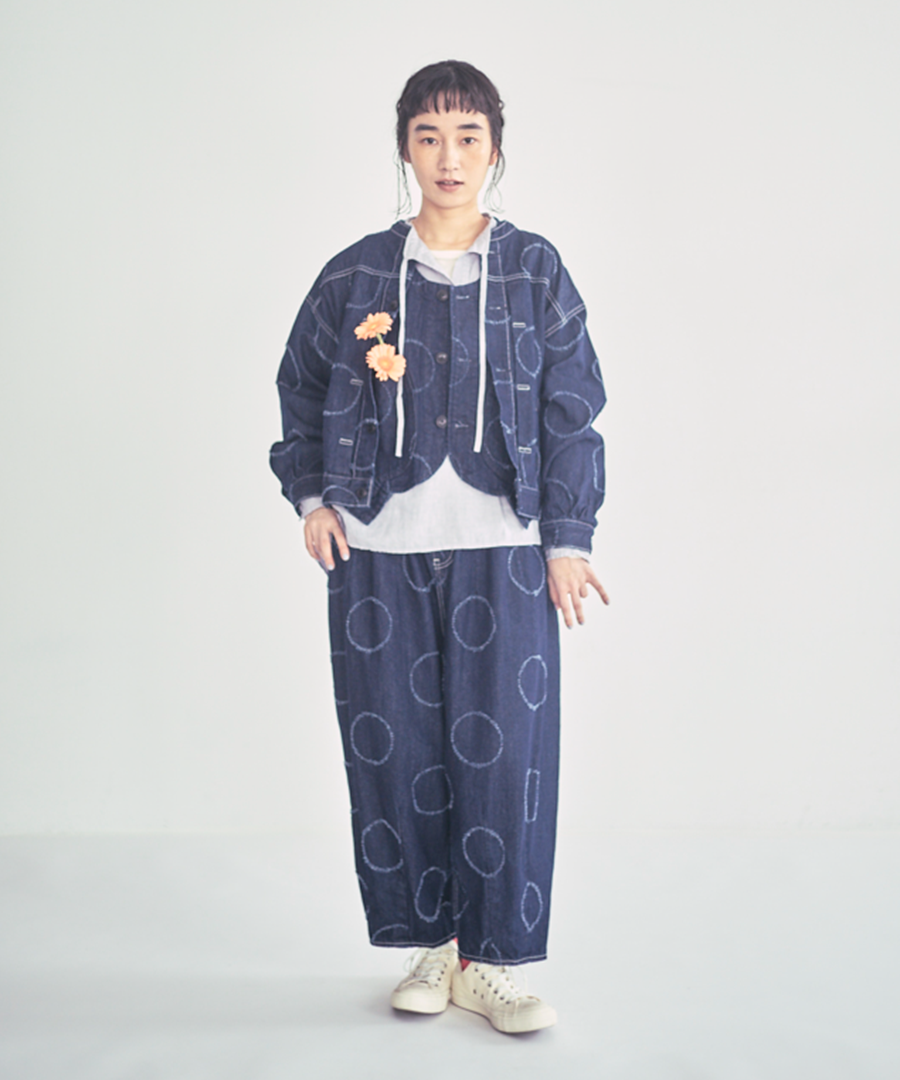 デニム特有の窮屈さを感じさせない、10oz(オンス)の柔らかさが魅力。お出かけにはもちろん、長時間座る日やデイリー使いにもストレスフリーな穿き心地です。