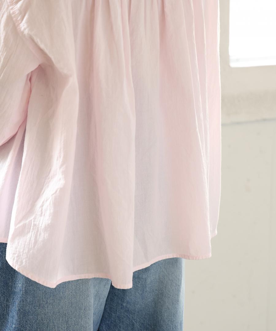 空気を含んだように軽くて柔らかな薄手コットンを使用し、ふんわりと軽い着心地に仕上げました。製品染めならではの、ニュアンスのある色合いと、くったりとした風合いが魅力の1枚です。
