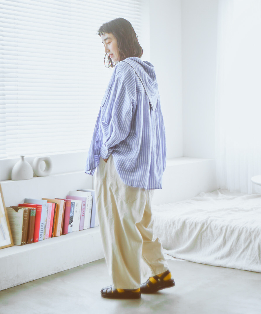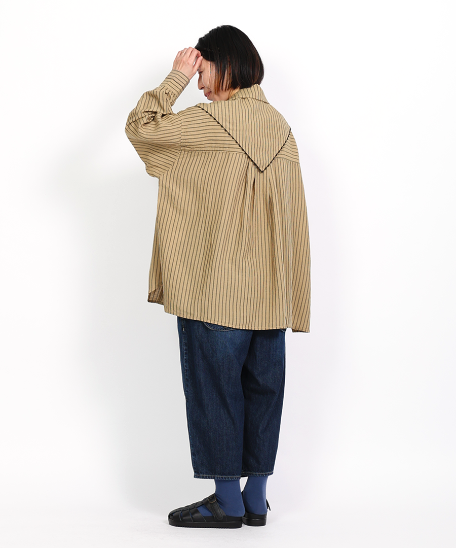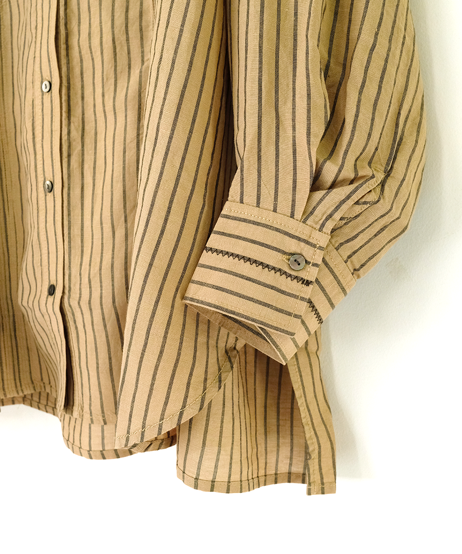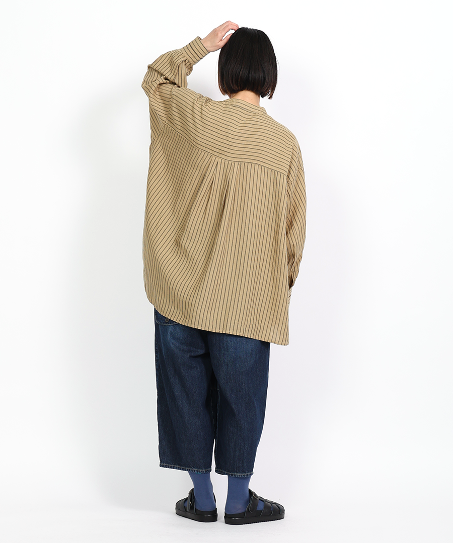 ストライプの端正な印象に、テンセル特有の「とろみ」と「落ち感」が加わることで、メンズライクになりすぎず、大人のこなれスタイルを叶える一枚に仕上がりました。