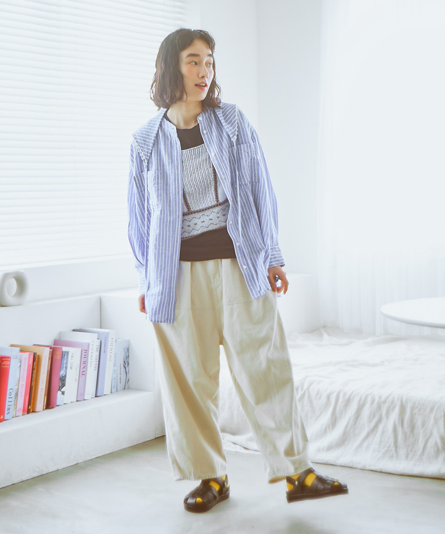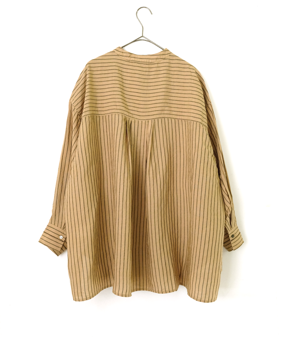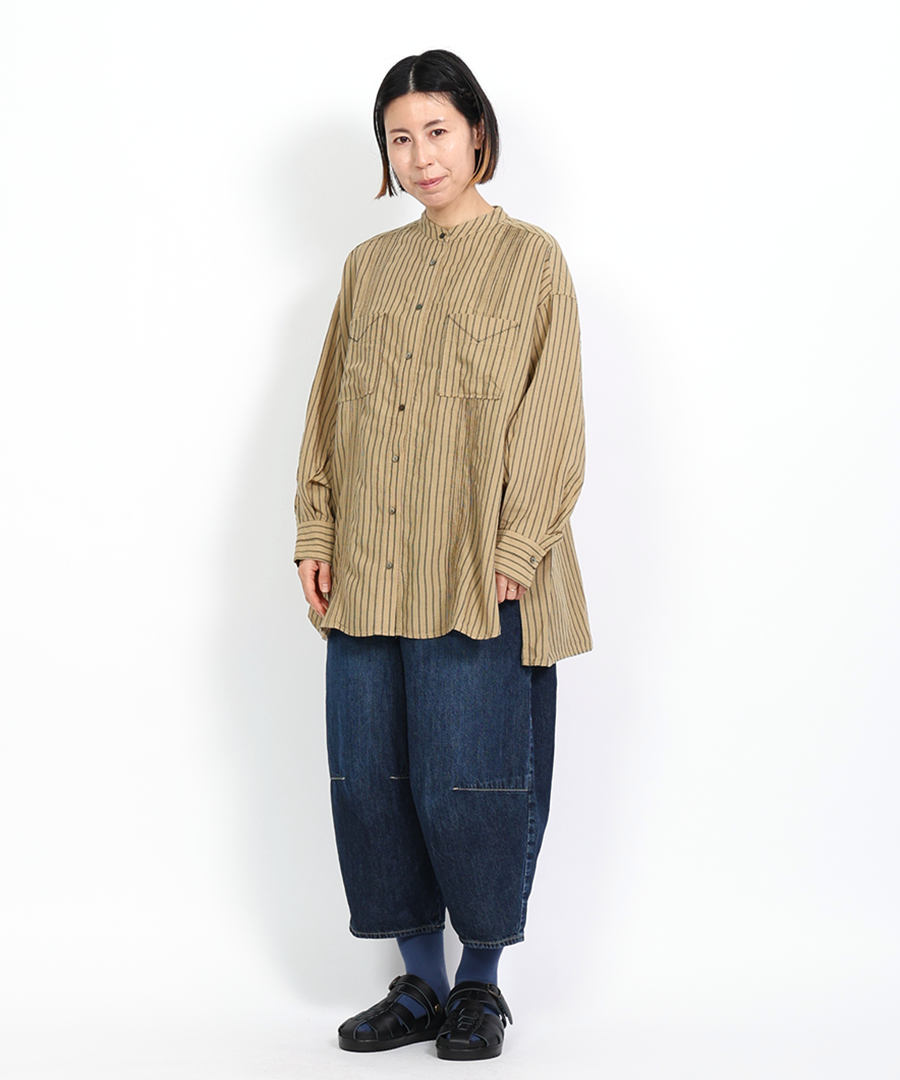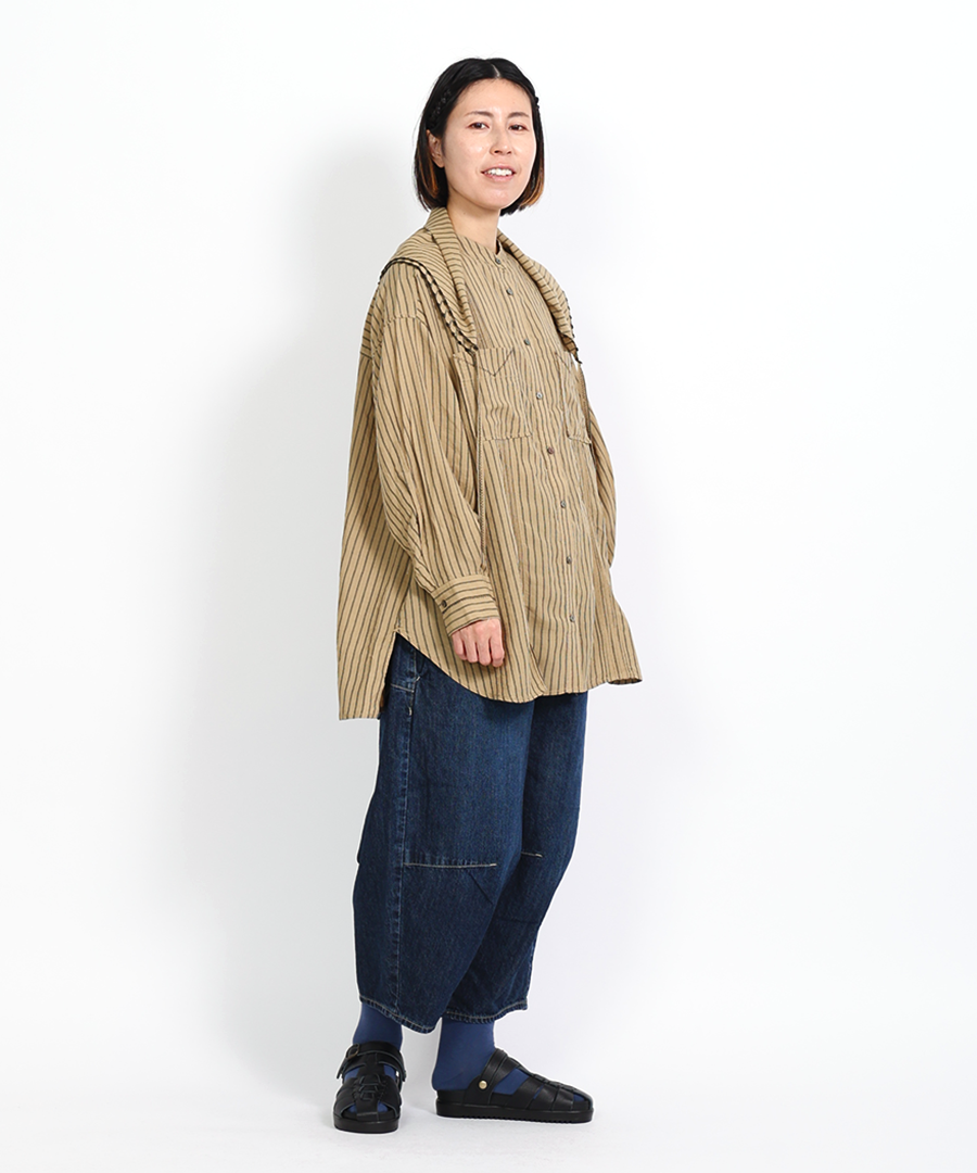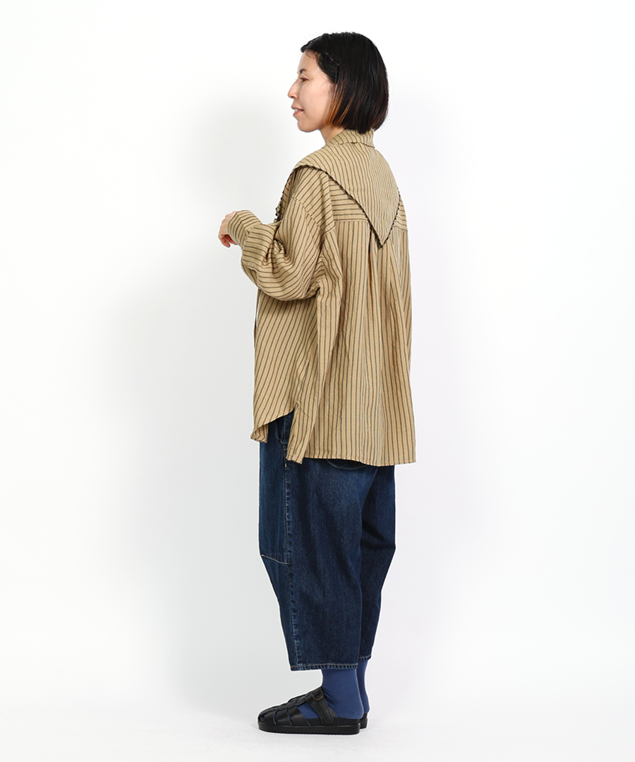 ストライプの端正な印象に、テンセル特有の「とろみ」と「落ち感」が加わることで、メンズライクになりすぎず、大人のこなれスタイルを叶える一枚に仕上がりました。