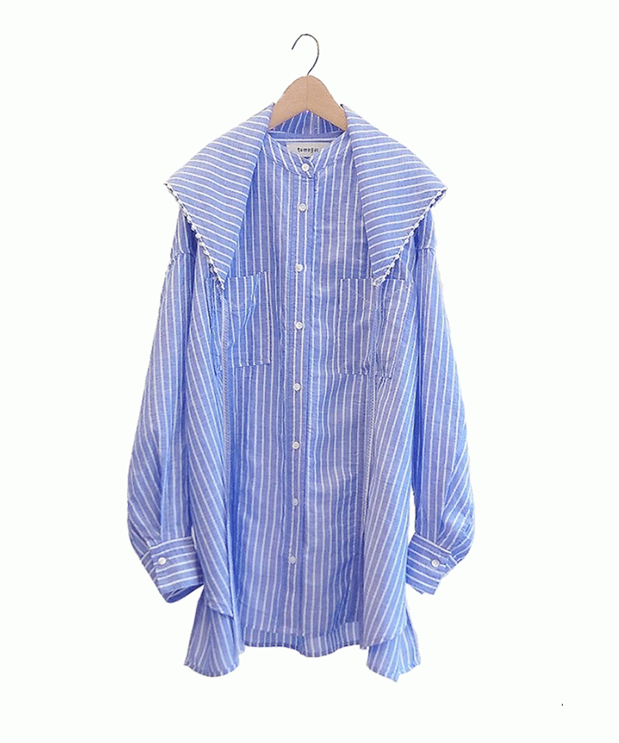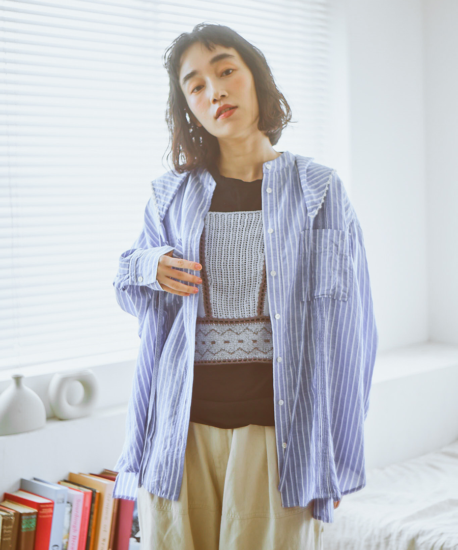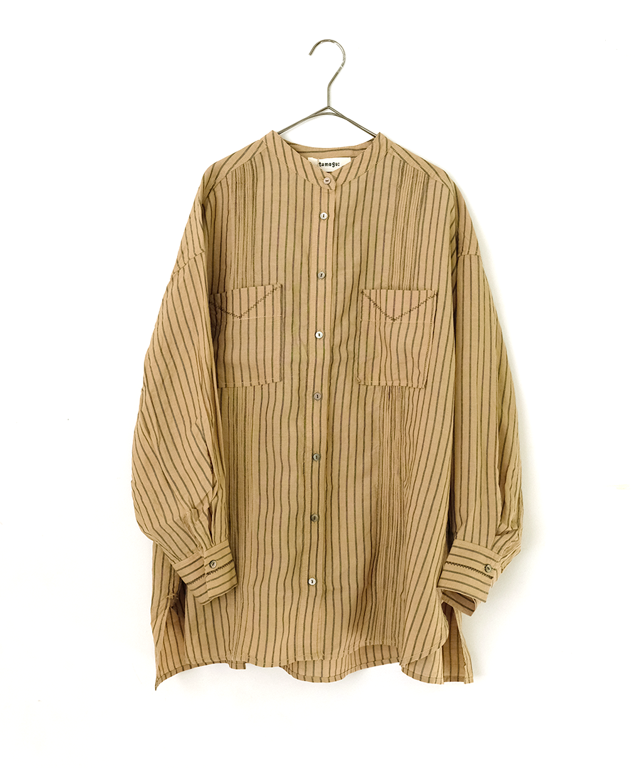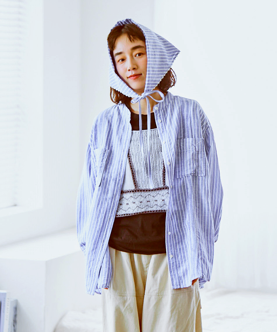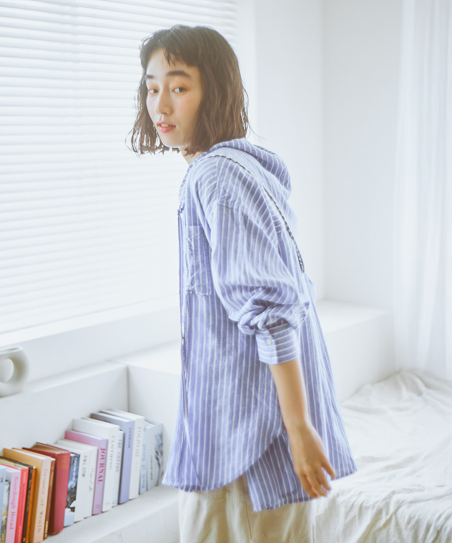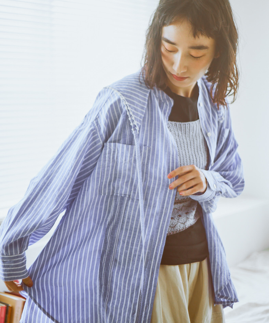 アレンジで魅せる、上質なストライプチュニックシャツ