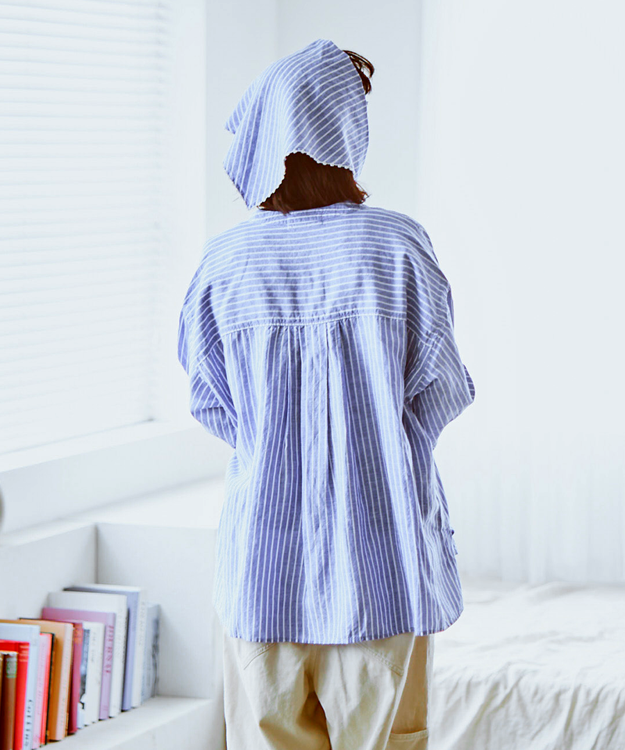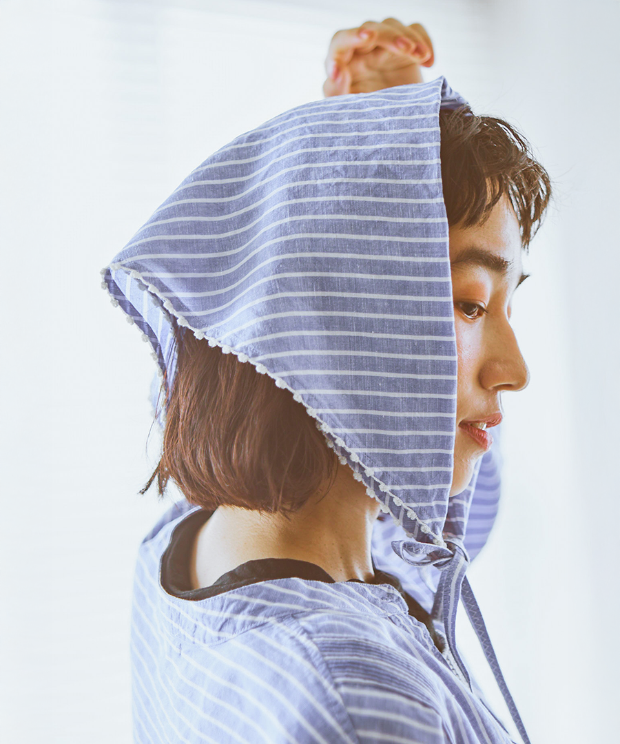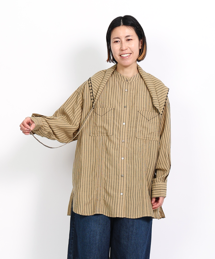 テンセルリネンストライプ チュニックシャツ(スカーフ付き)