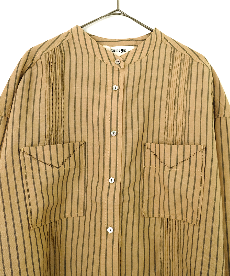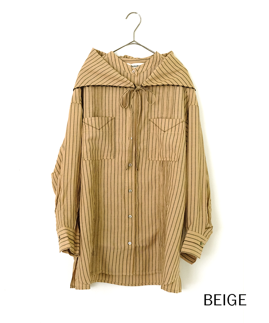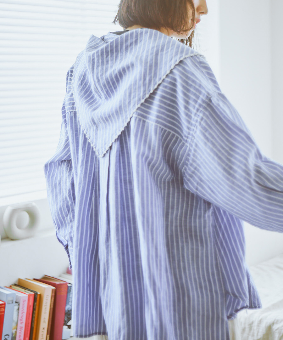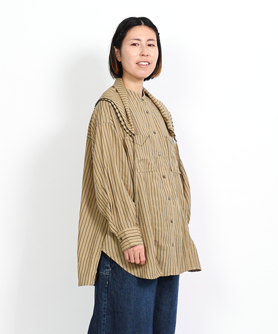 テンセルリネンストライプ チュニックシャツ(スカーフ付き)