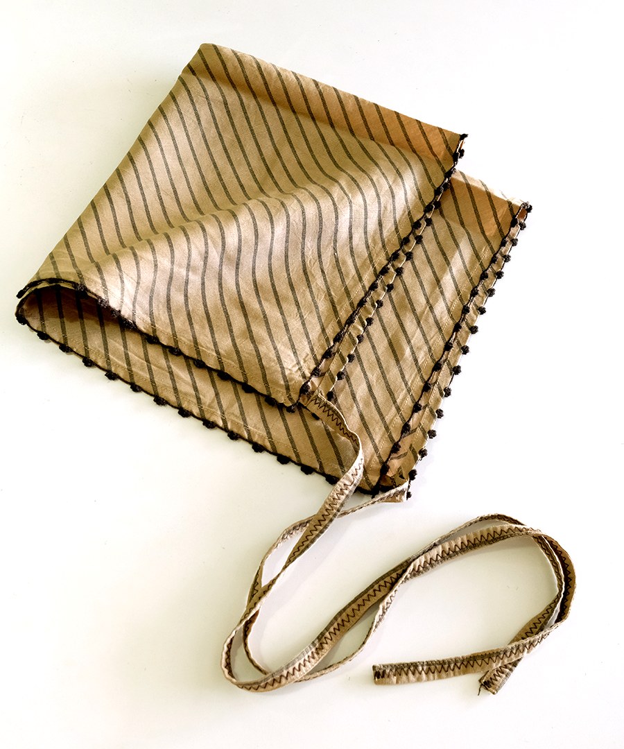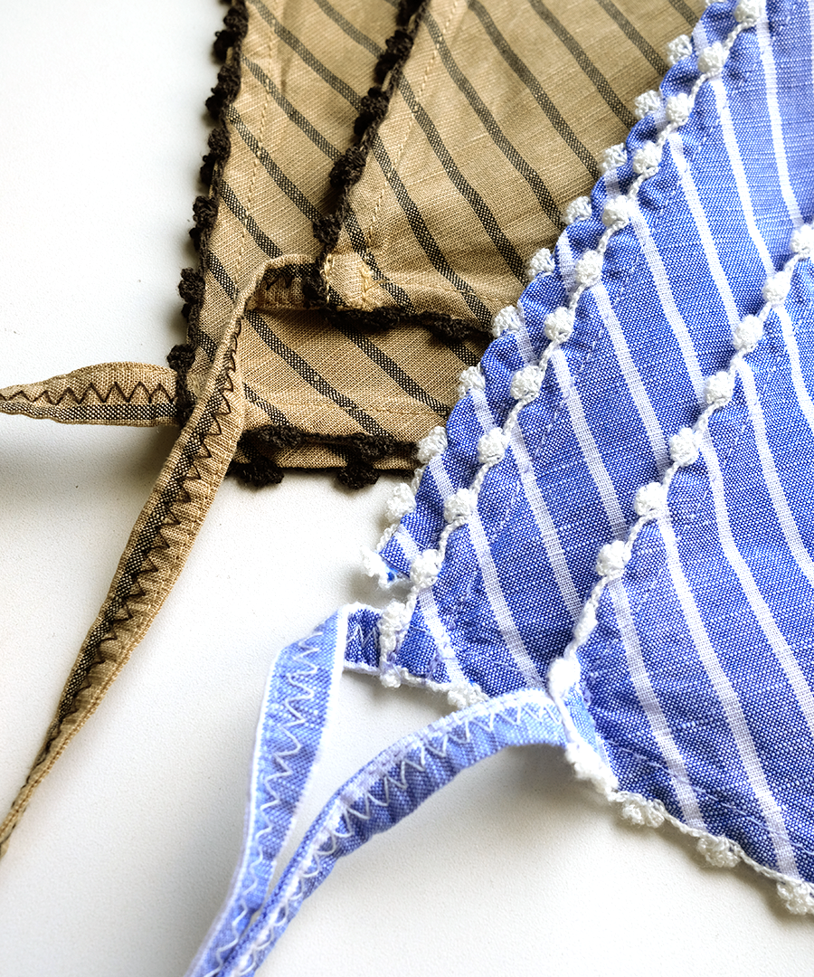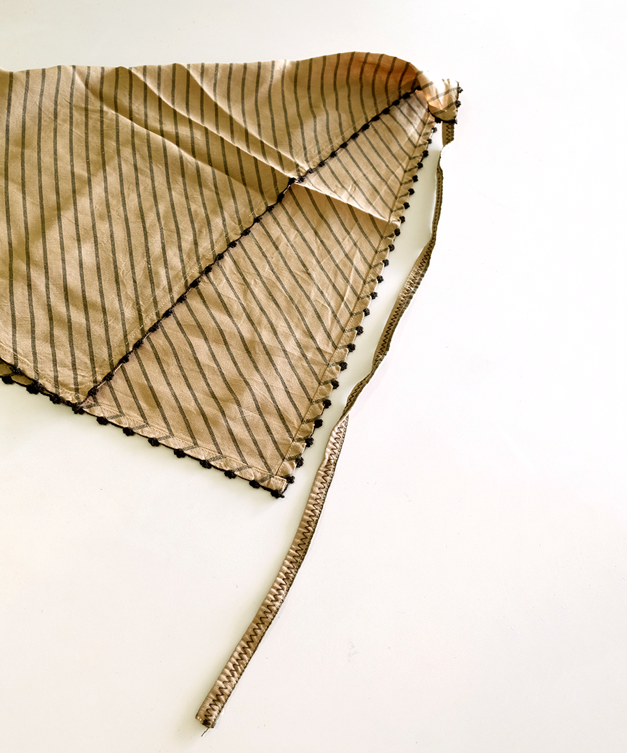 正方形のスカーフ付きで、首元に巻いてクラシカルなアクセントにしたり、リボン結びで華やかさをプラスしたりとアレンジ自在です。バッグに結んだりヘアアクセサリーとして使ったりと、楽しみも広がります。
