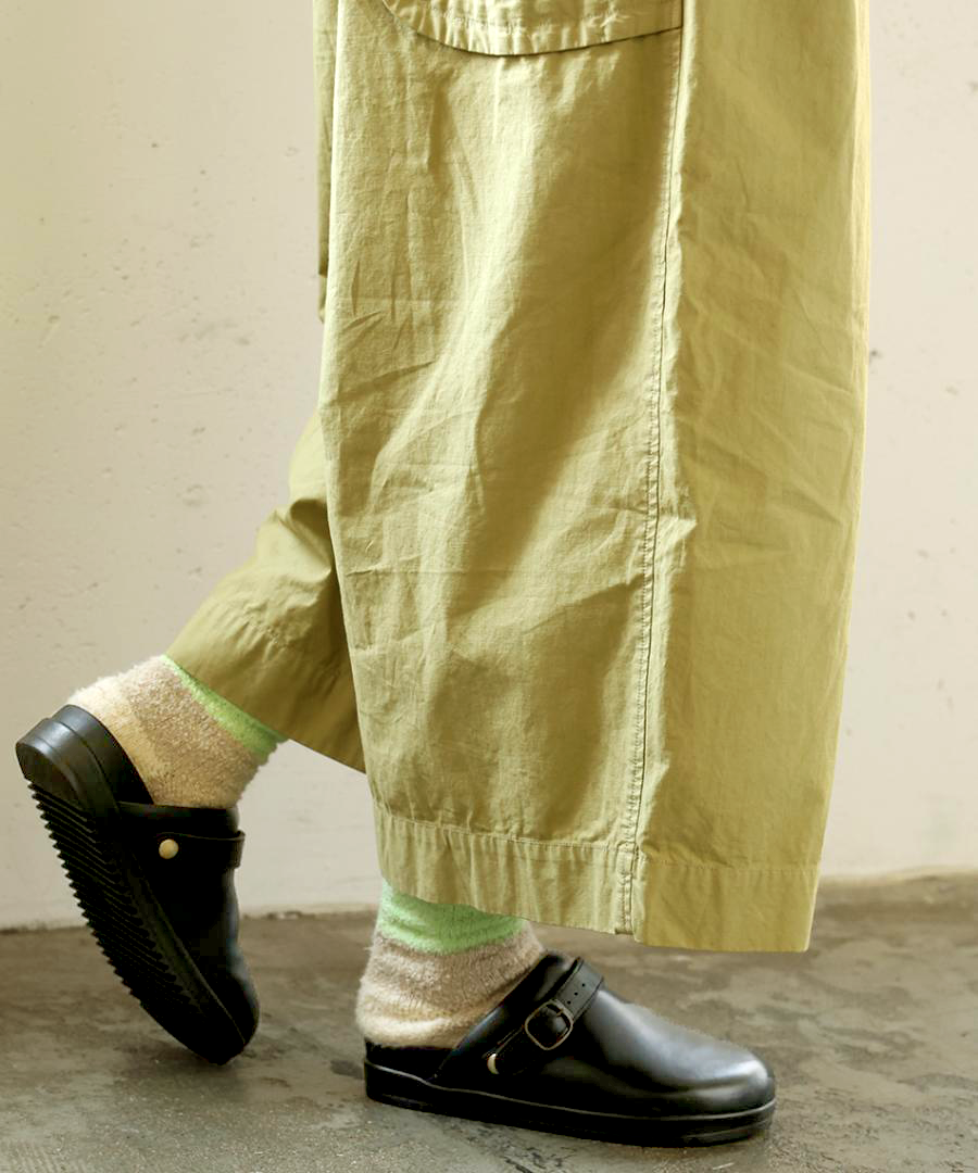足首が少し覗く絶妙な8分丈のデザイン。寒い時期はカラーソックスやブーツを合わせ、春先には素足にサンダルで軽快にと、足元のレイヤードを楽しめます。