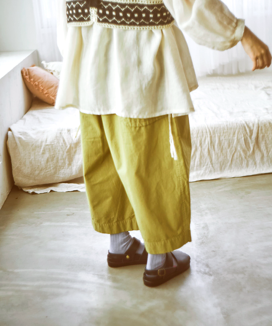 ジンバブエコットンツイル 8分丈ワイドパンツ