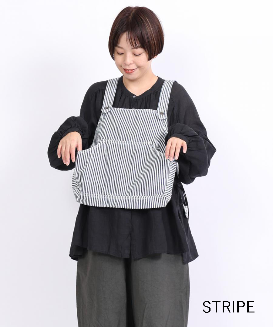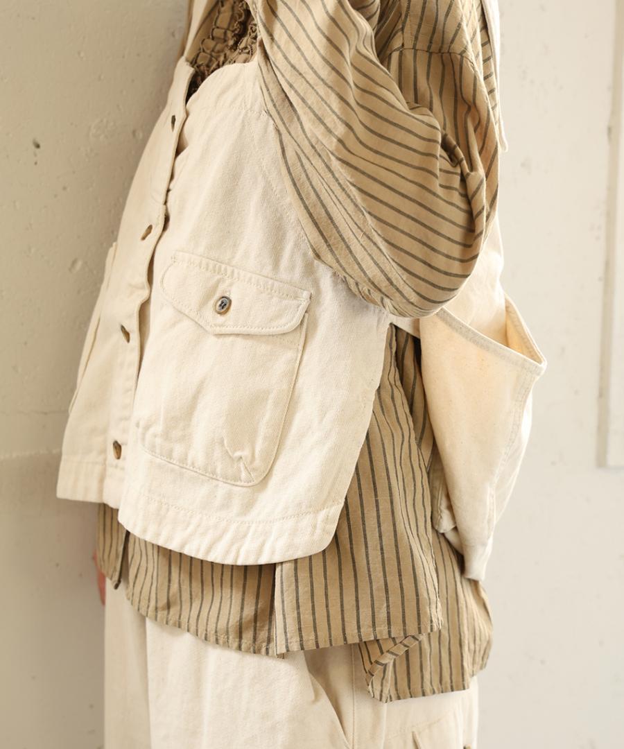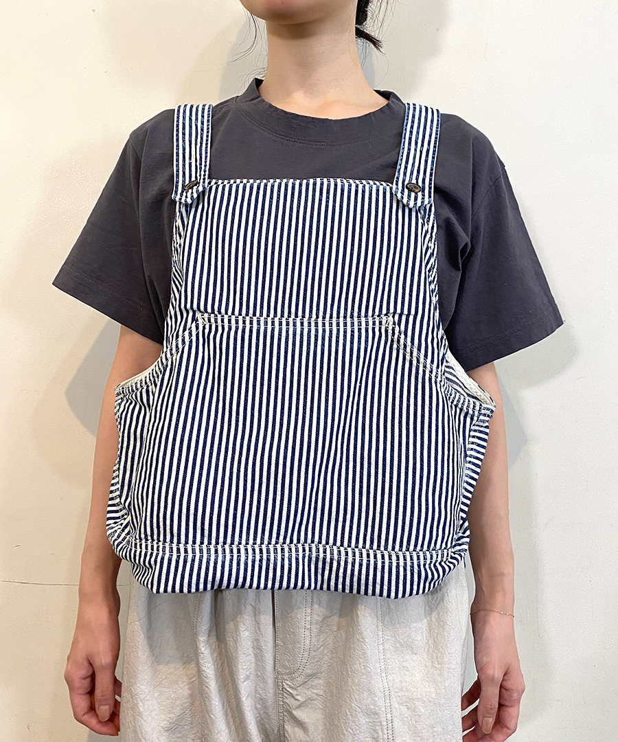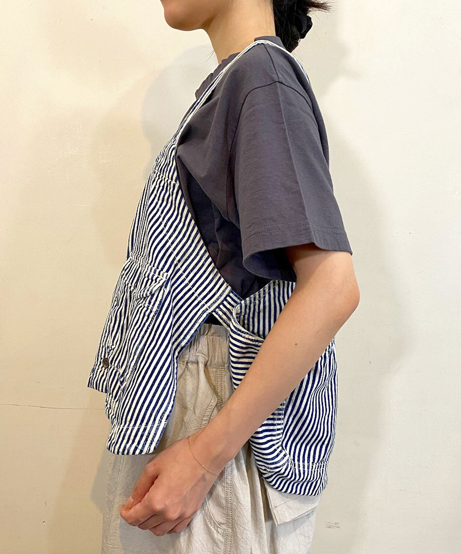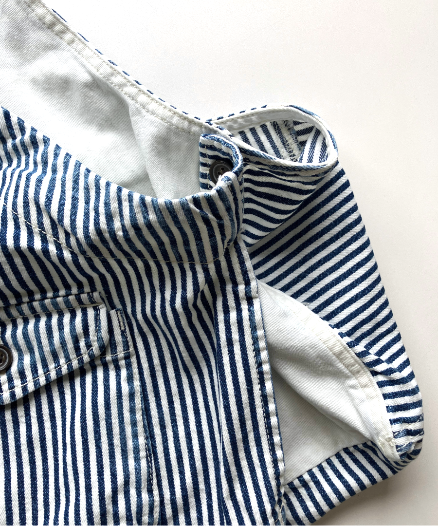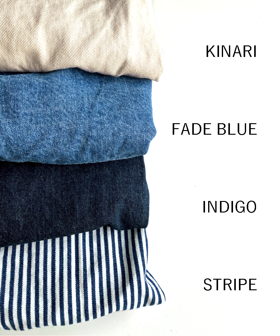 通年使いやすい9ozデニムとヒッコリーストライプ生地を使用し、ほどよい厚みとやわらかさを両立しました。
