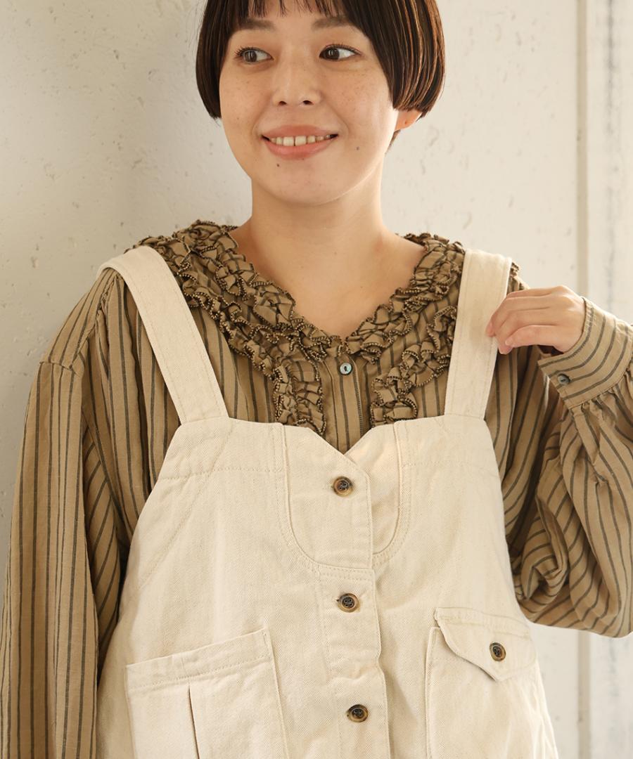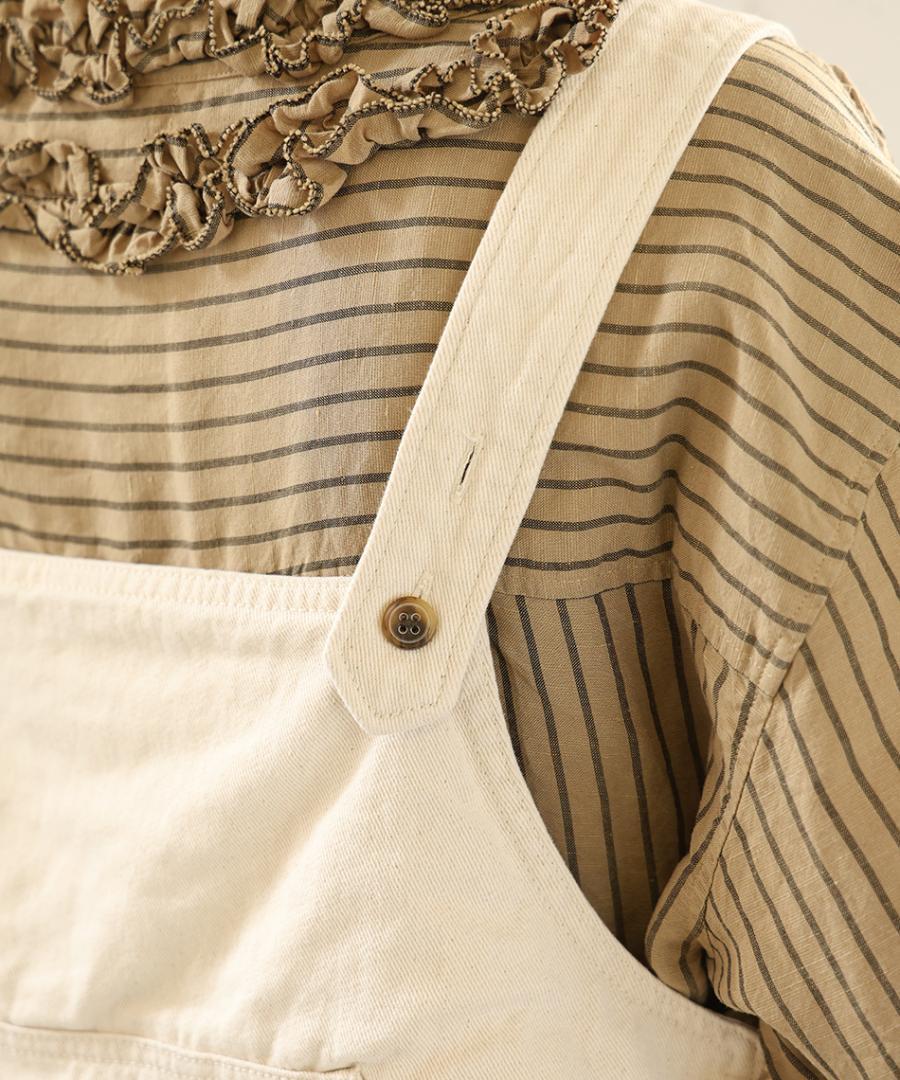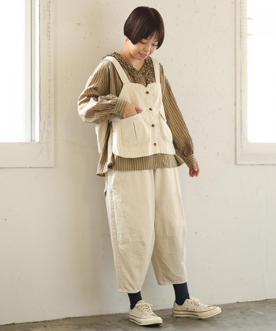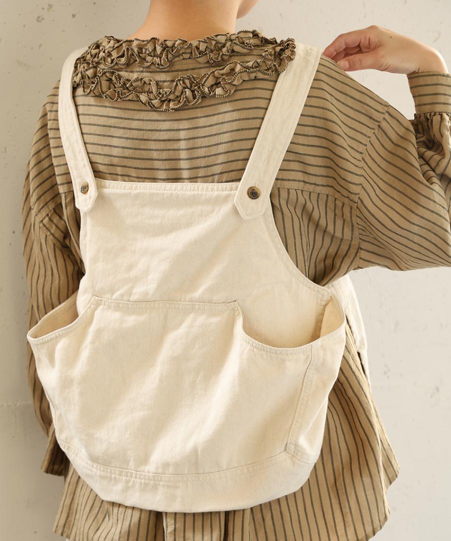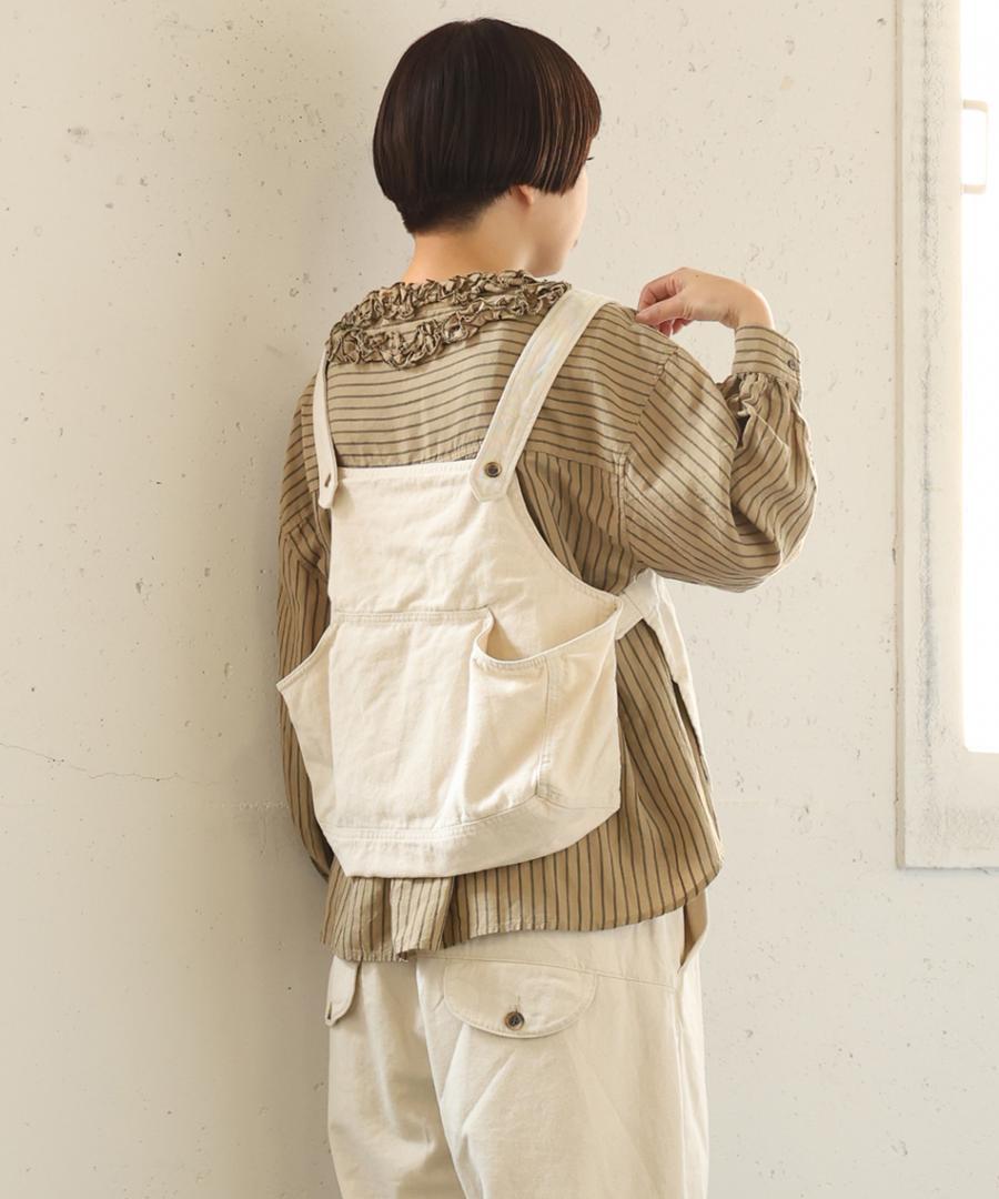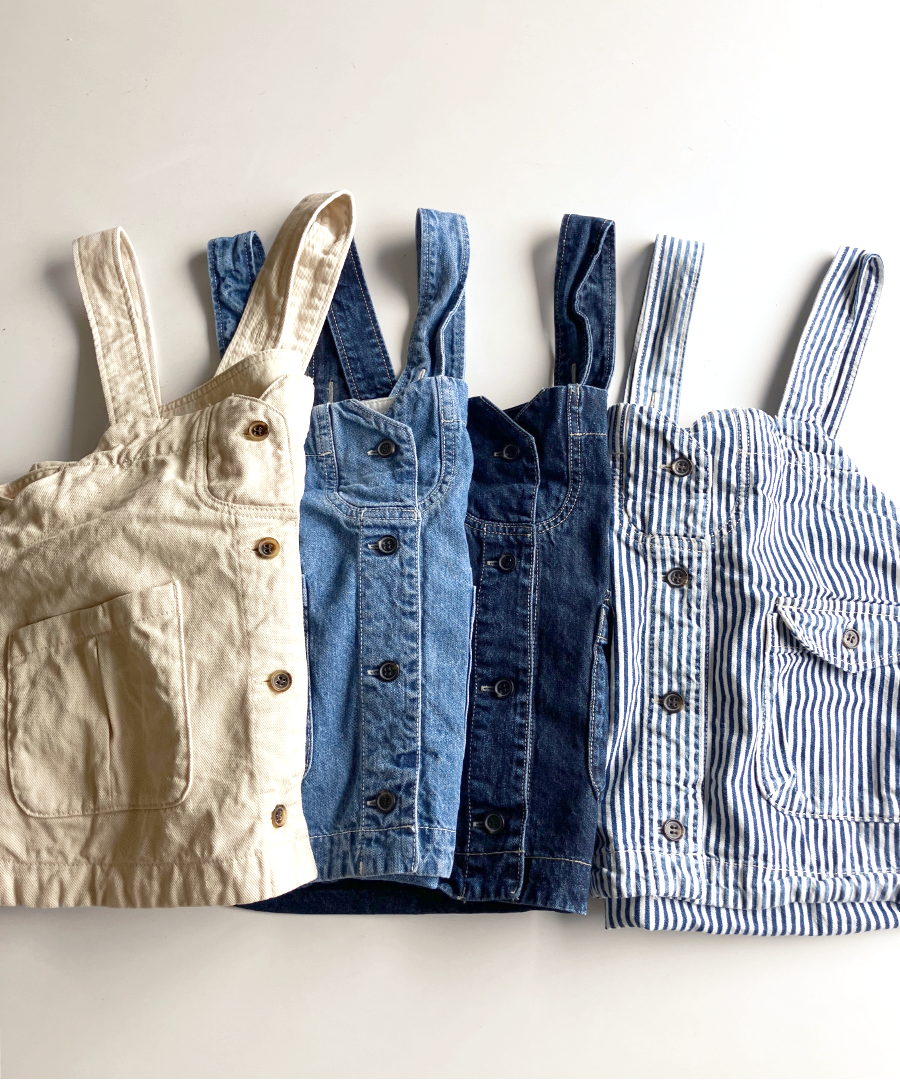 通年使いやすい9ozデニムとヒッコリーストライプ生地を使用し、ほどよい厚みとやわらかさを両立しました。