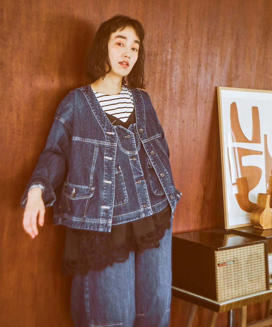 その日の気分でメインの表情を変えられる2wayデザイン。開閉できるボタン仕様や大きなポケットのディテールがポイント。ワンピースに重ねてシルエットにメリハリをつけたり、カットソーと合わせてカジュアルダウンしたりと自由自在です。