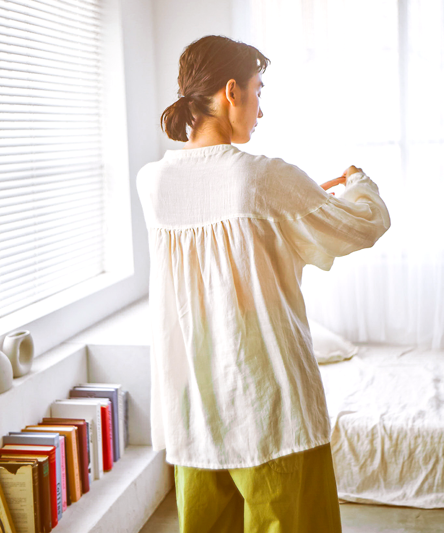 涼やかさと自由な着こなしを叶える多機能ブラウス