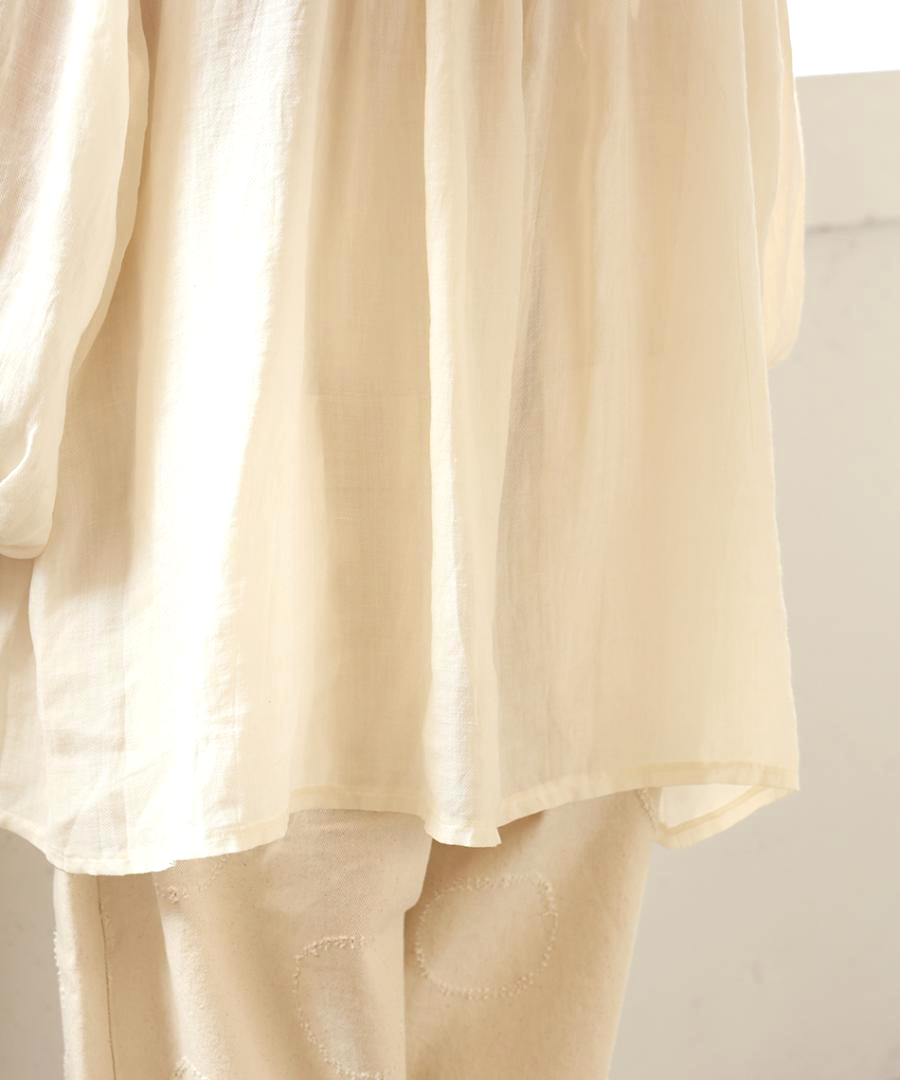 とても軽やかな素材感なので、タンクトップの上にさらりと羽織ったり、ワンピースに重ねたりと、レイヤードスタイルも重たくなりません。その日の気分に合わせたスタイリングが可能で、いつもの日常をそっと彩ってくれるアイテムです。