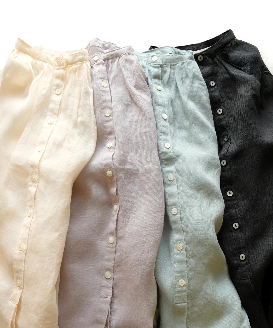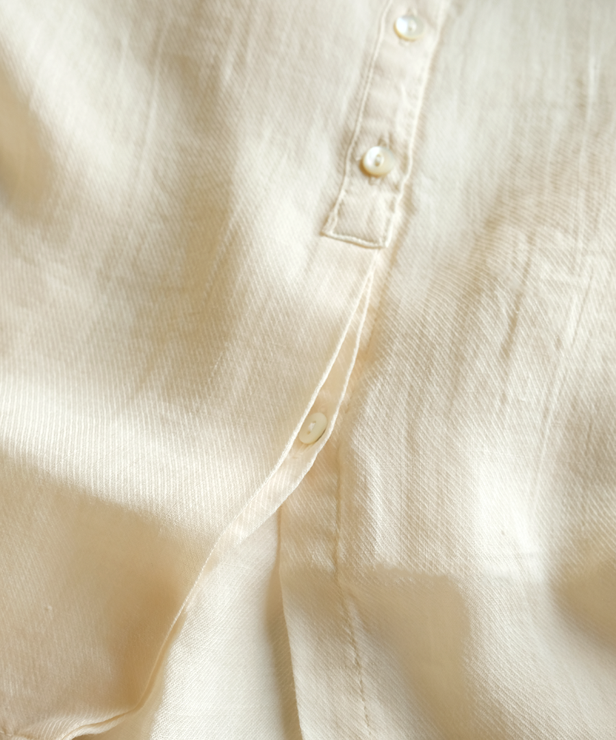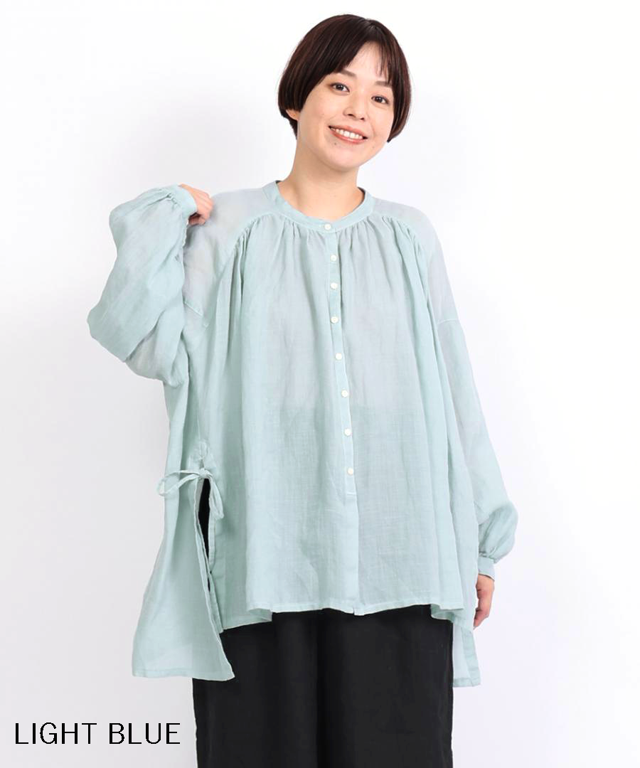 ラミー(麻)のシャリっとした清涼感に、テンセルの柔らかなとろみをプラスした贅沢な1枚。製品染めを施すことで、肌に馴染むナチュラルな風合いと軽やかな着心地に仕上げました。