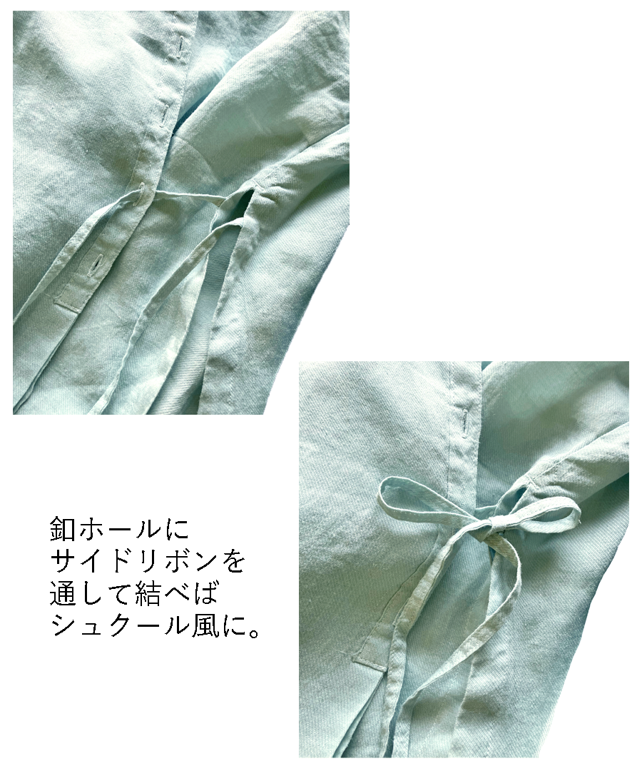両サイドのリボンはそのまま結んでも、フロントで結んでも、カシュクールのように重ねて結ぶアレンジも楽しめます。