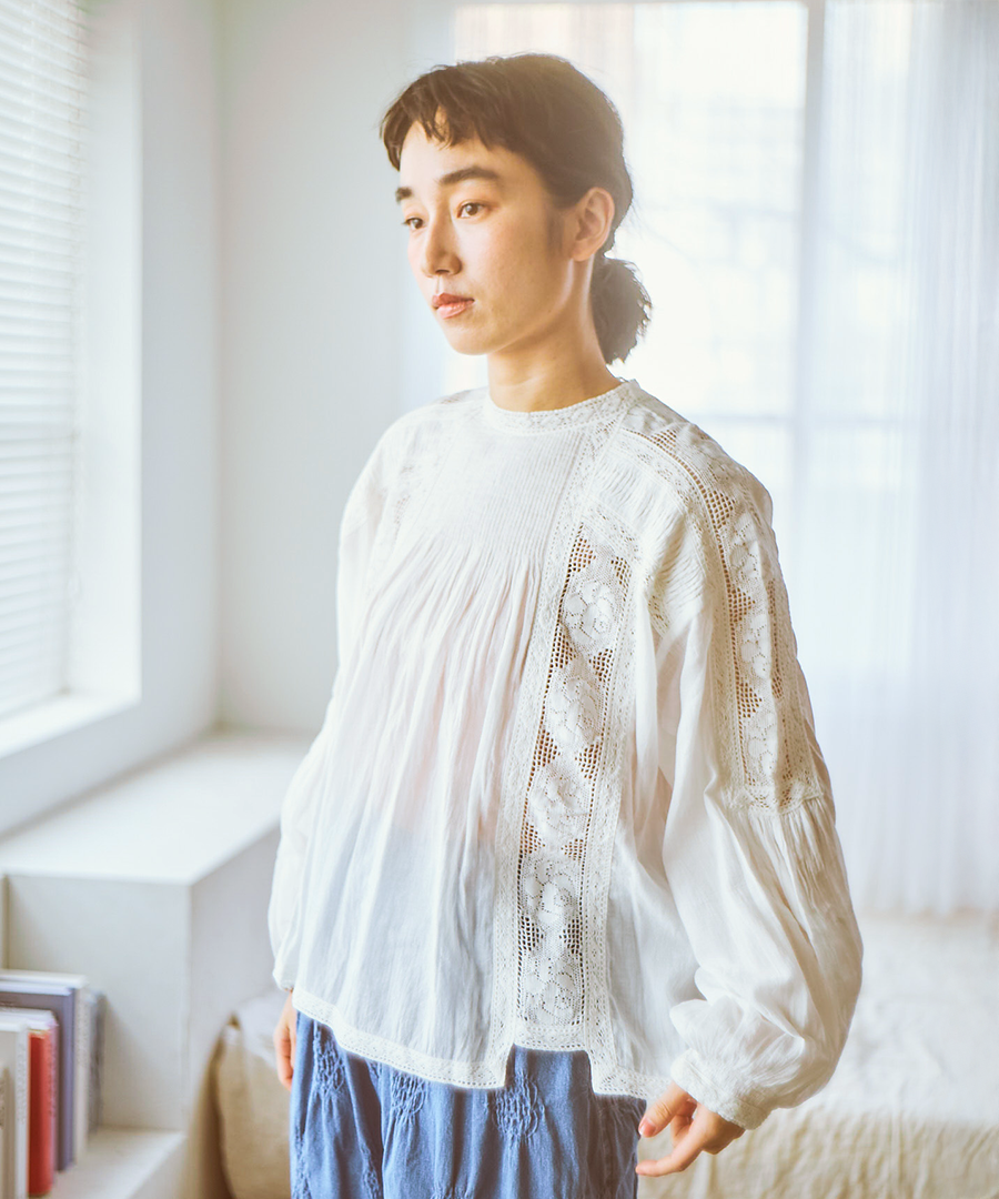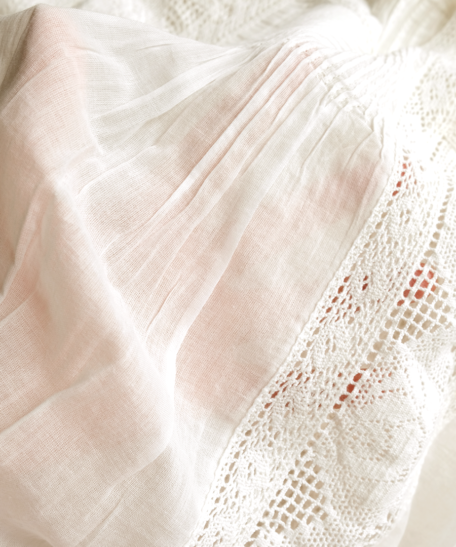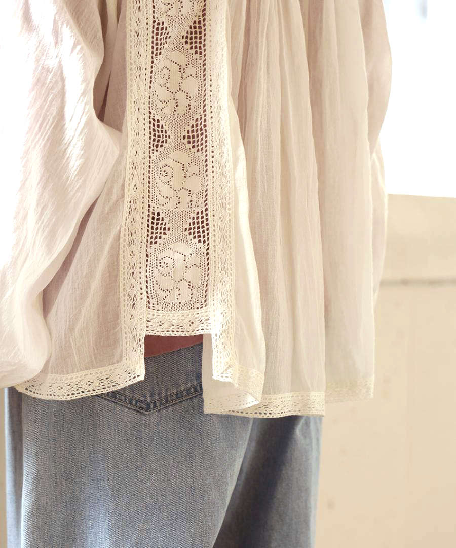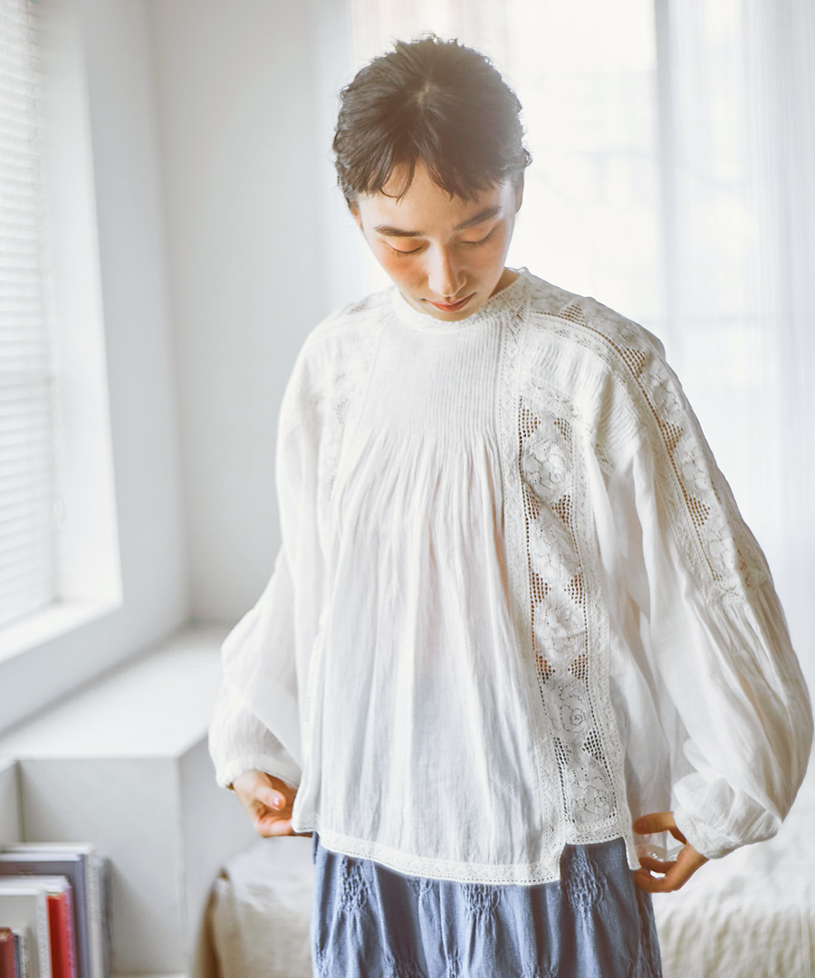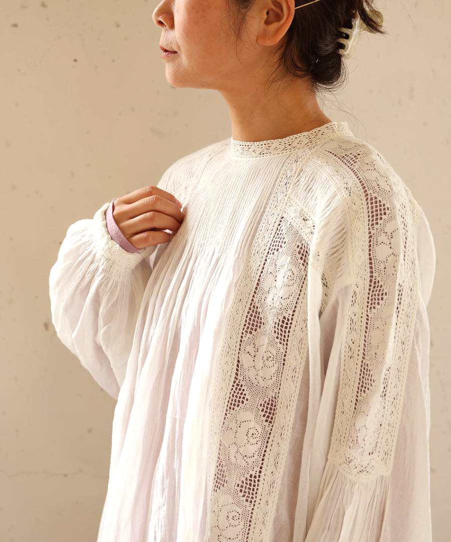 繊細なレースに魅せられる、手織りカディの贅沢な一枚。