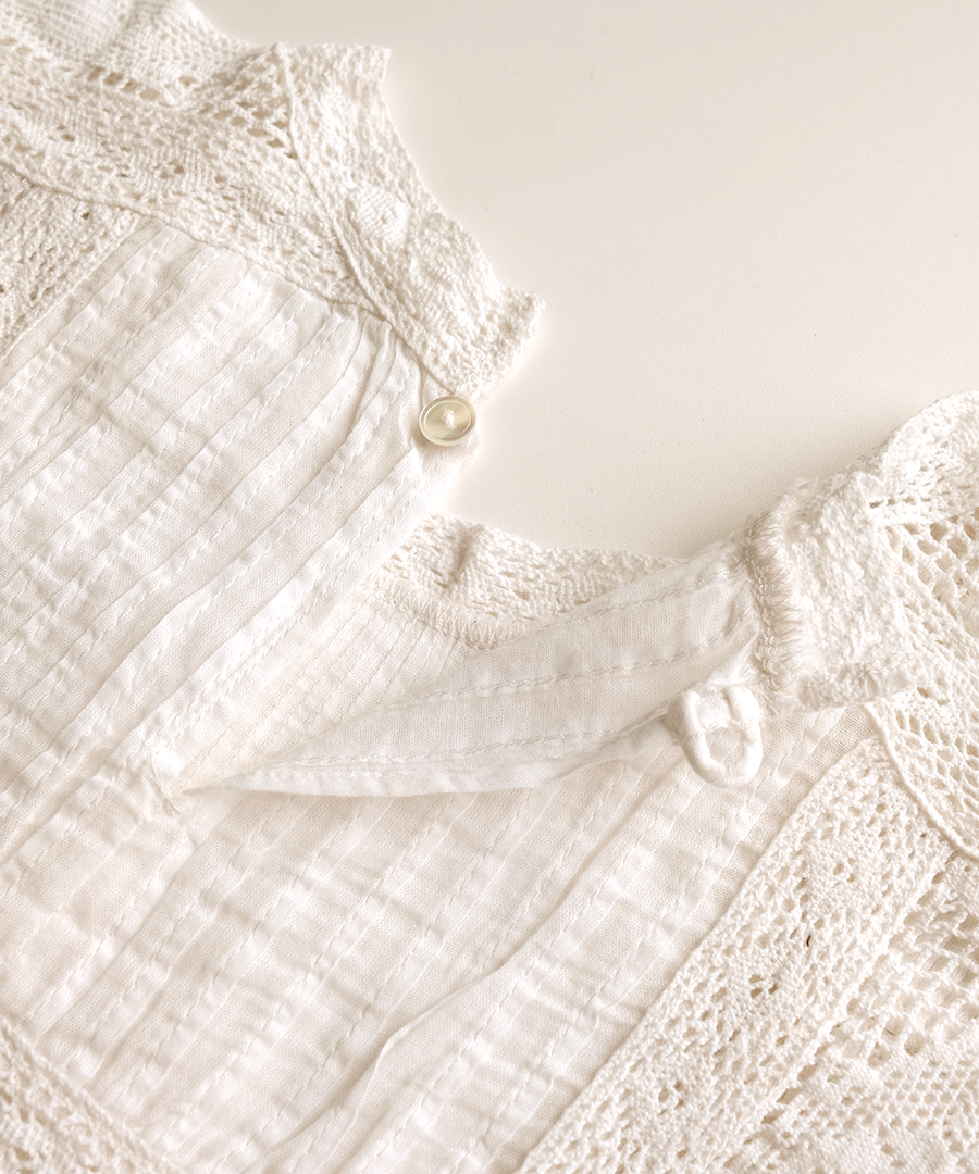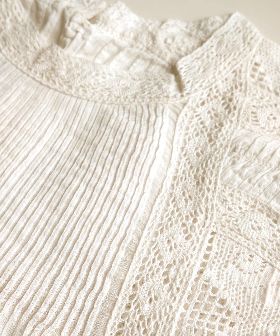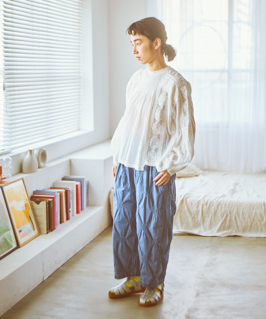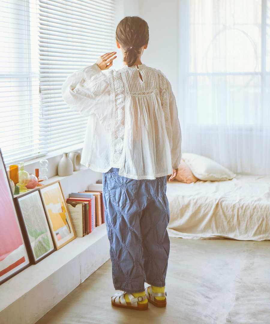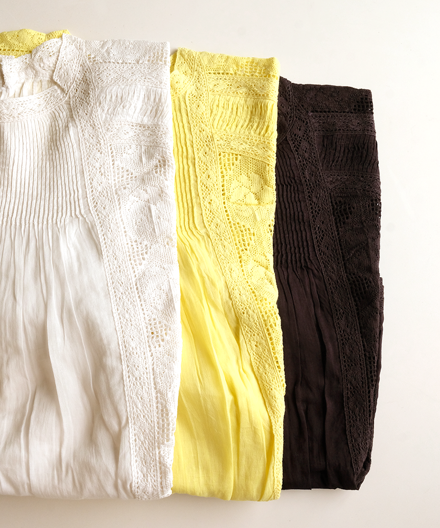 繊細なレースに魅せられる、手織りカディの贅沢な一枚。