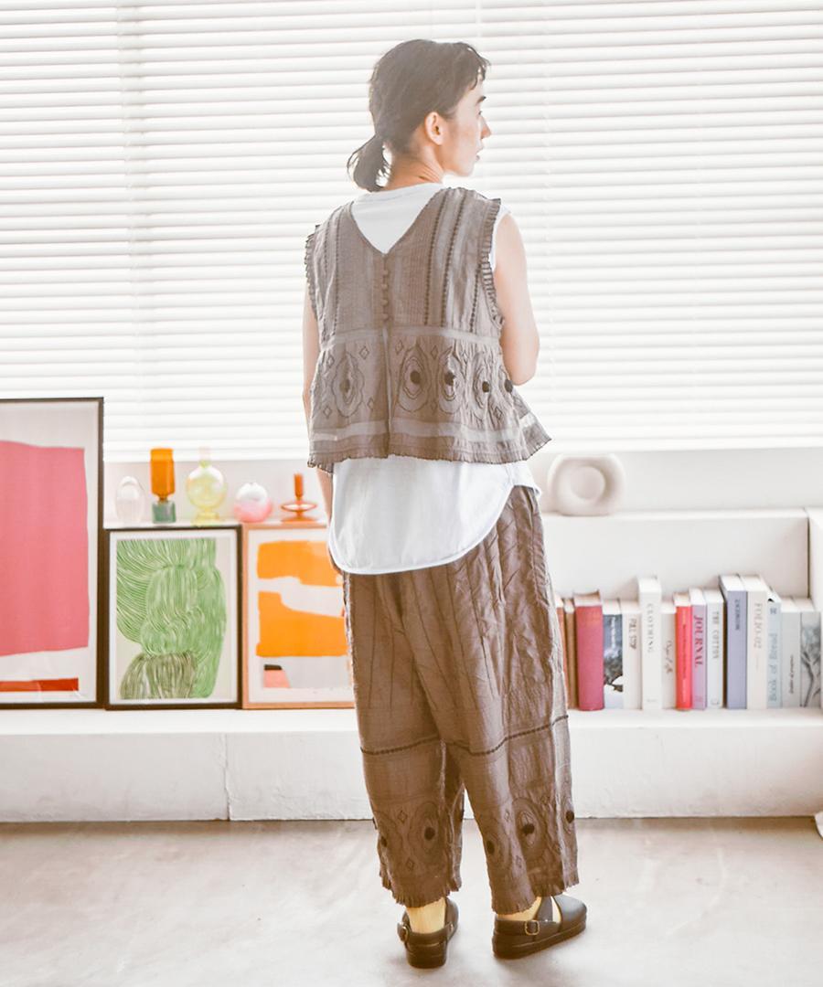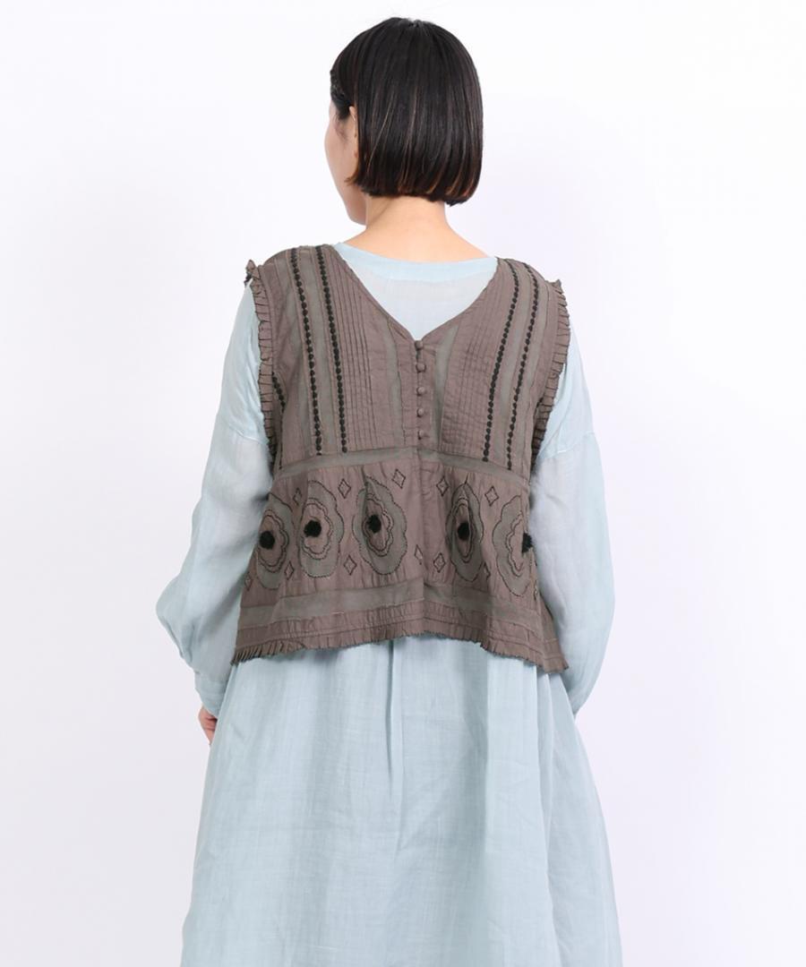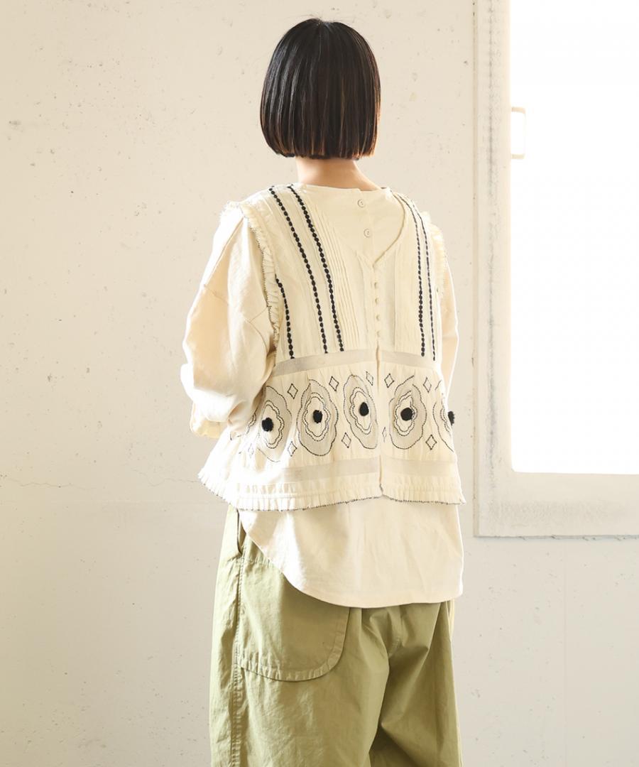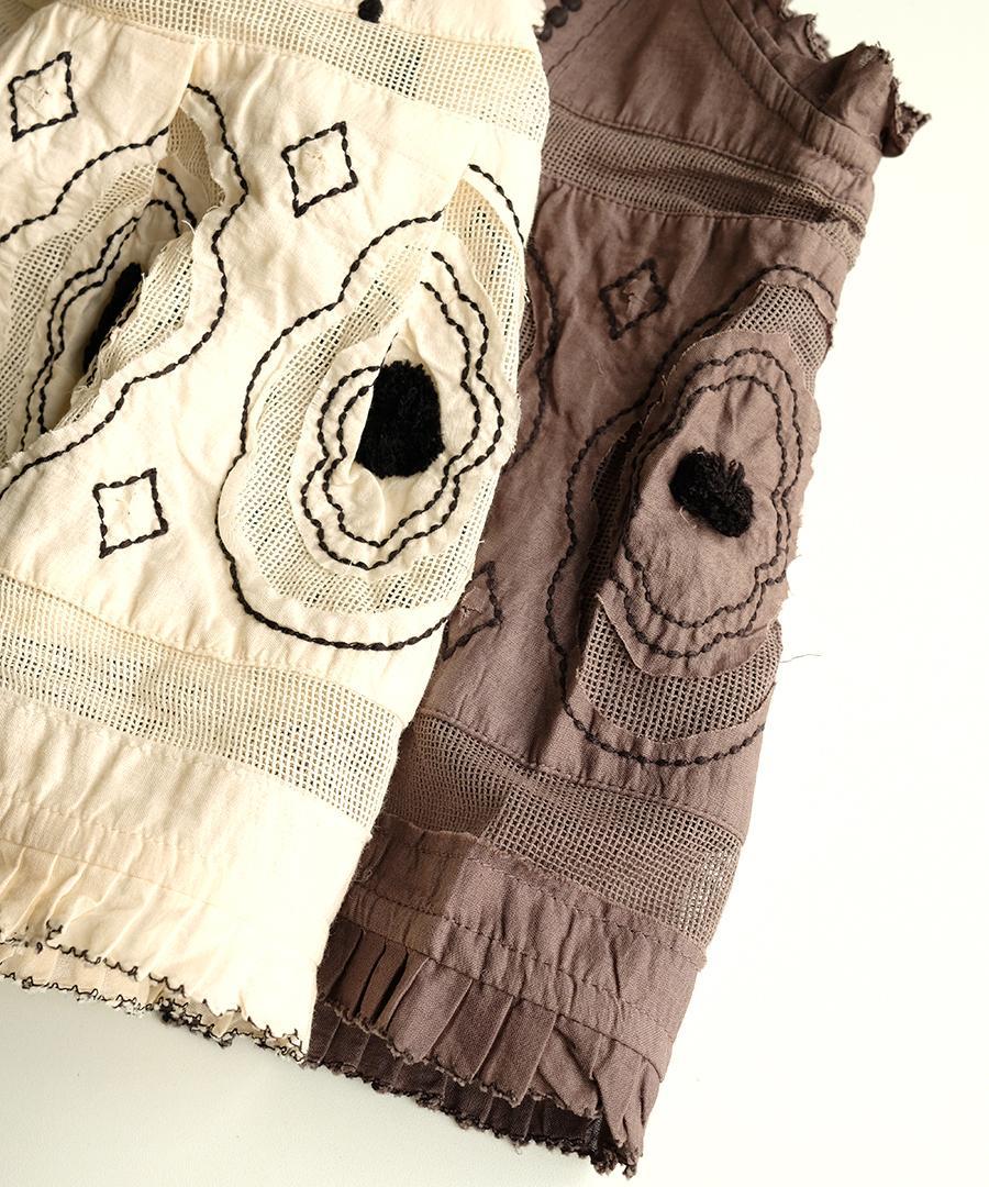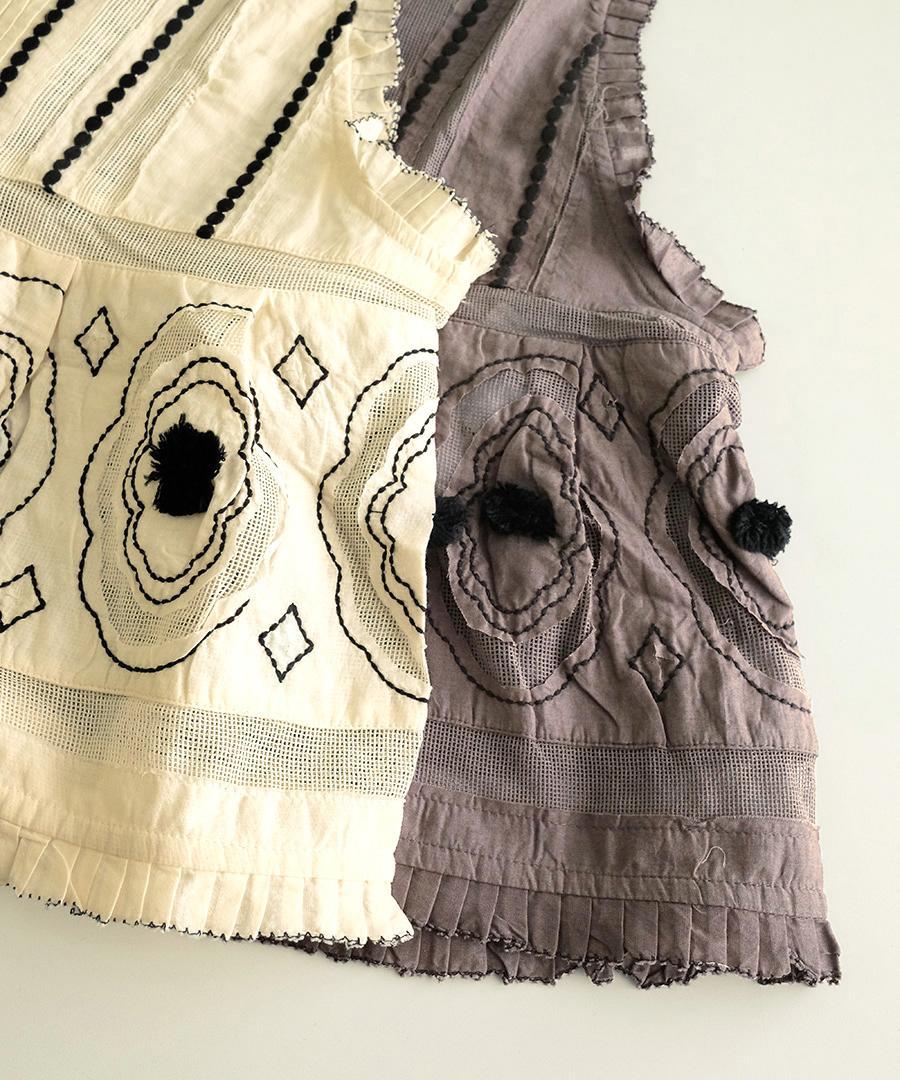 コーディネートの主役に。キャンブリック×コットンメッシュ 2way刺繍ベスト