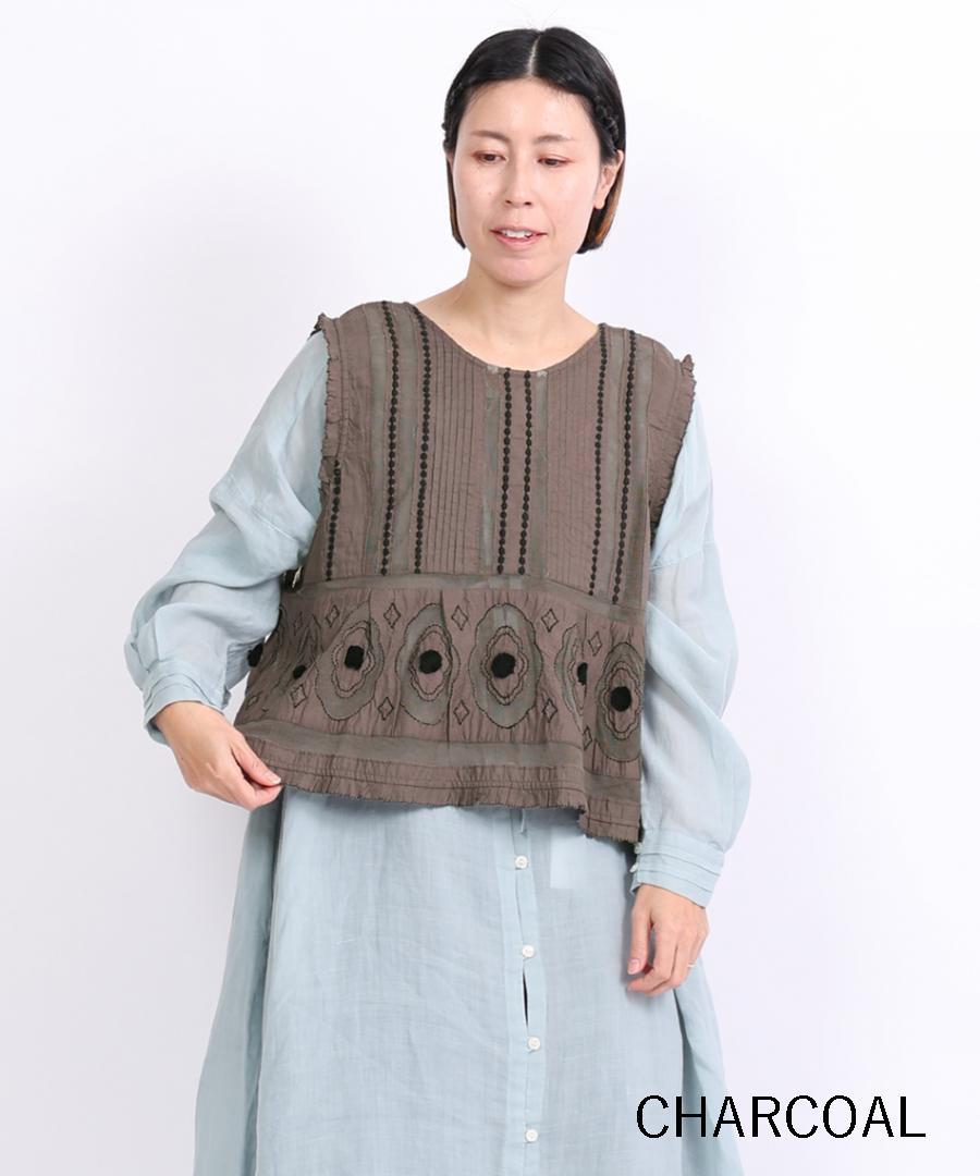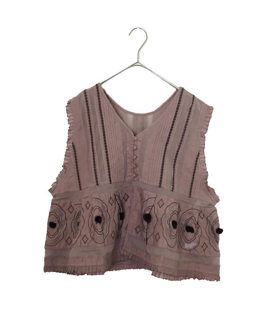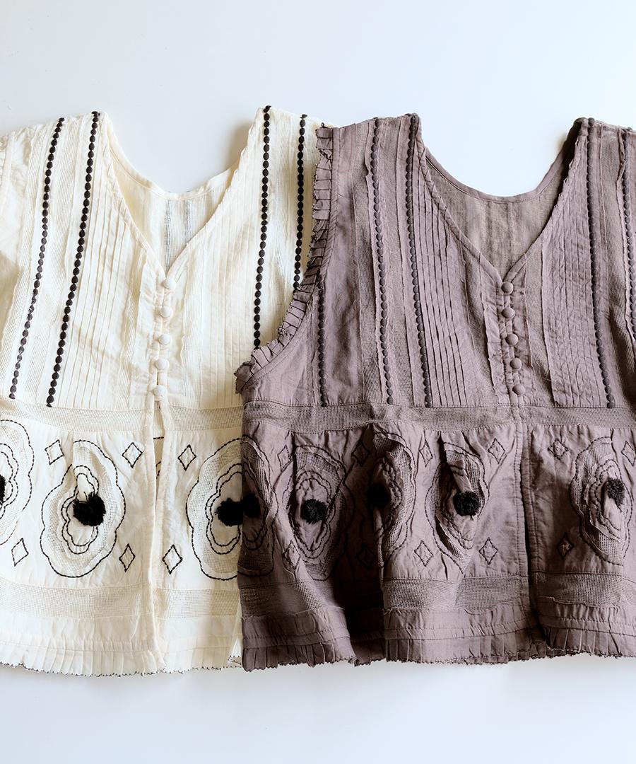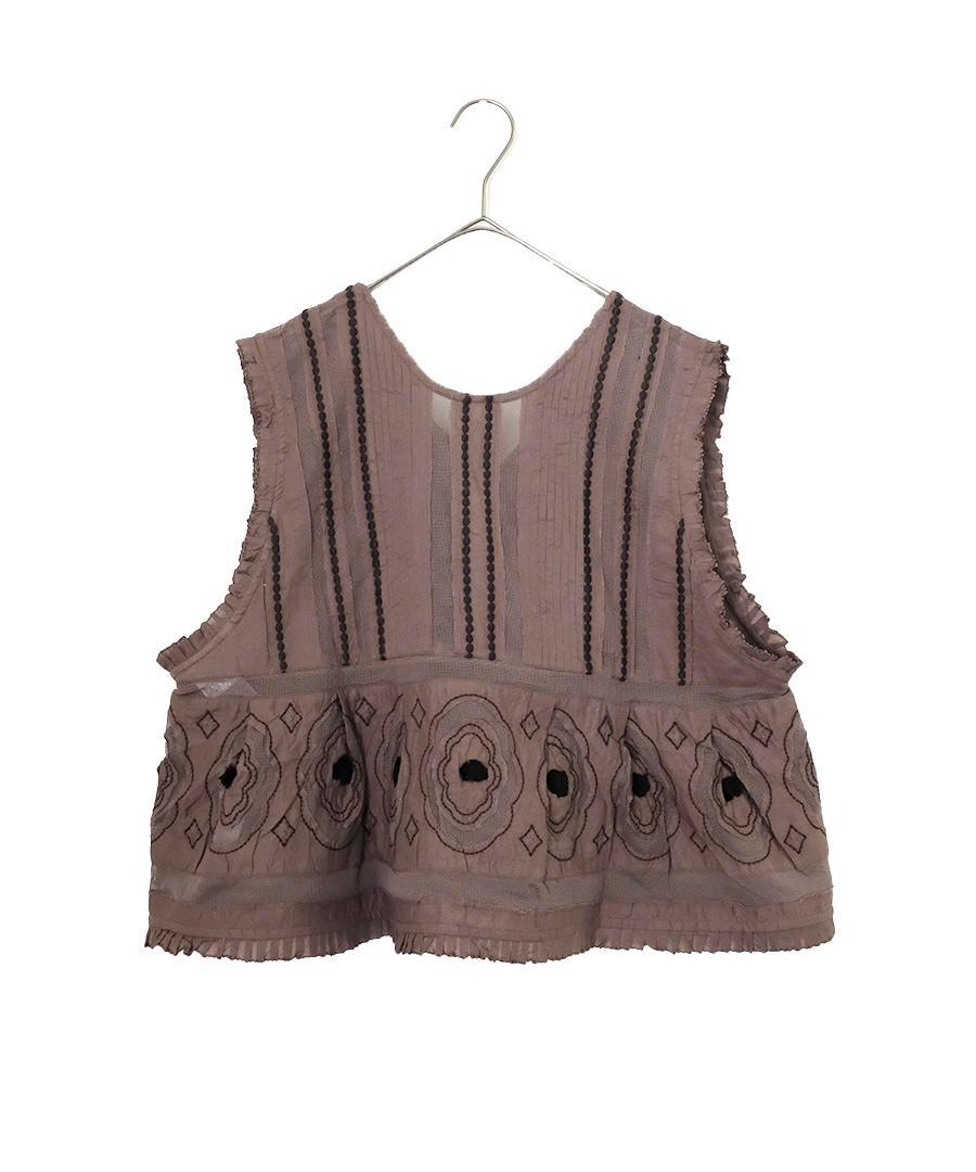 コーディネートの主役に。キャンブリック×コットンメッシュ 2way刺繍ベスト