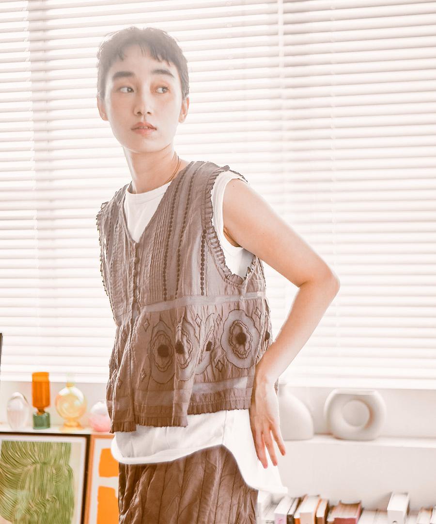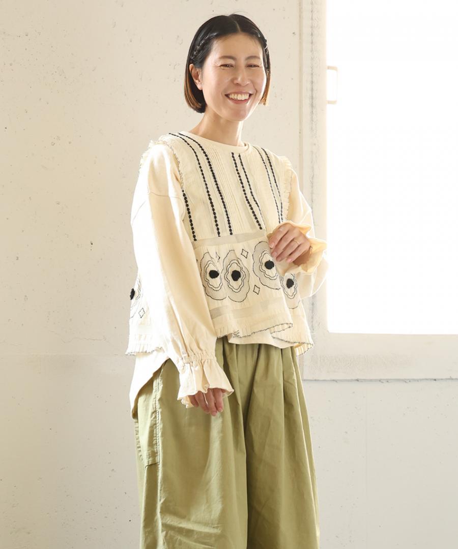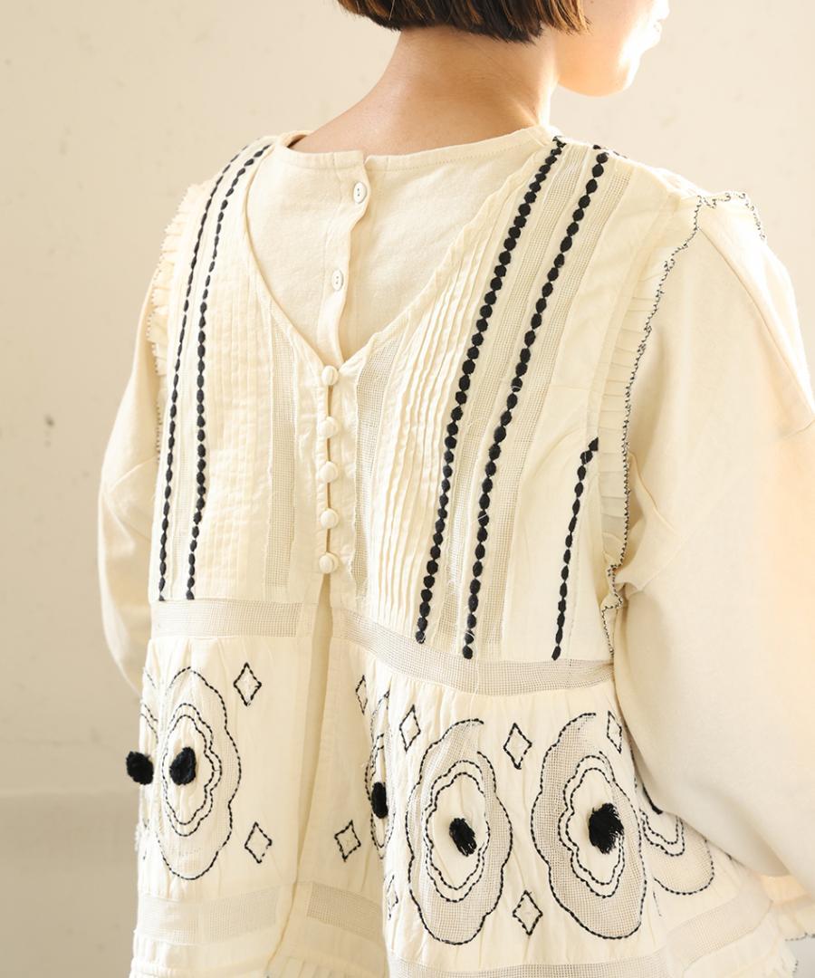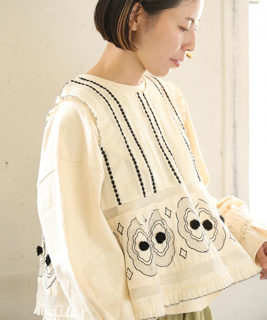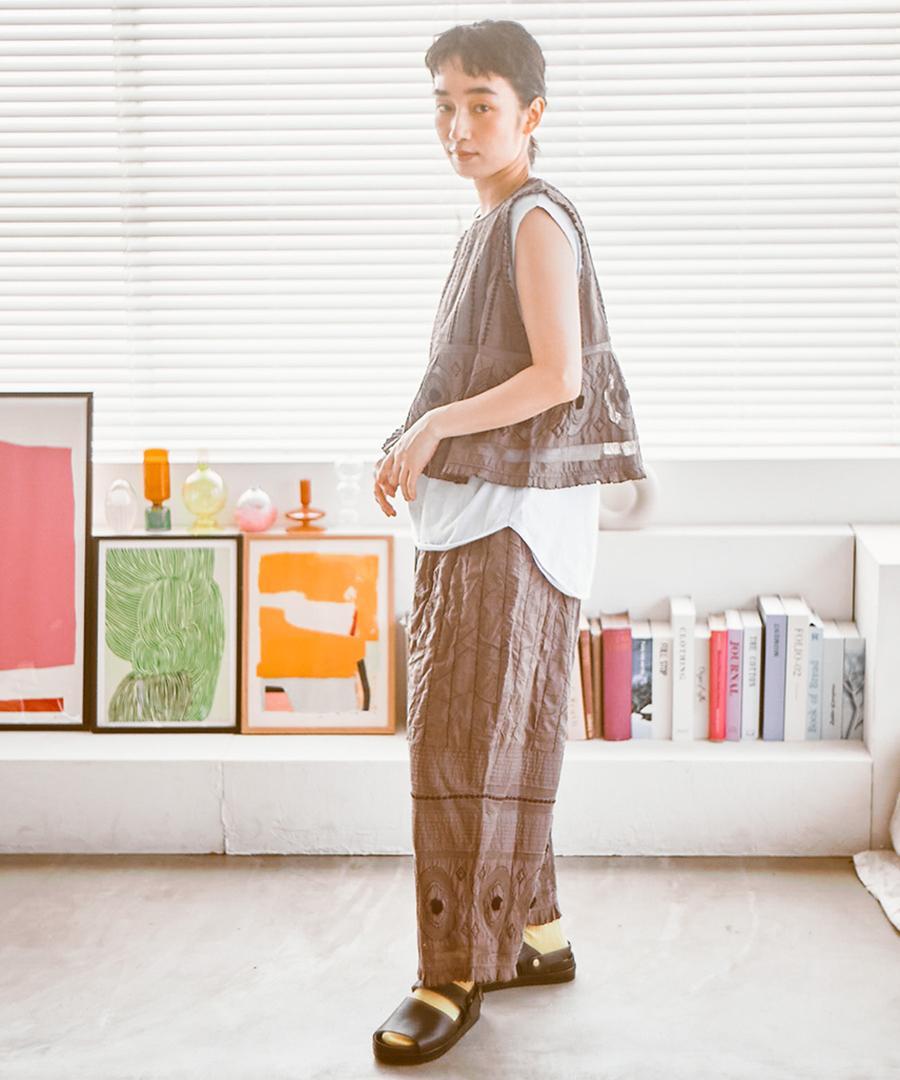 コーディネートの主役に。キャンブリック×コットンメッシュ 2way刺繍ベスト