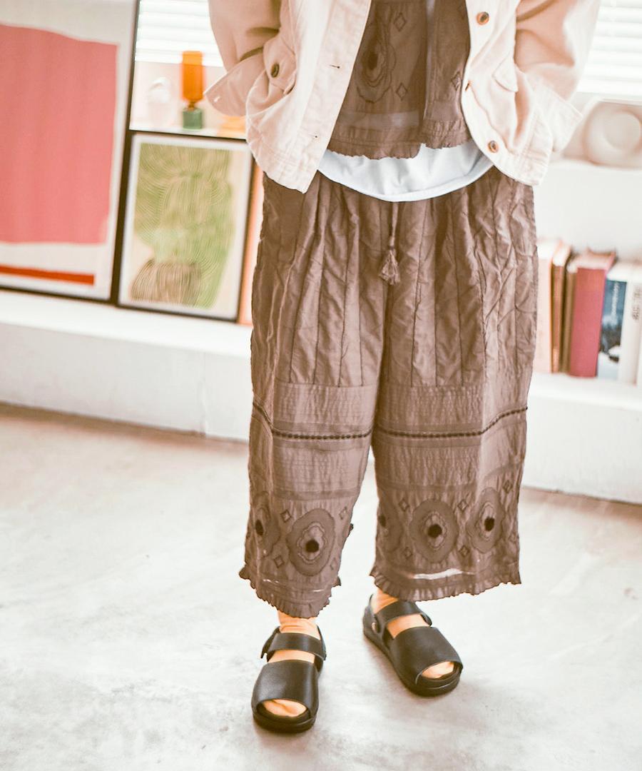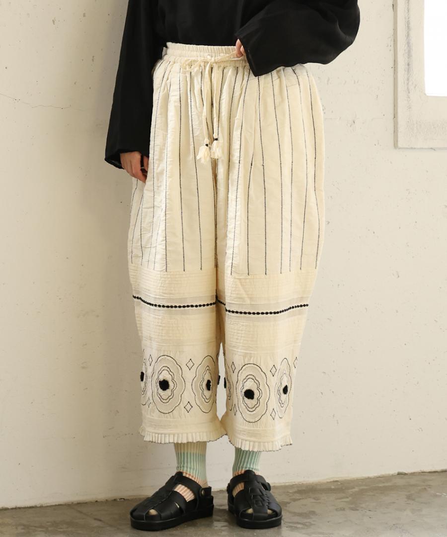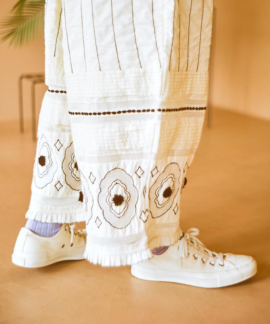 表情豊かな刺繍に魅せられる、大人のリラックスパンツ。