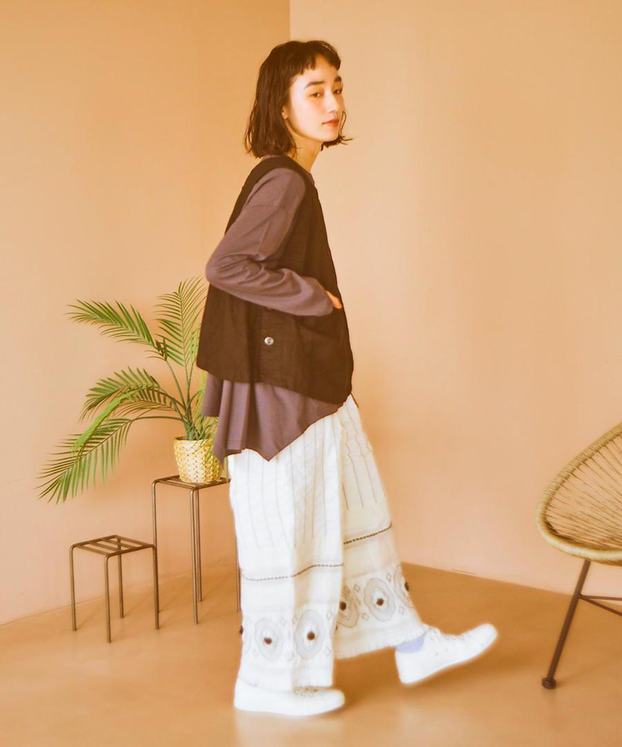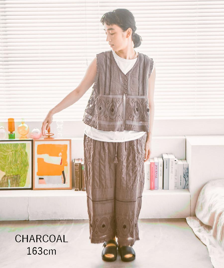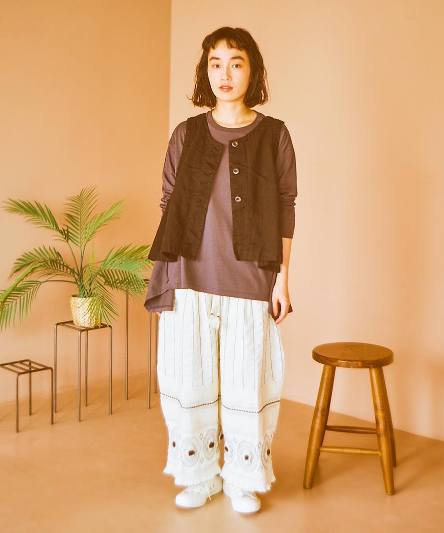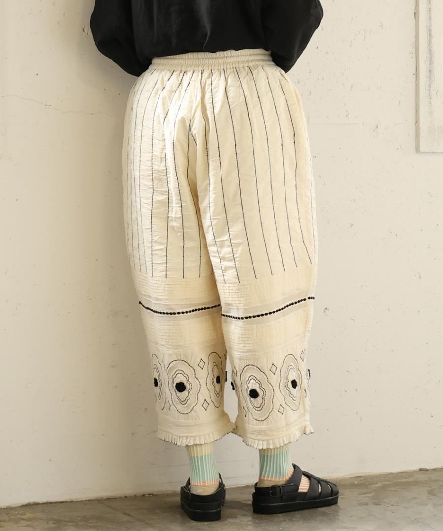 表情豊かな刺繍に魅せられる、大人のリラックスパンツ。