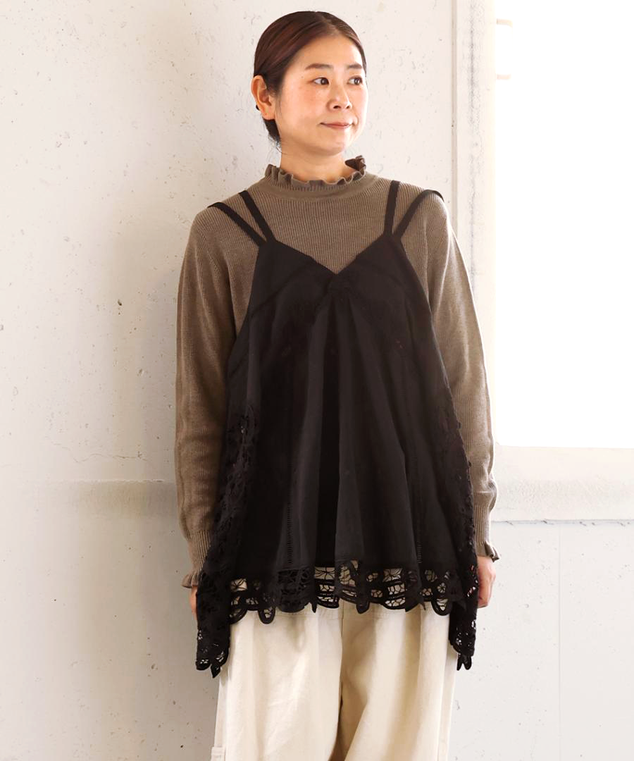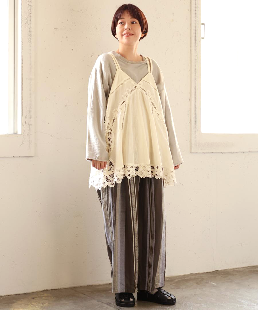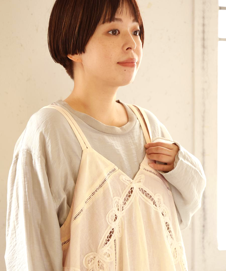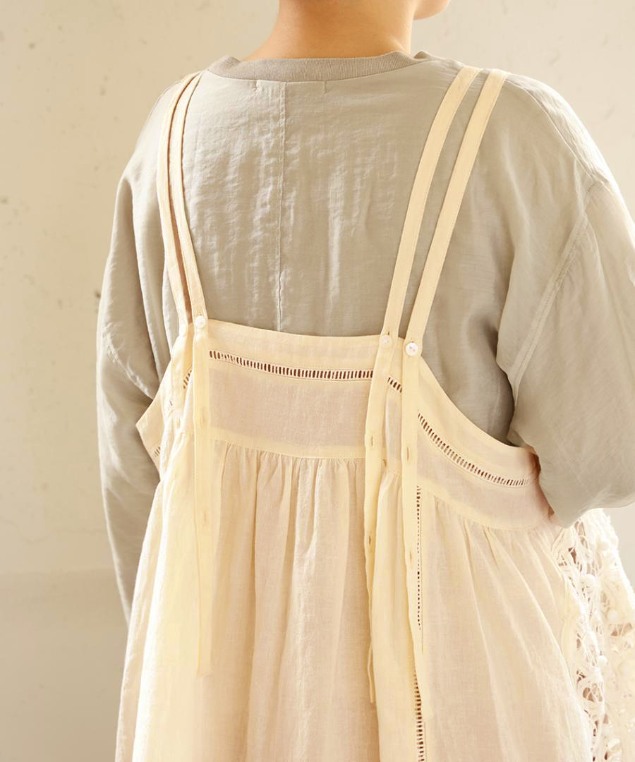 コットンリネンキャンバス×バテンレース 2wayキャミソール