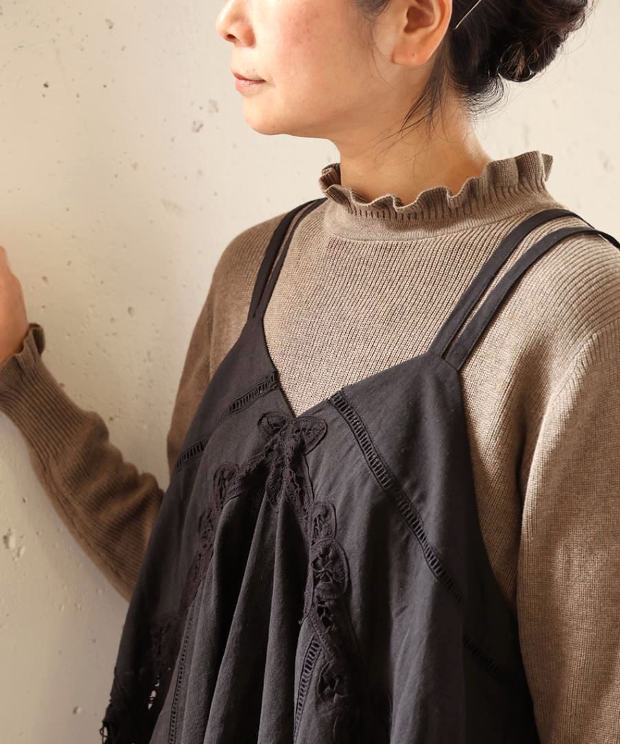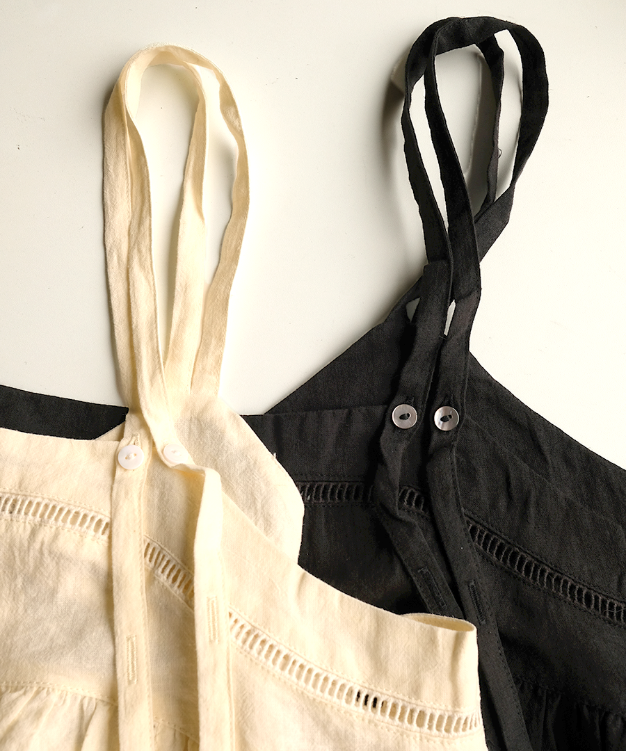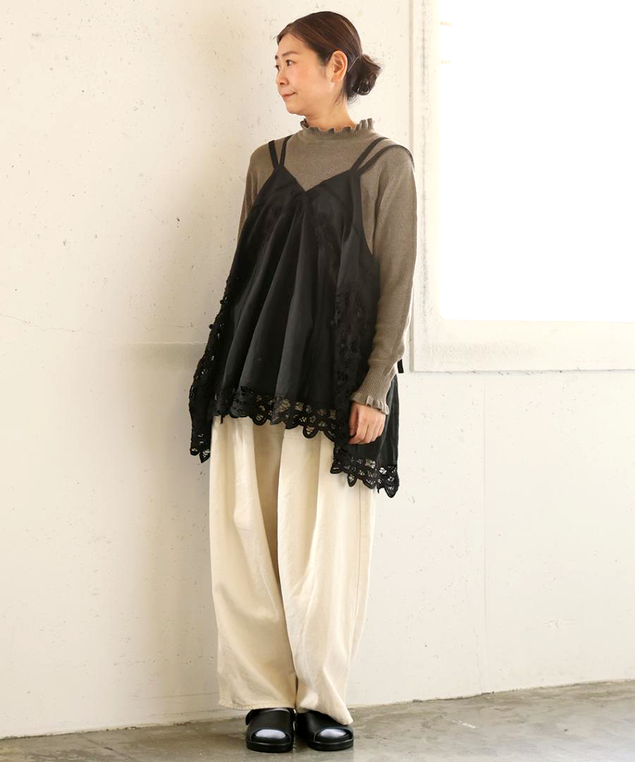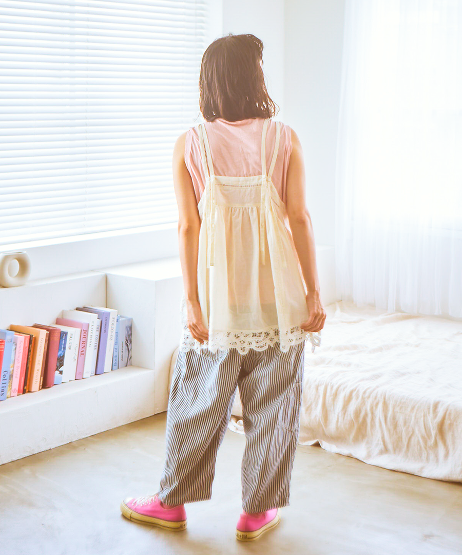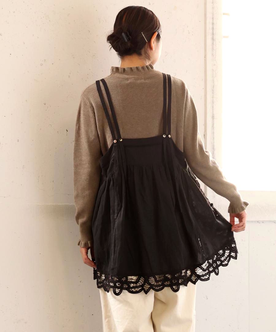 コットンリネンキャンバス×バテンレース 2wayキャミソール