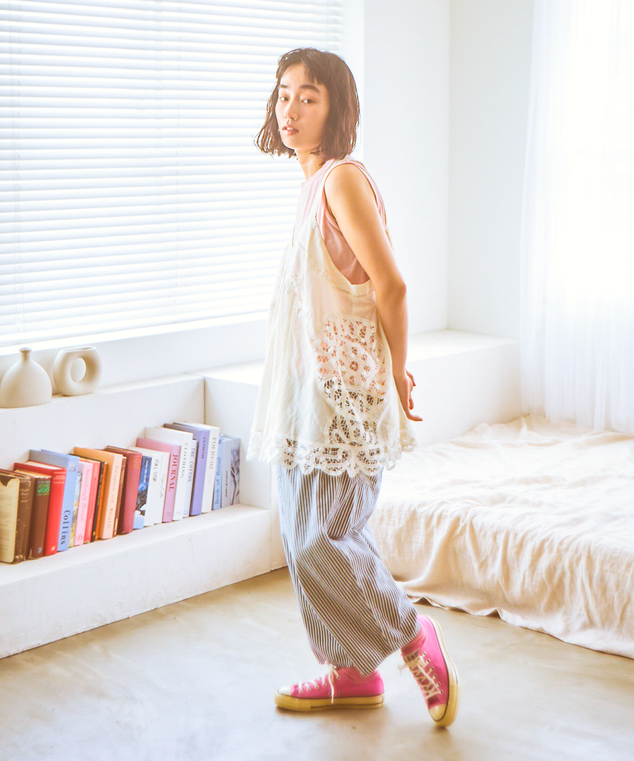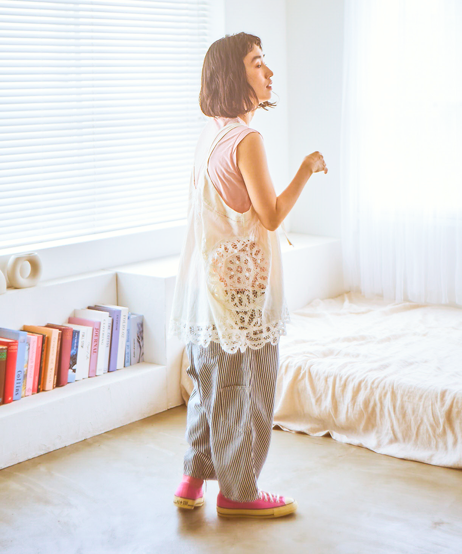 いつものTシャツやタンクトップに重ねるだけで、装いがぐっとこなれるレイヤードスタイルに。レースの透け感を活かし、カラーインナーを覗かせることでコーディネートの幅も広がります。